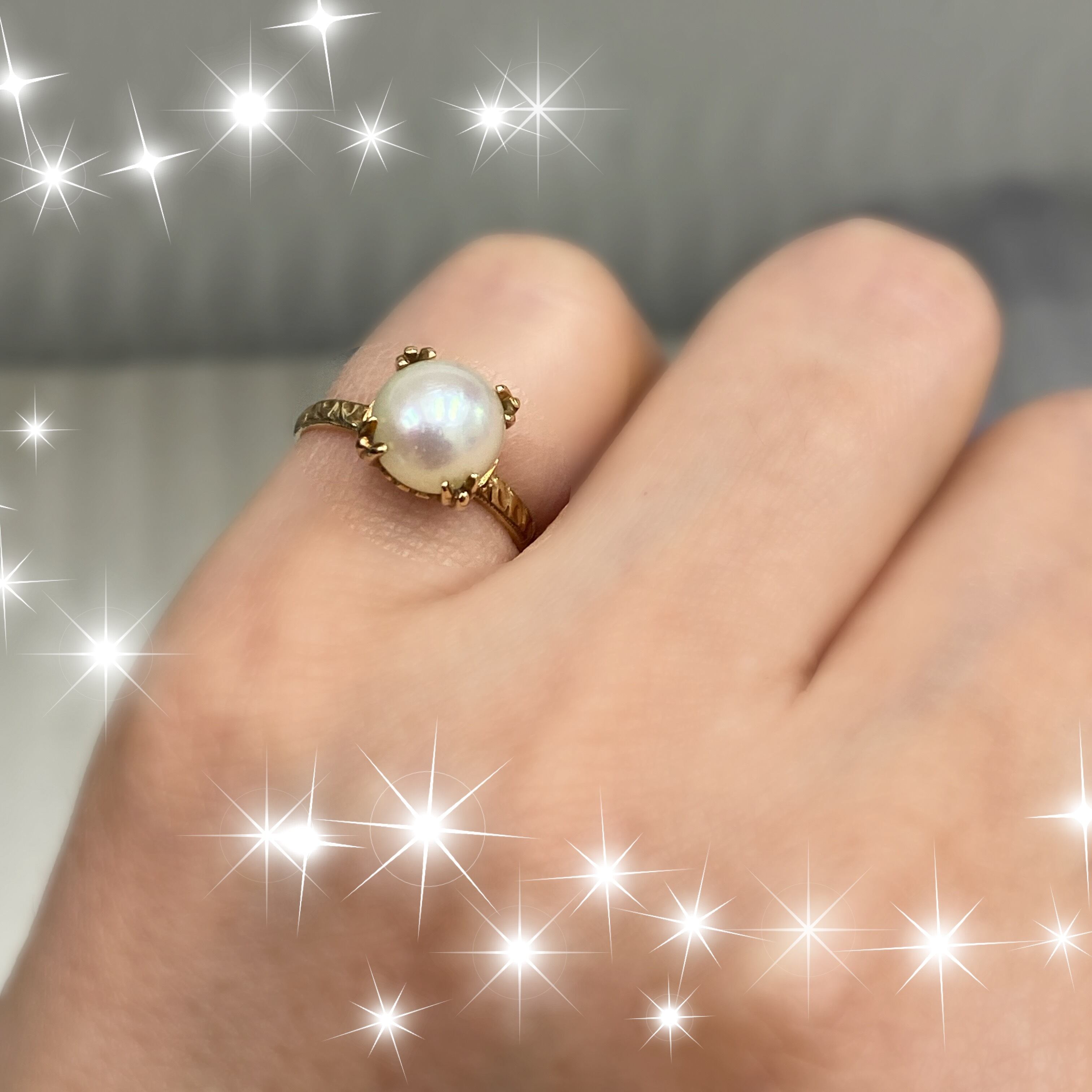 大粒のパールを抱く18金の昭和レトロリングをご紹介します♪