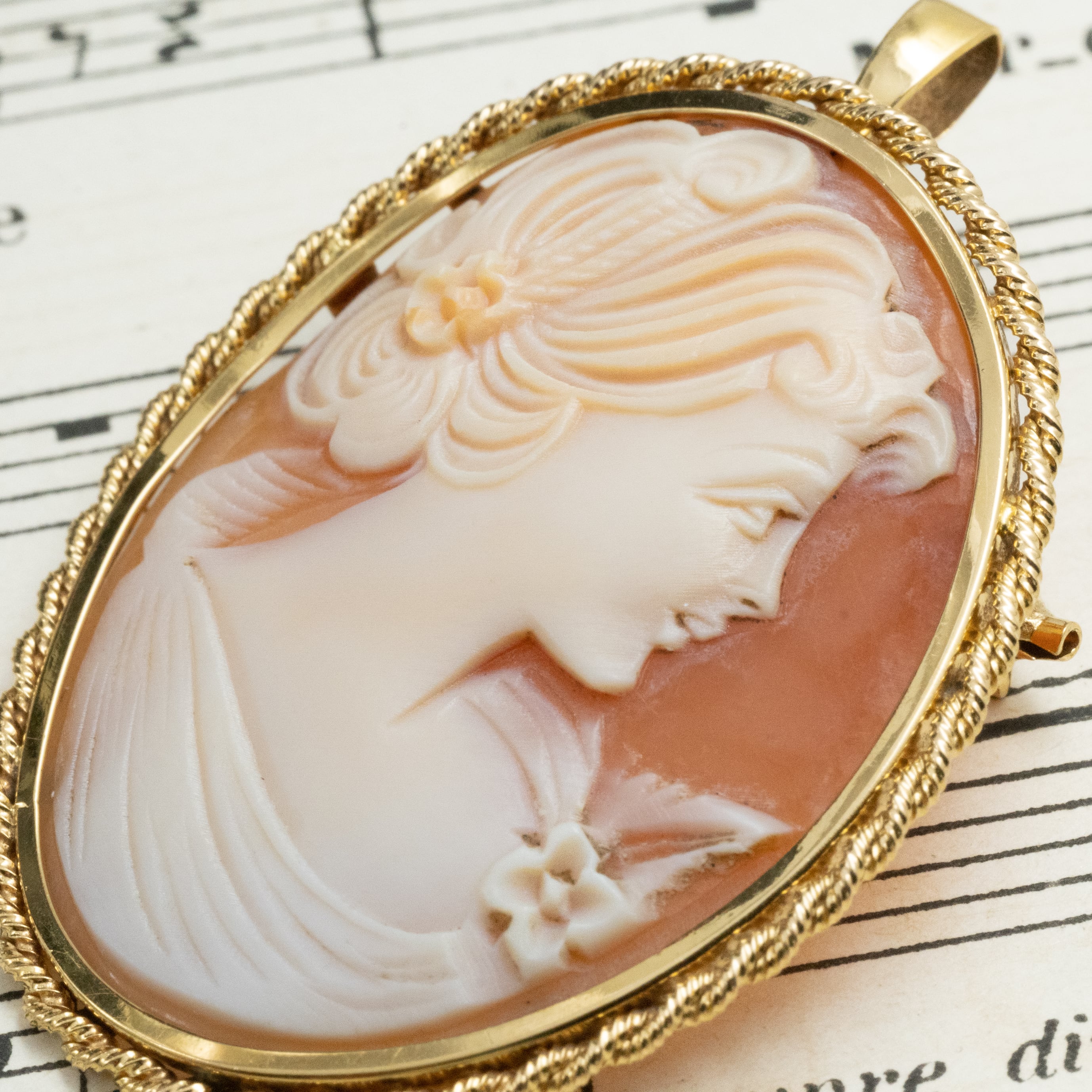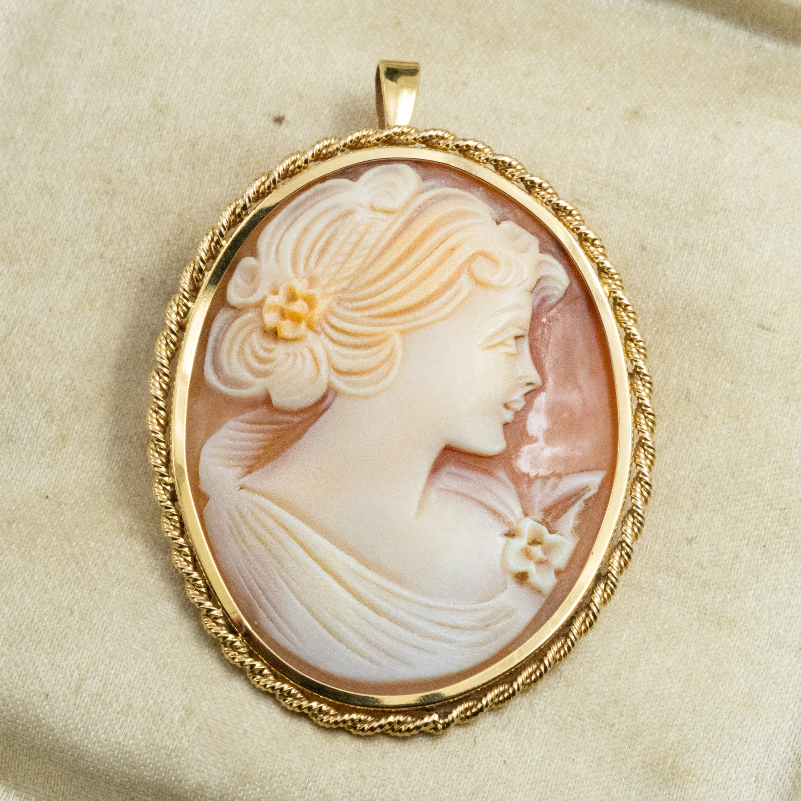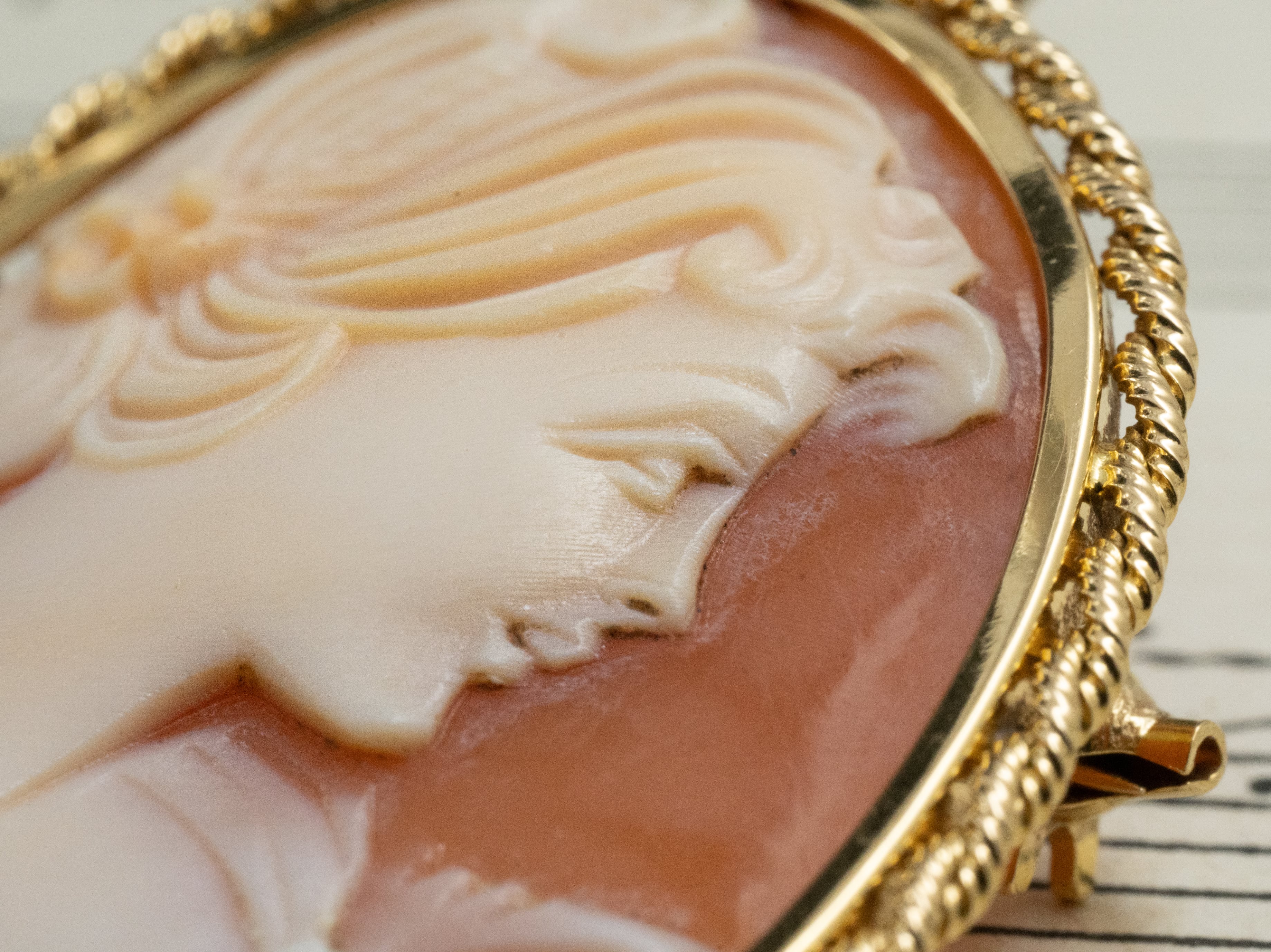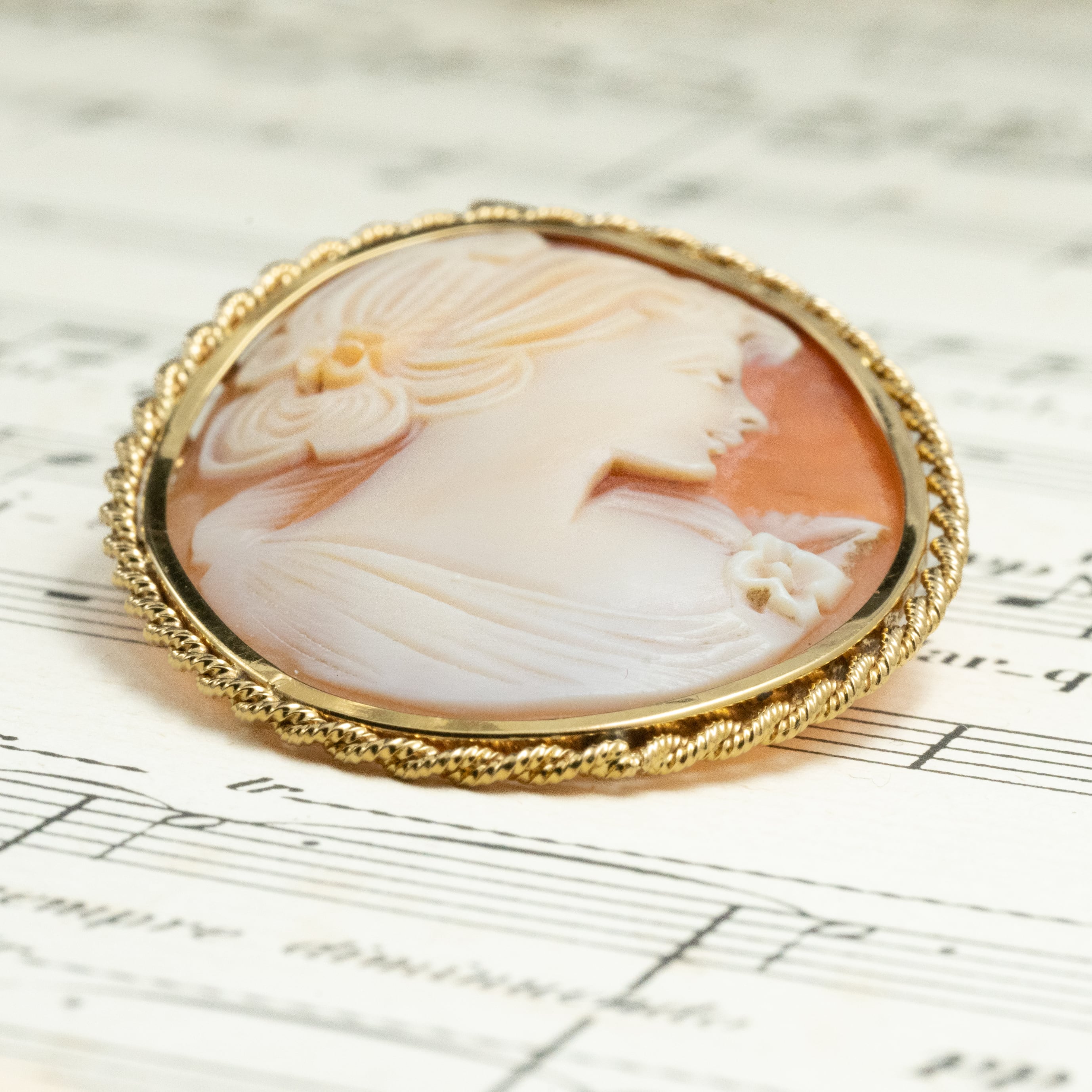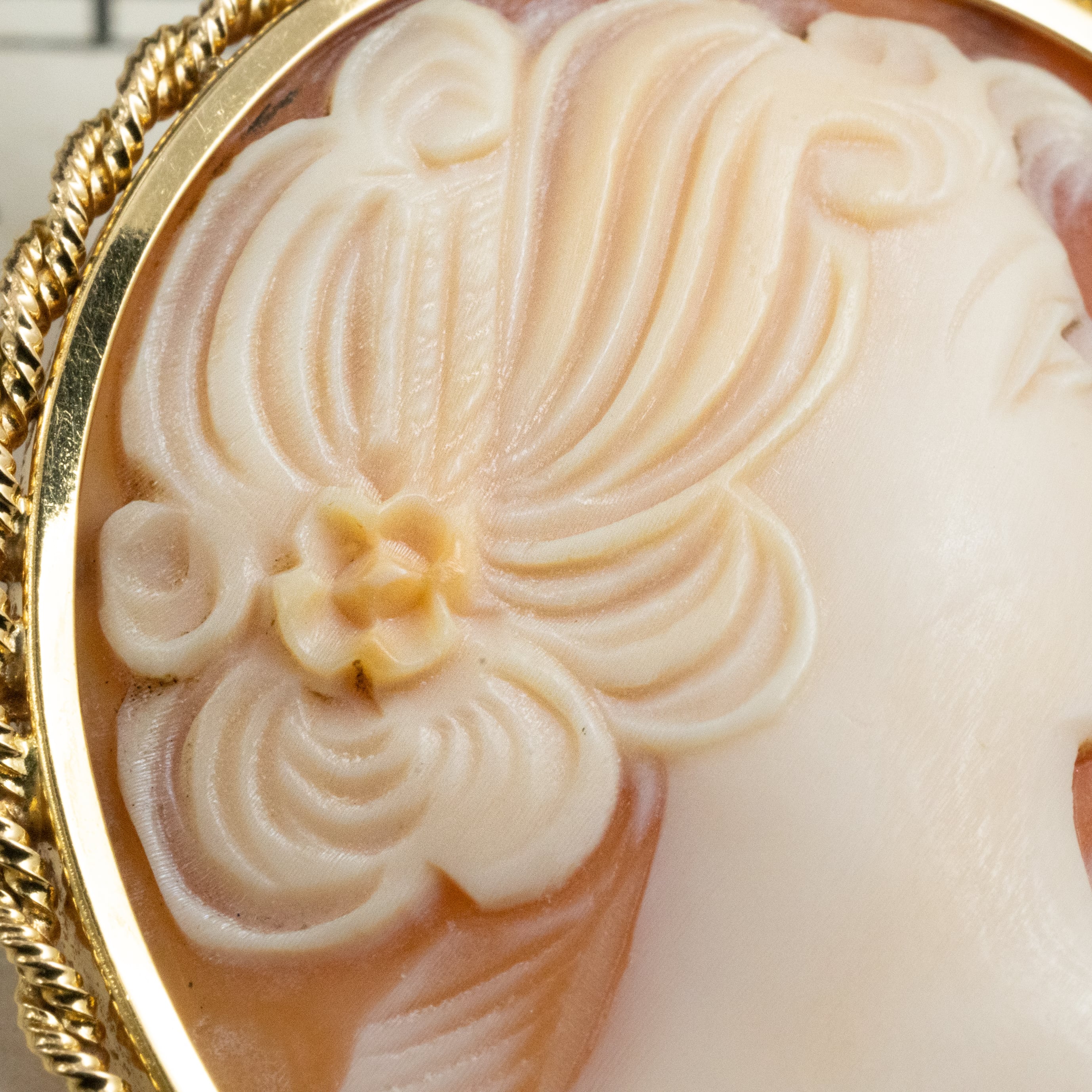 優しい横顔が印象的な、気品あふれるカメオ。