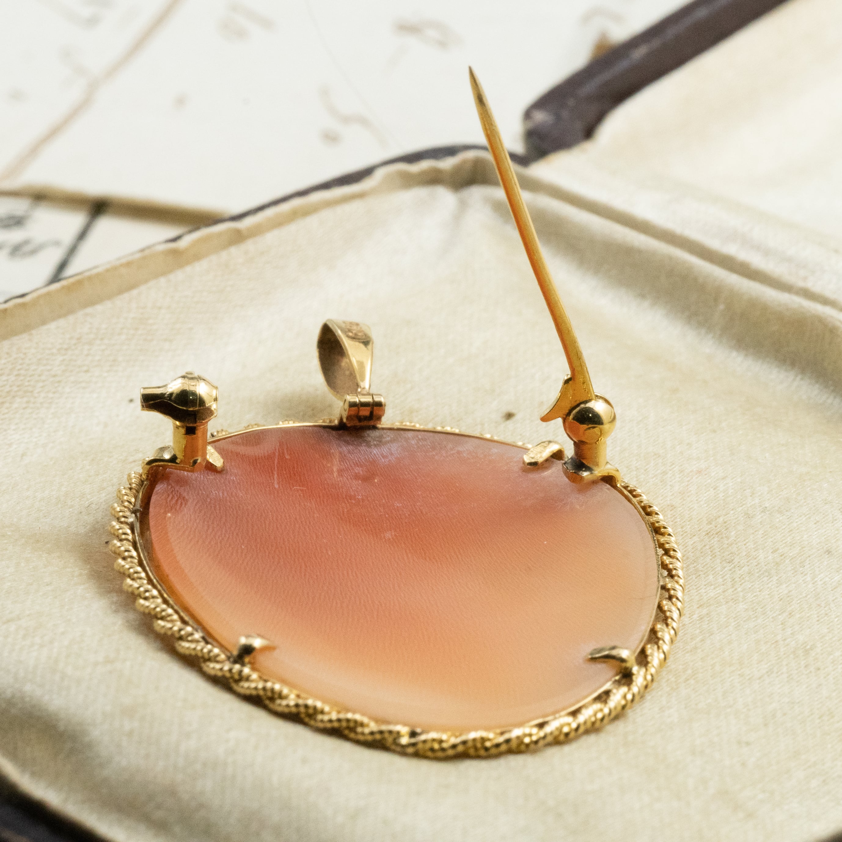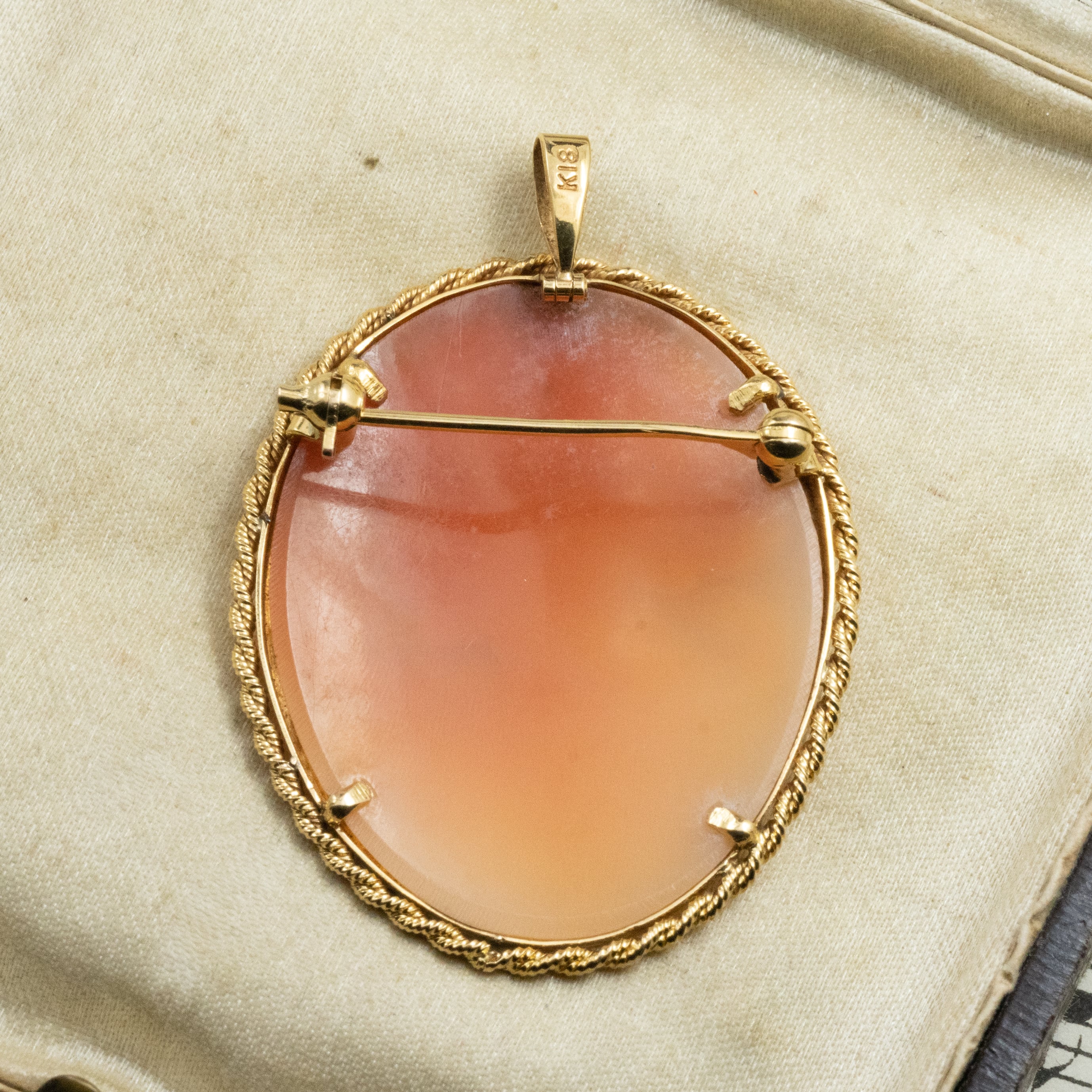 ヴィンテージ ジュエリー K18 カメオ ゴールド レトロ 2way ブローチ ペンダント トップ MOP00268