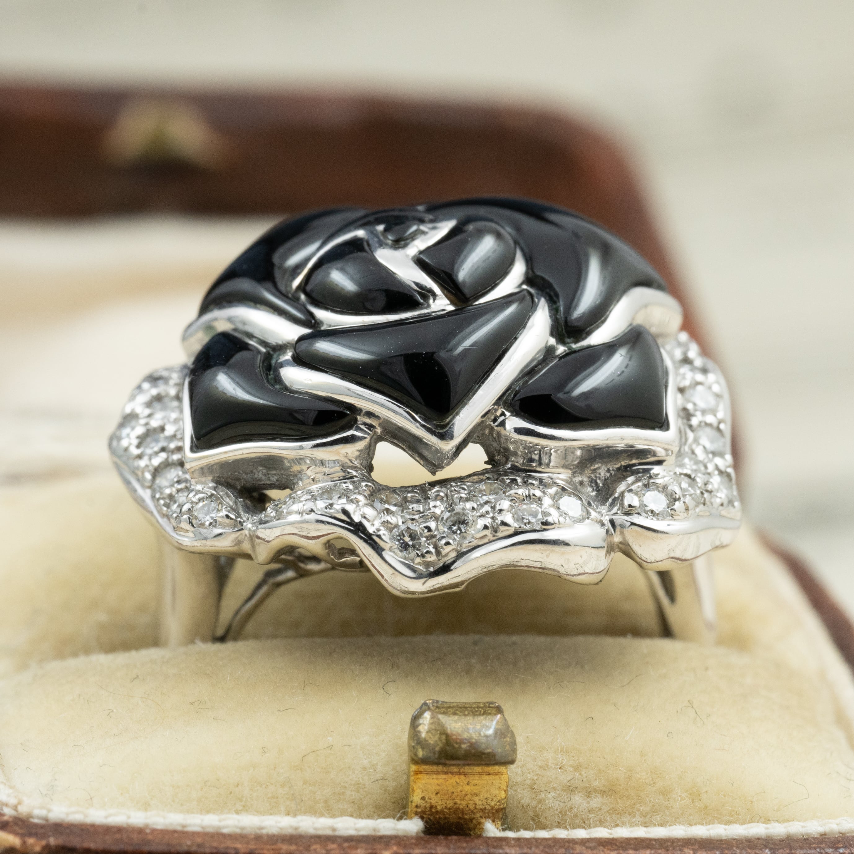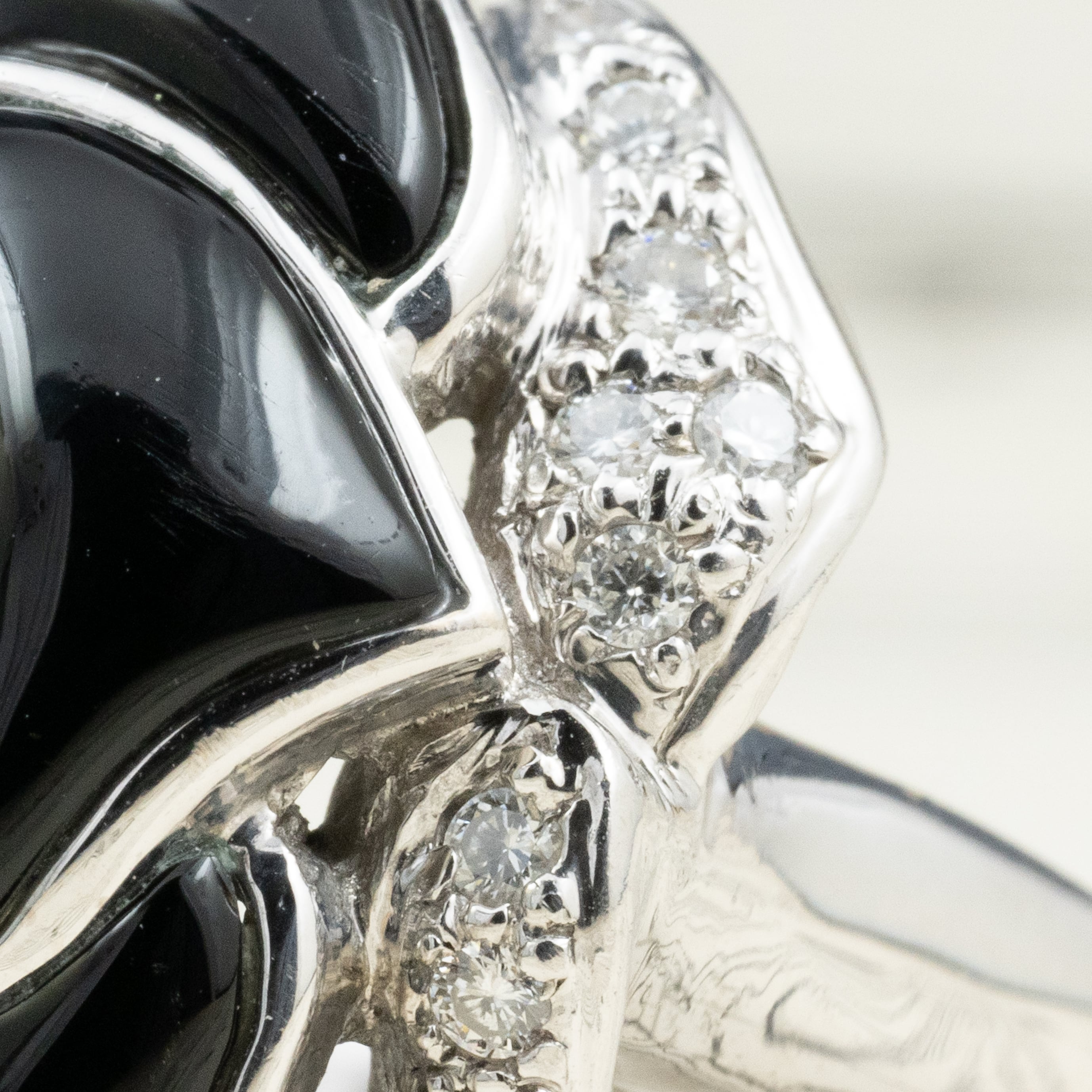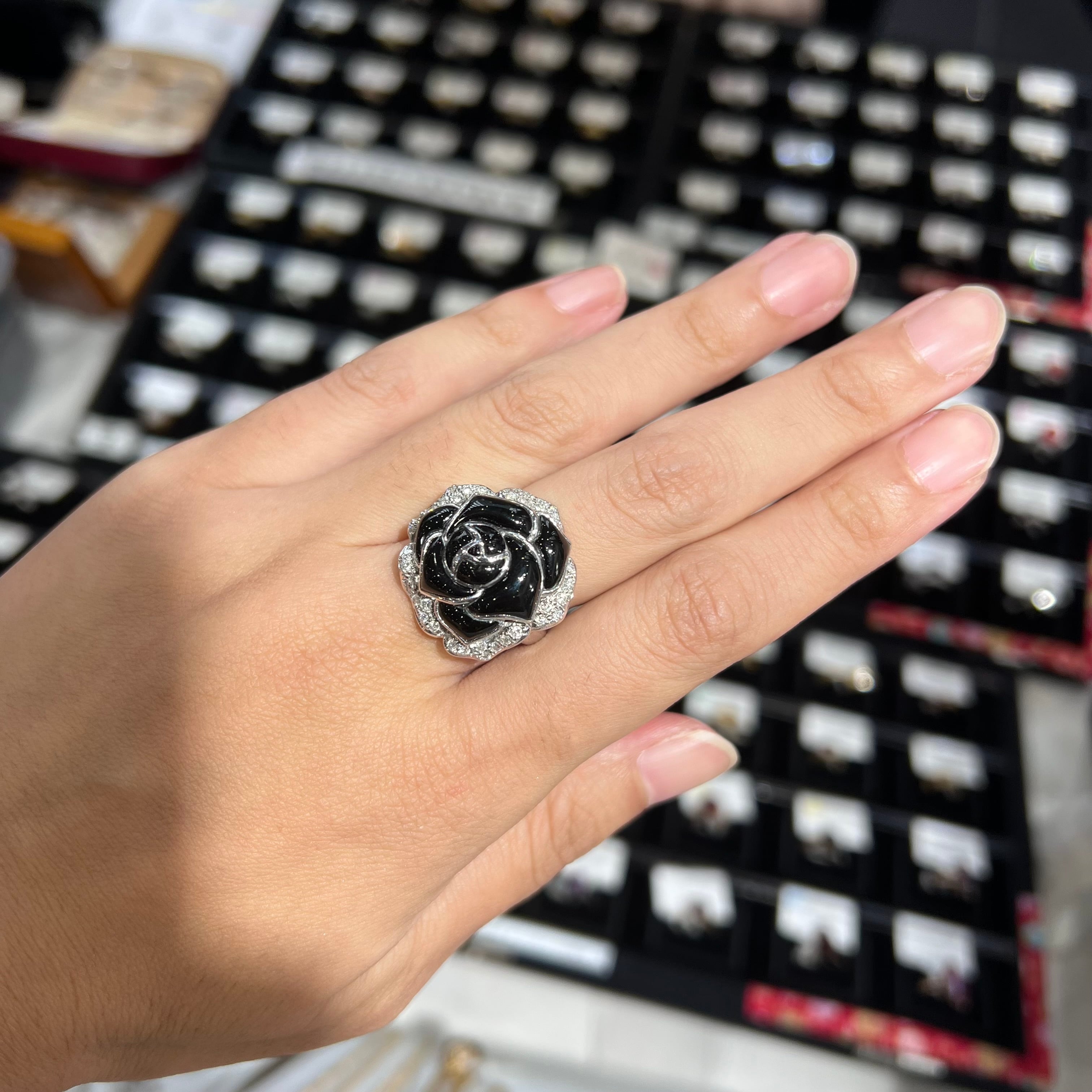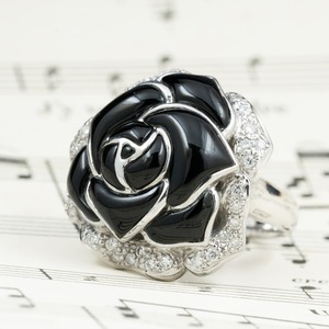 【日本の作品】K18 オニキス ダイヤモンド 薔薇 バラ フラワー 花 大振り デザイン リング 〜クールなお花を手元に〜 MOR00615 K18 オニキス D0.45