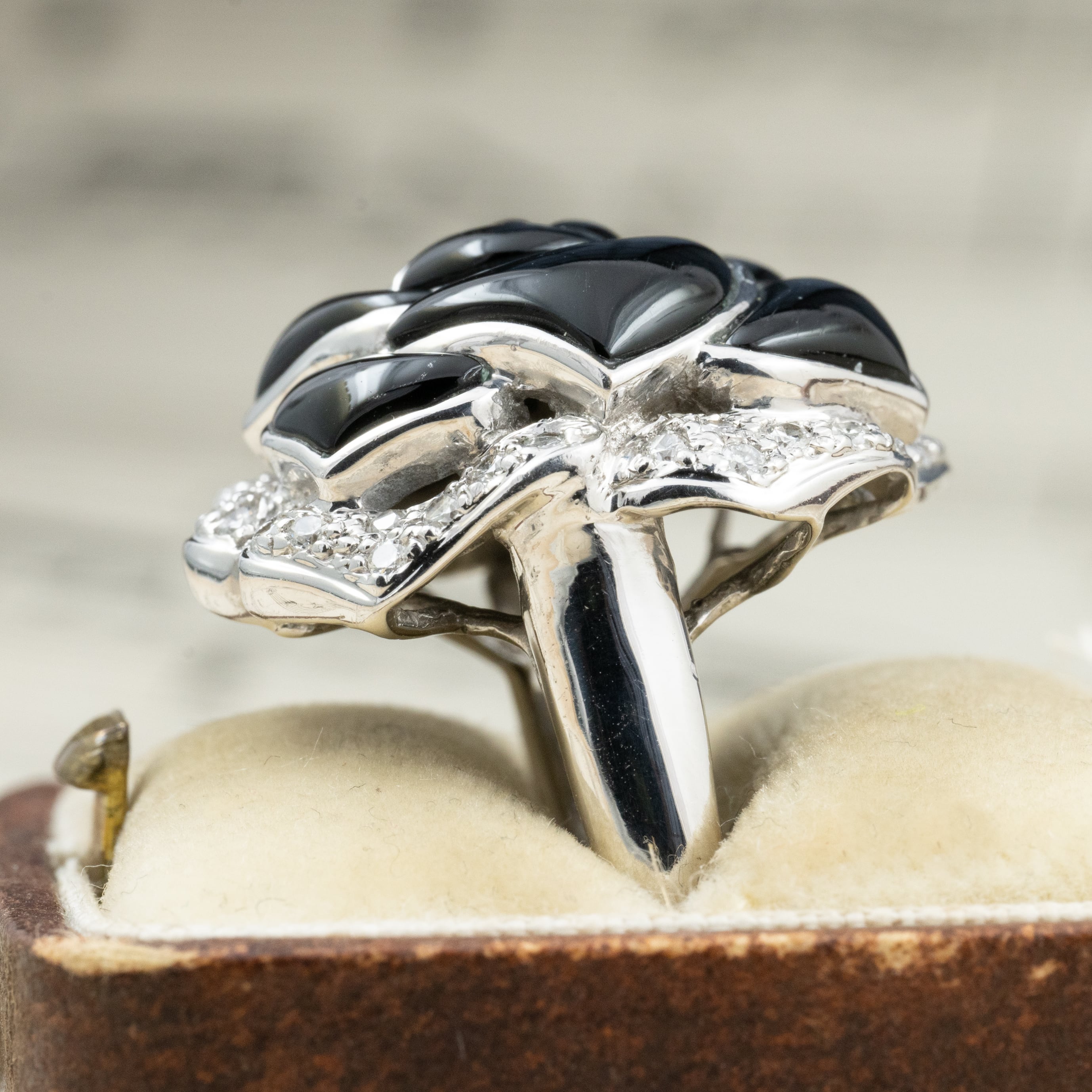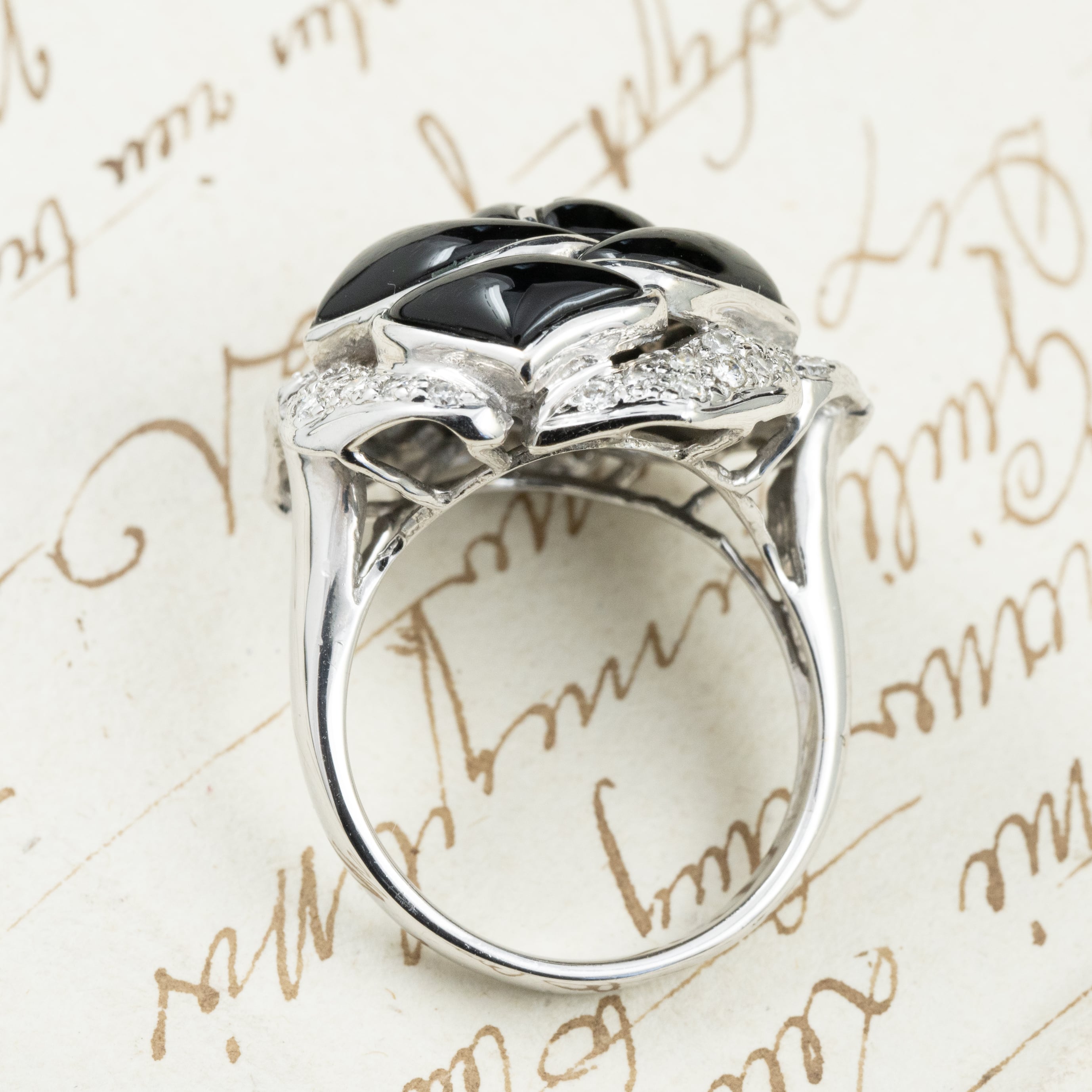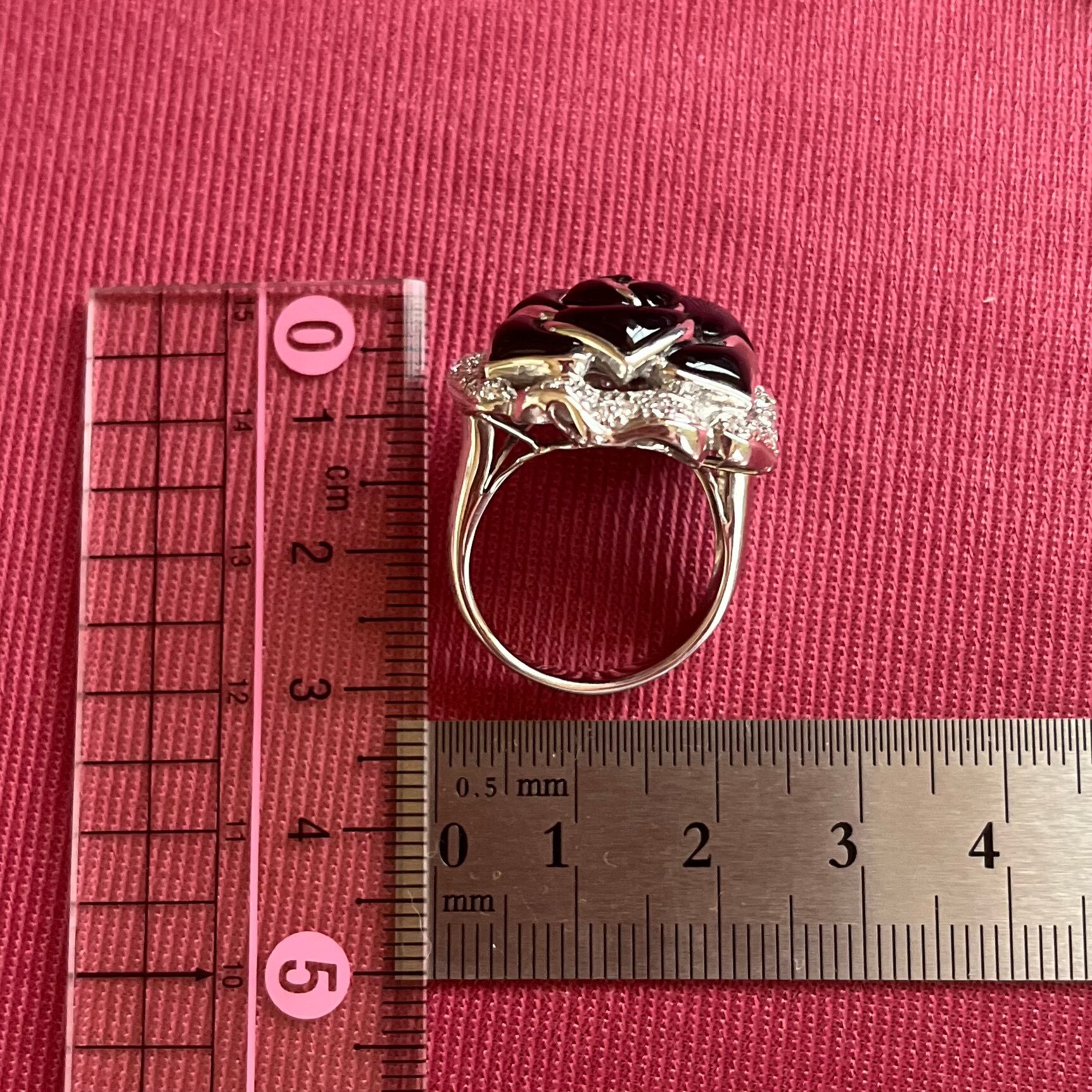 【日本の作品】K18 オニキス ダイヤモンド 薔薇 バラ フラワー 花 大振り デザイン リング 〜クールなお花を手元に〜 MOR00615 K18 オニキス D0.45