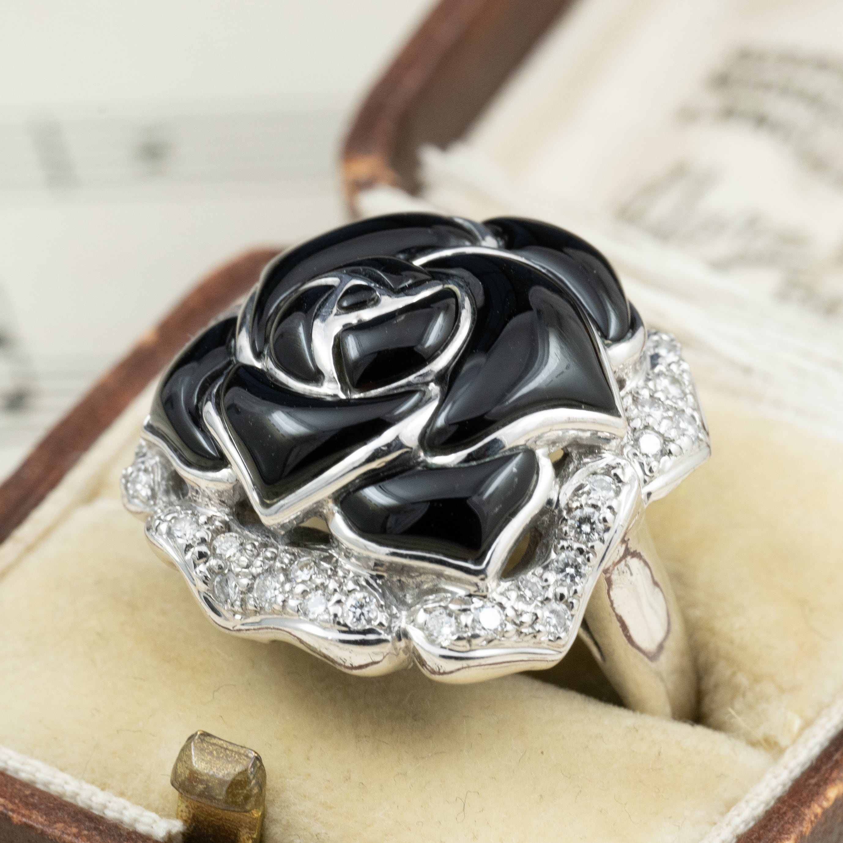 永遠の愛を象徴する黒いバラを、漆黒のオニキスで表現。