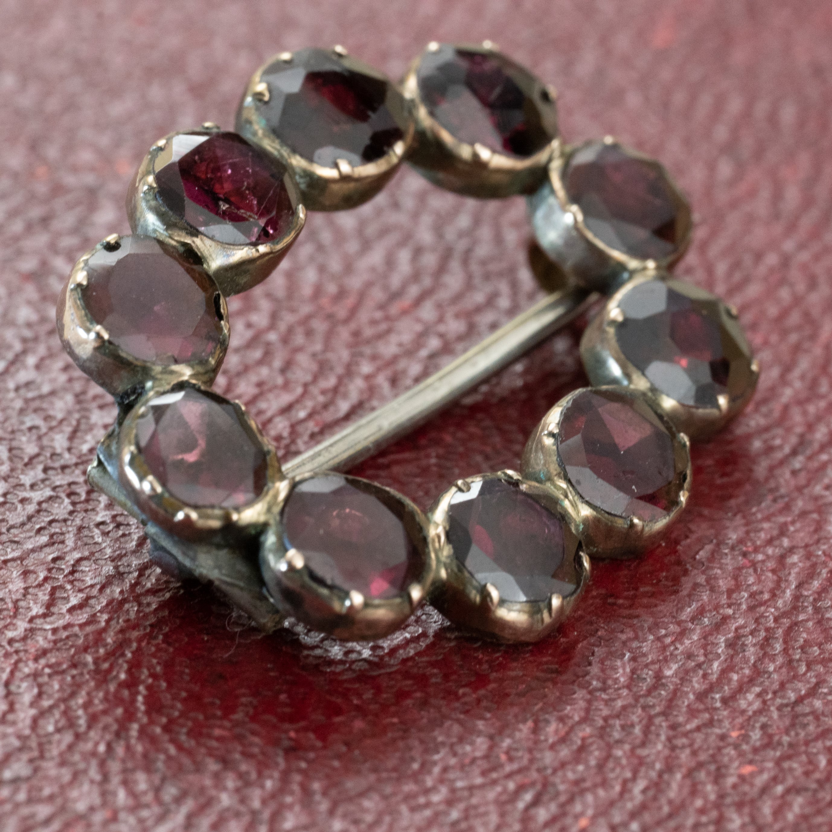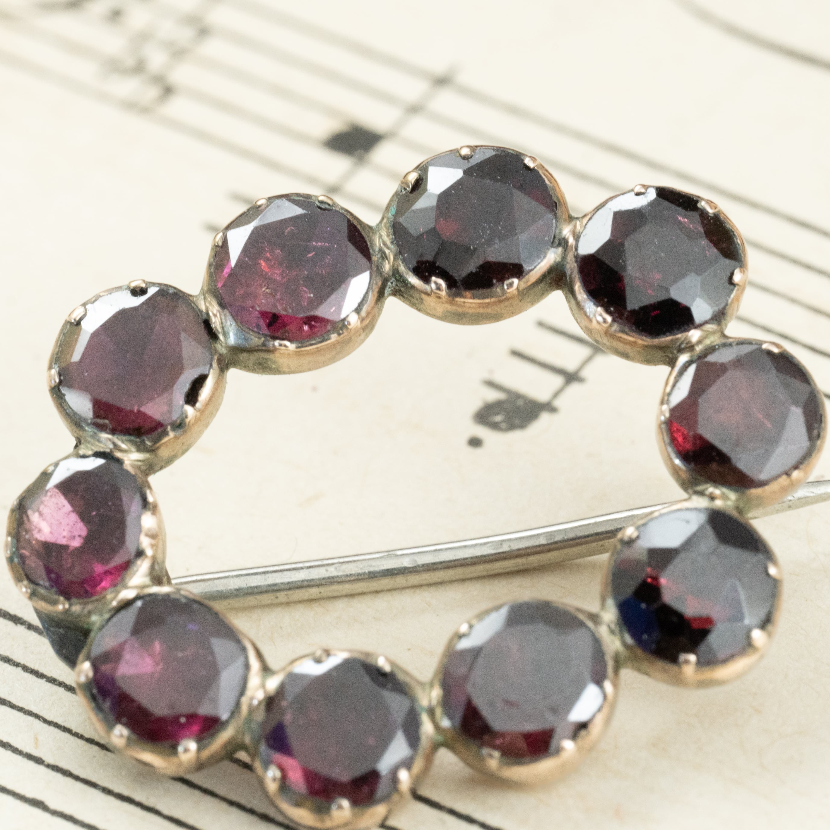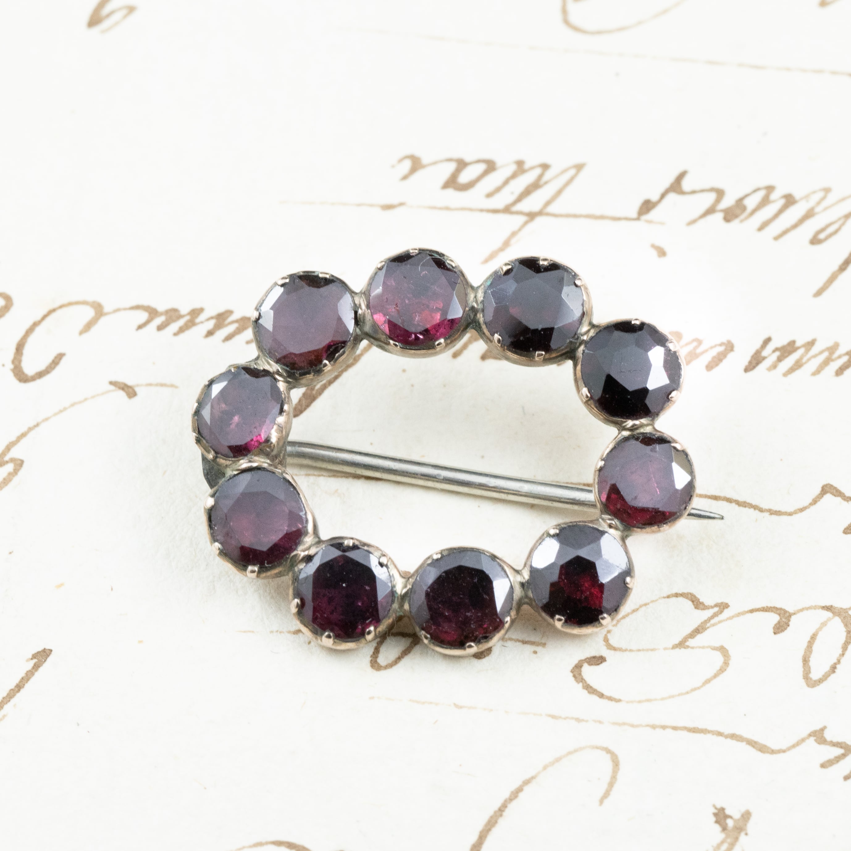 イギリス アンティーク サークル デザイン ブローチ K9 アルマンディン ガーネット 1800前半〜中旬頃 ~落ち着いた赤色から感じるロマン~ DBR00137