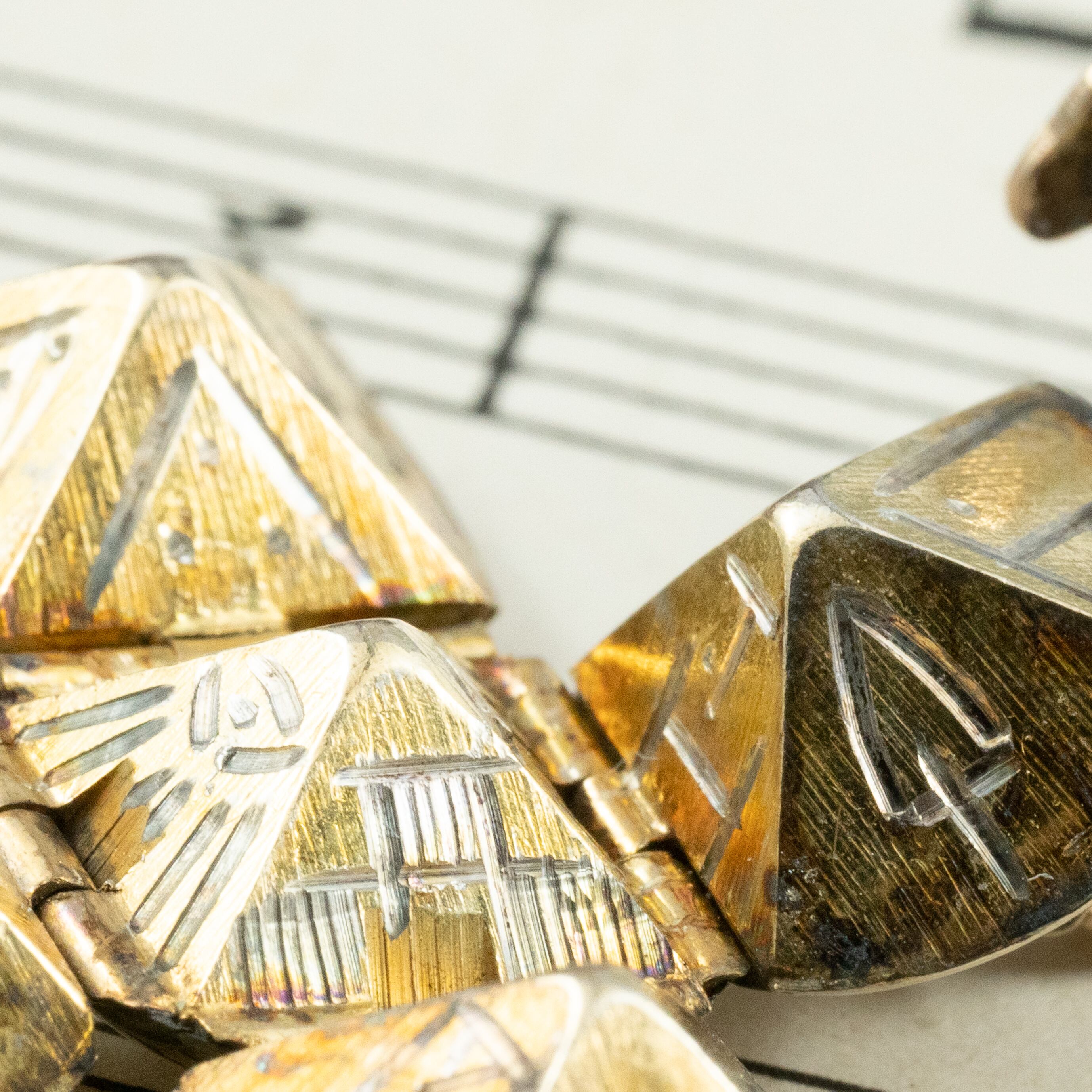 1800 年代後半から 1900 年代初頭にかけて、装飾的な時計フォブがファッショナブルなアイテムとして世界的に流行しました。こちらのマソニックボールも同じころからフリーメイソン会員に人気が出たアイテムで、形はドイツ式、オールドイングリッシュ式、ニューイングリッシュ式、スコットランド式の 4 種類があります。(ボールの開き方やクラスプのボール固定方法が異なるそうです)