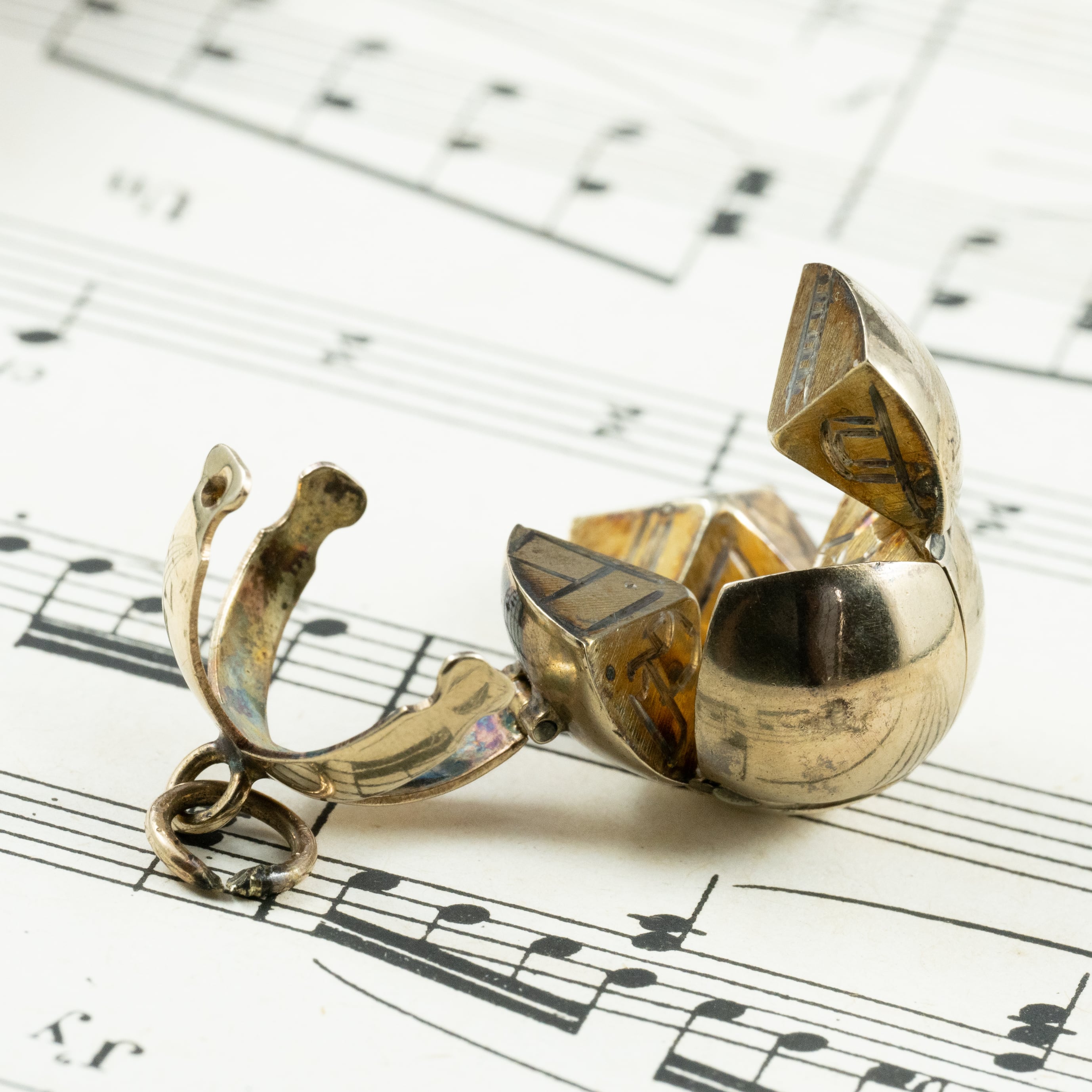 フォブ※(懐中時計にぶら下げるアクセサリー)発祥でフリーメイソンに人気が出たこちらのアイテムは、ボールを開くと十字架になる仕掛けになっています。