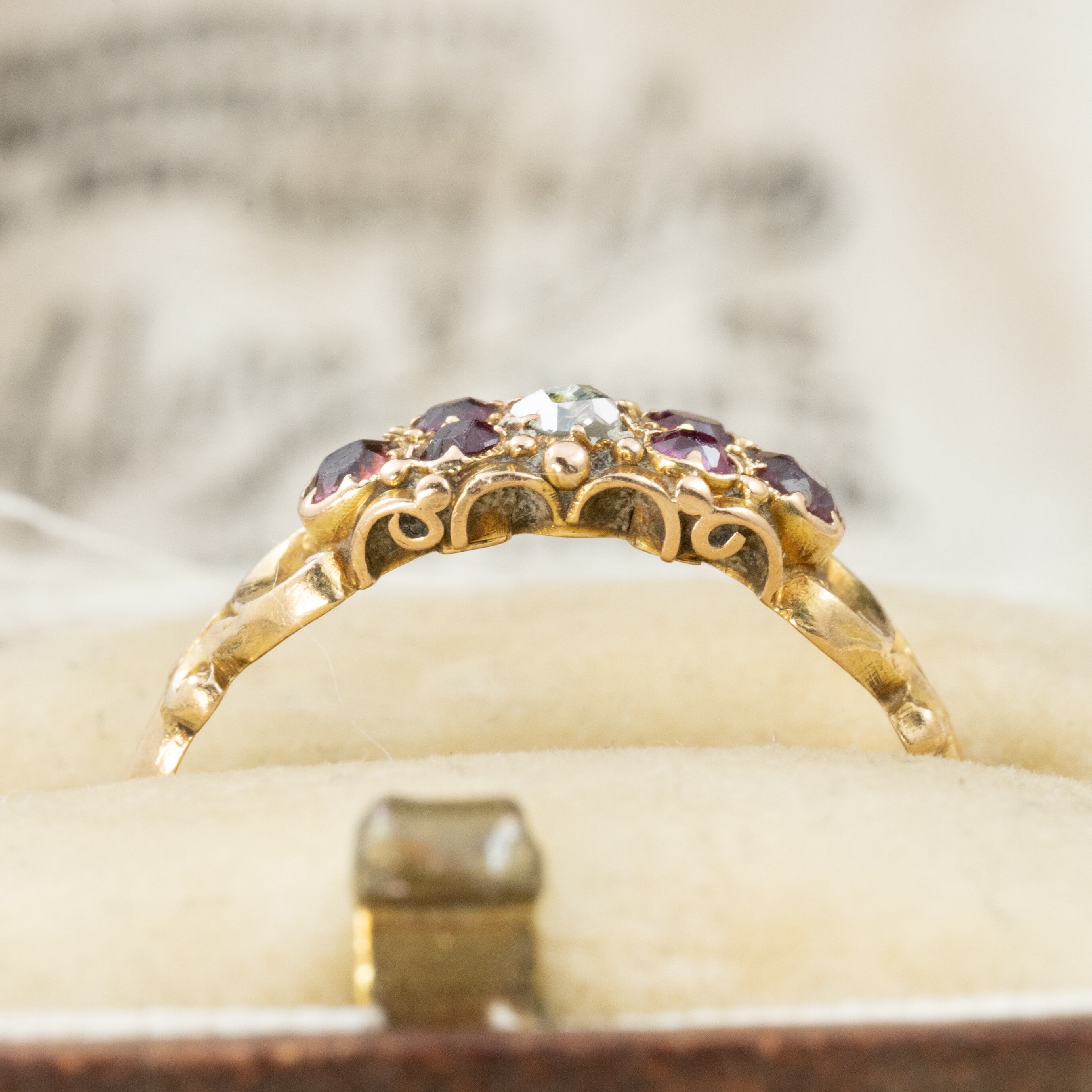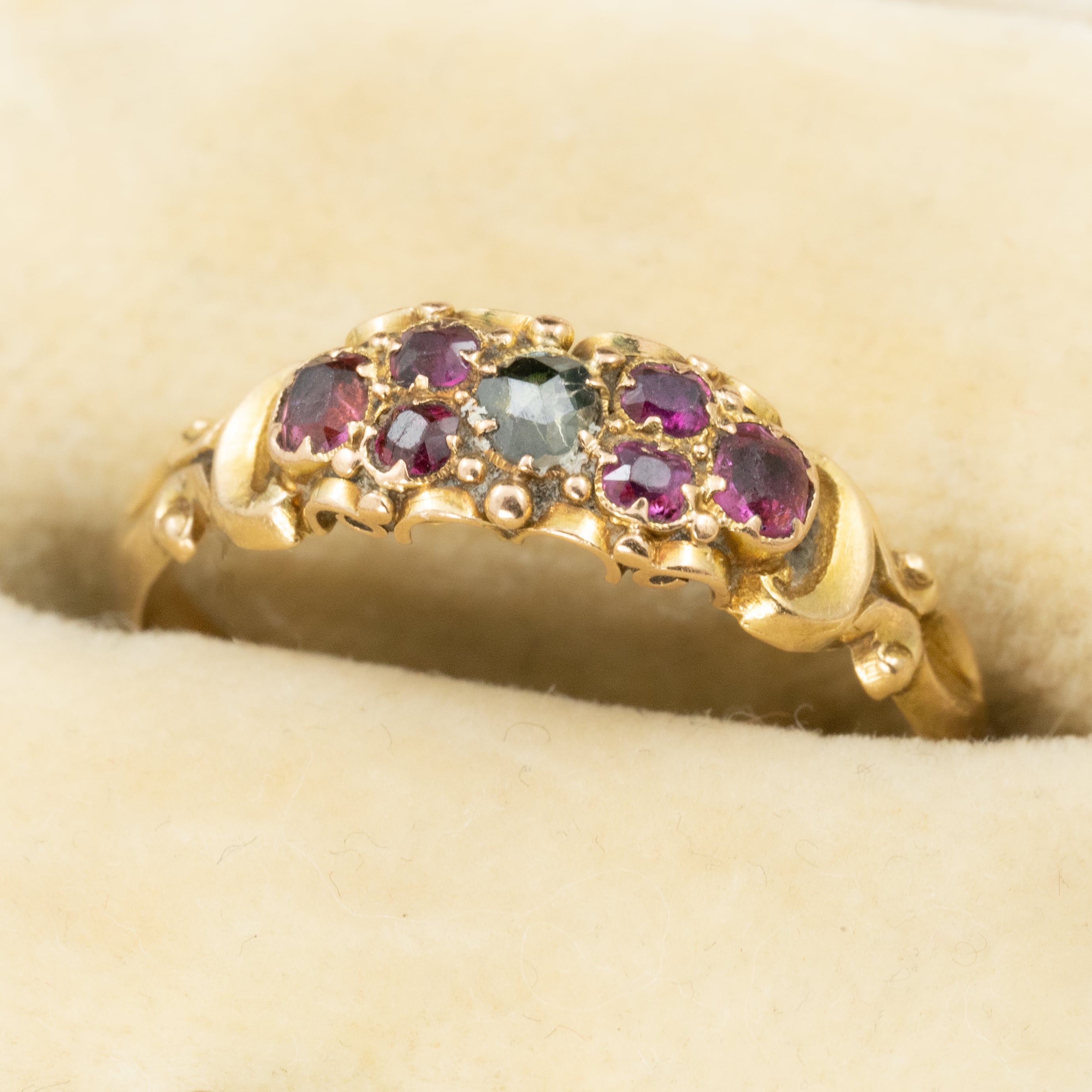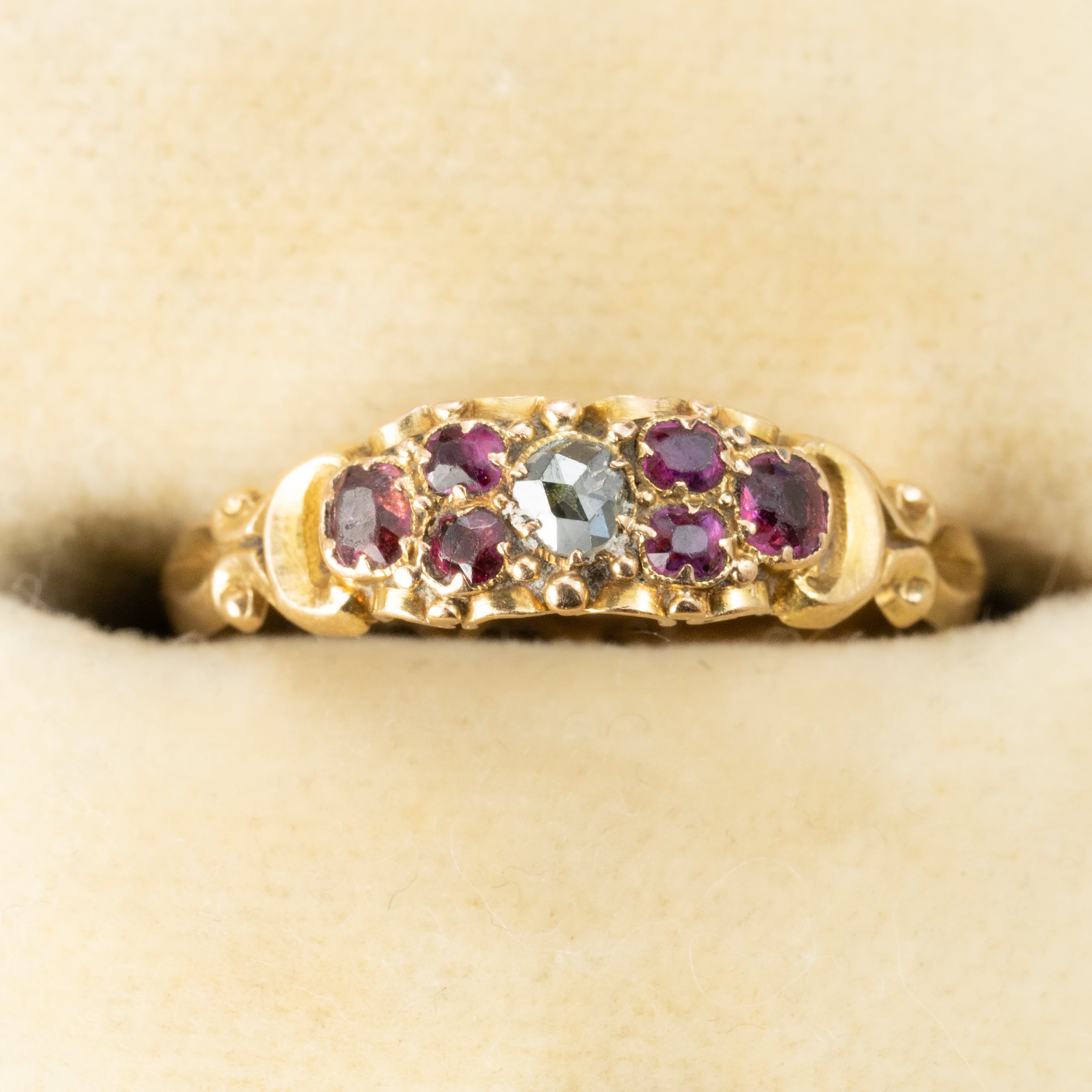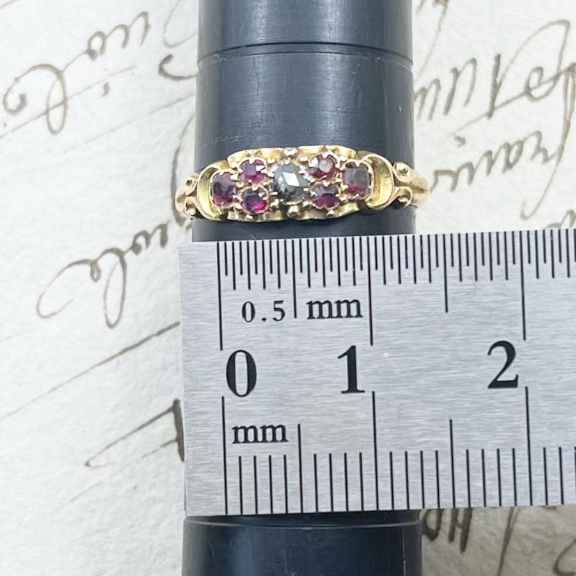 K18イギリス アンティークリング 1864年 貴重なフォイルバックリング〜 ローズカットダイヤモンドとルビーの饗宴〜DR00688