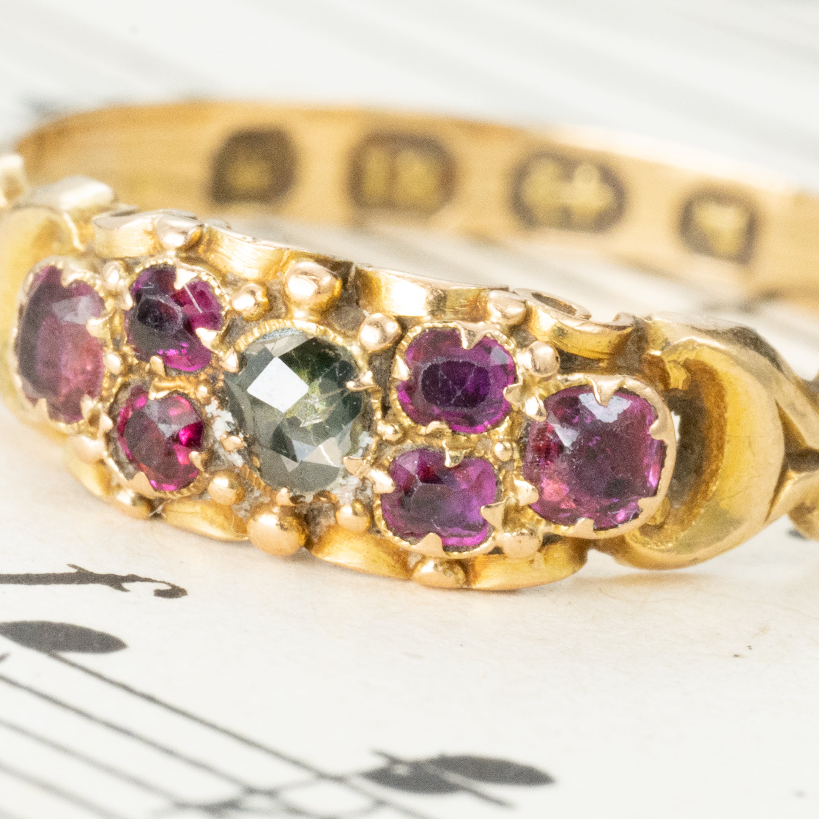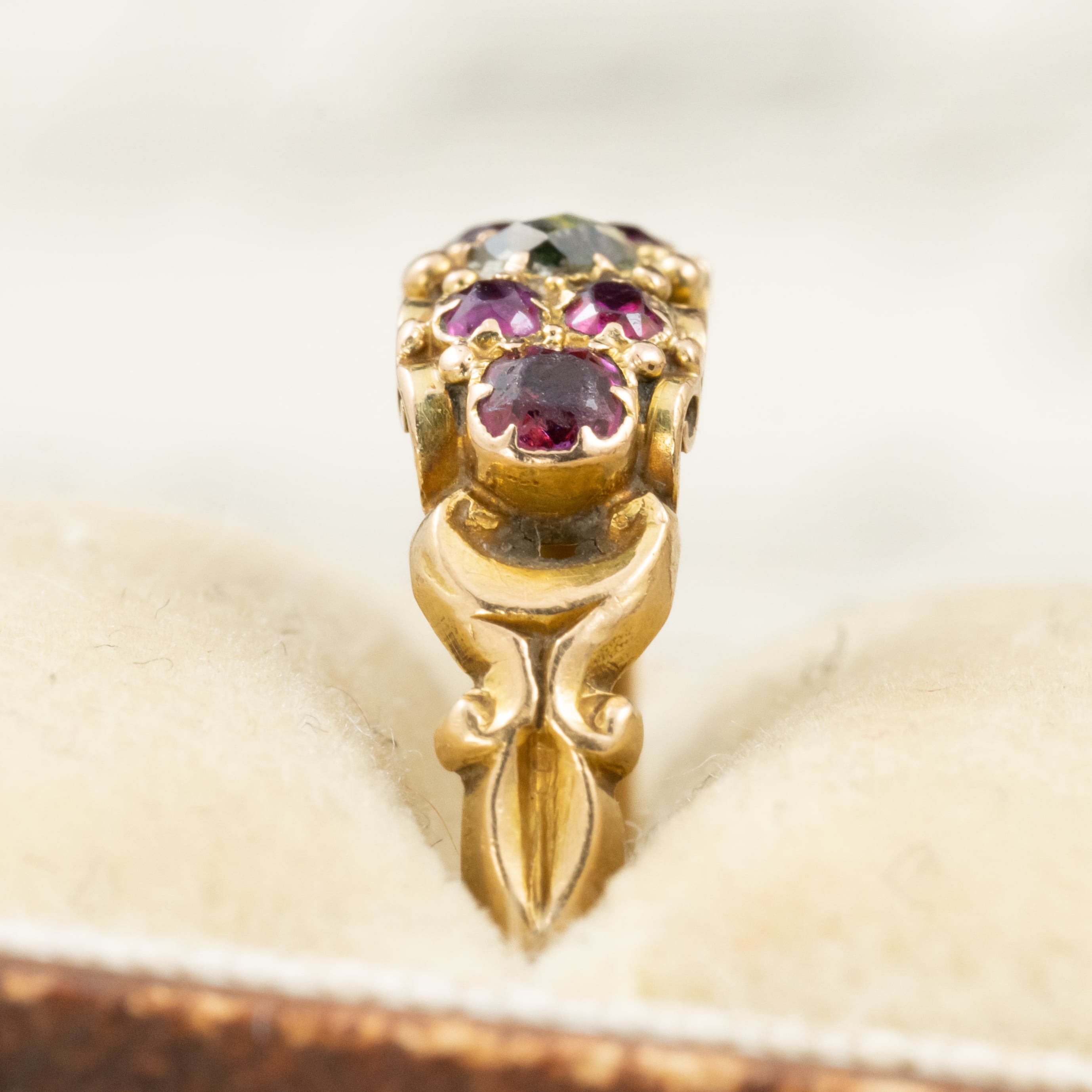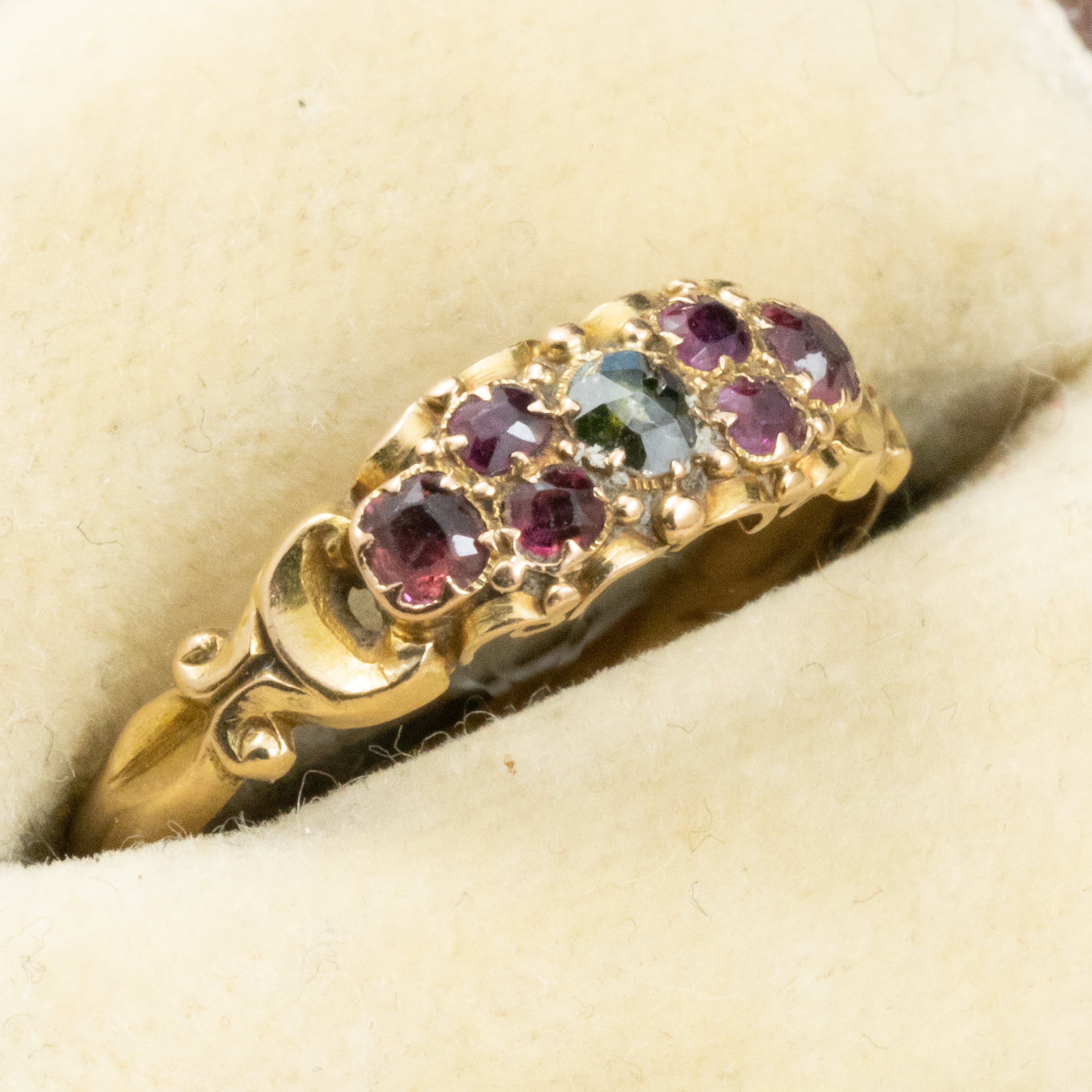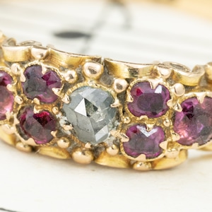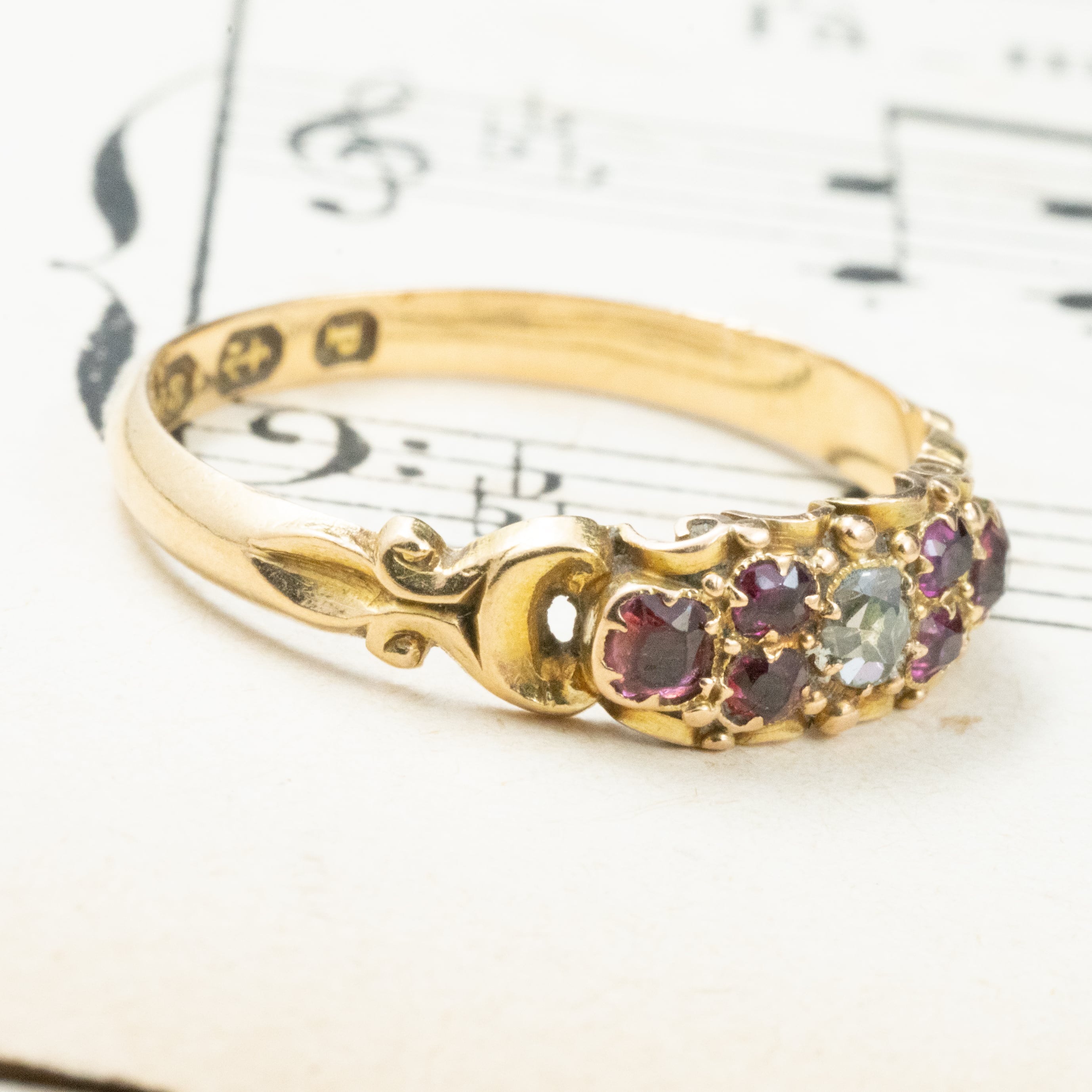 K18イギリス アンティークリング 1864年 貴重なフォイルバックリング〜 ローズカットダイヤモンドとルビーの饗宴〜DR00688