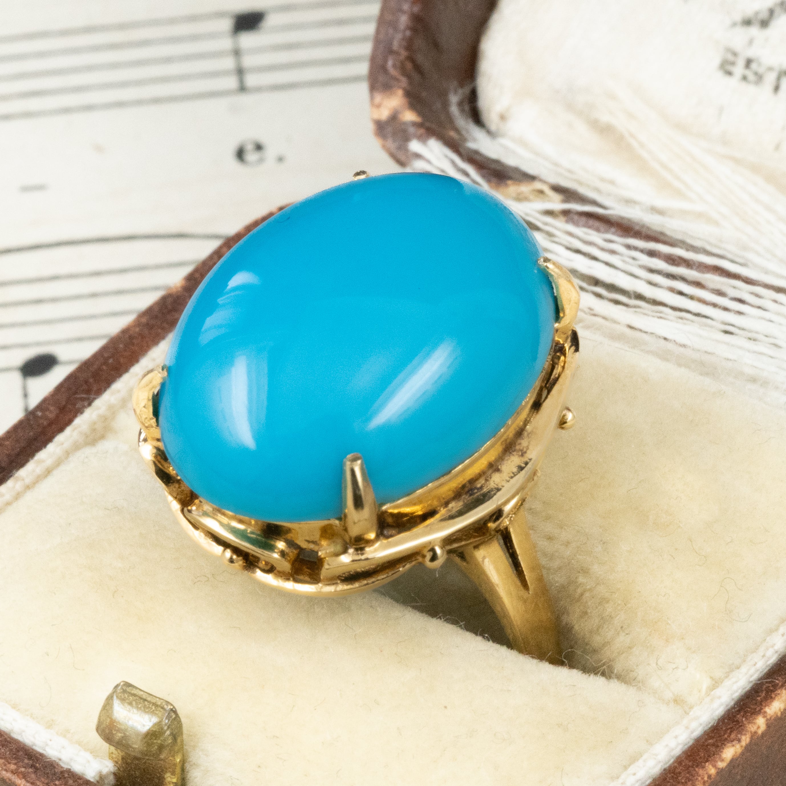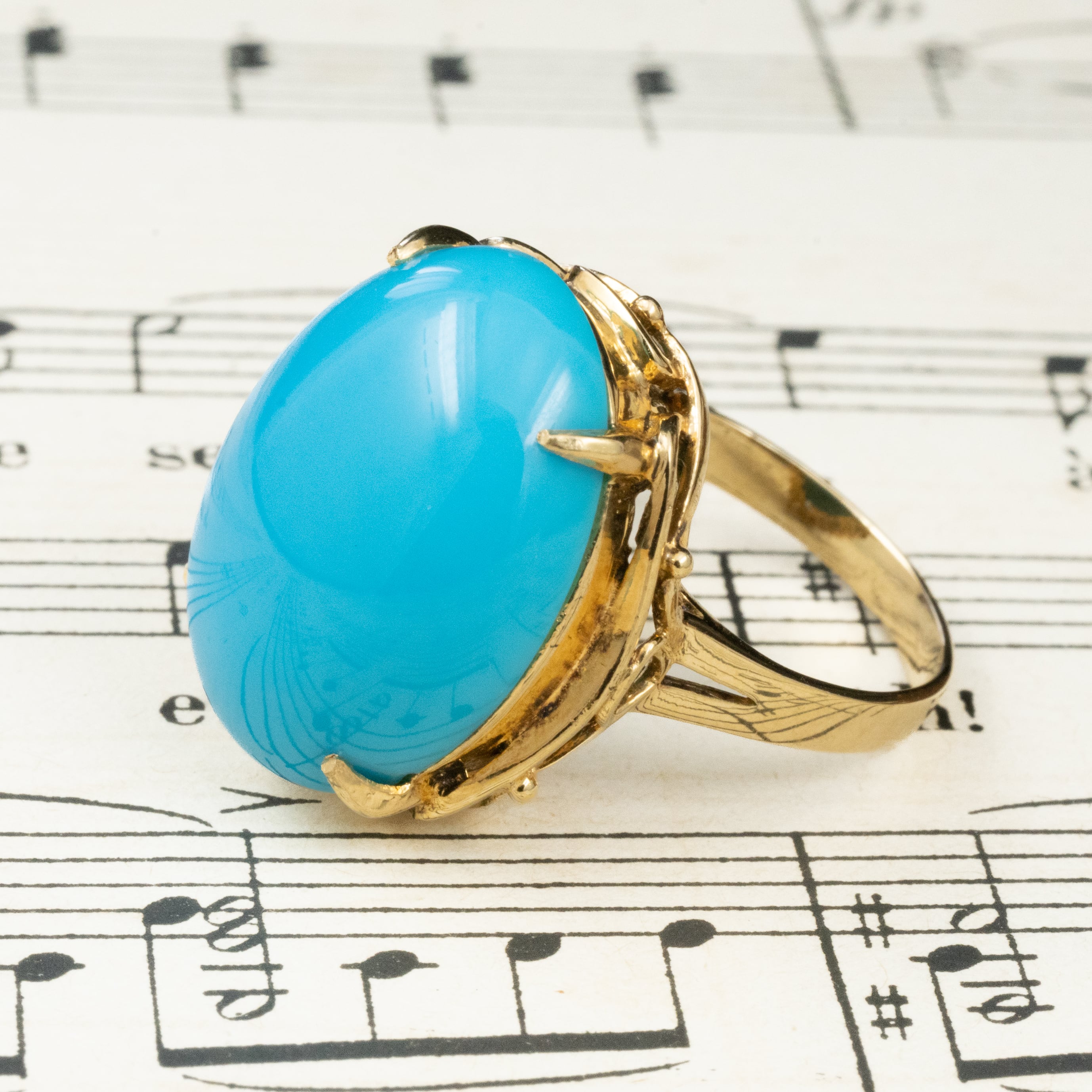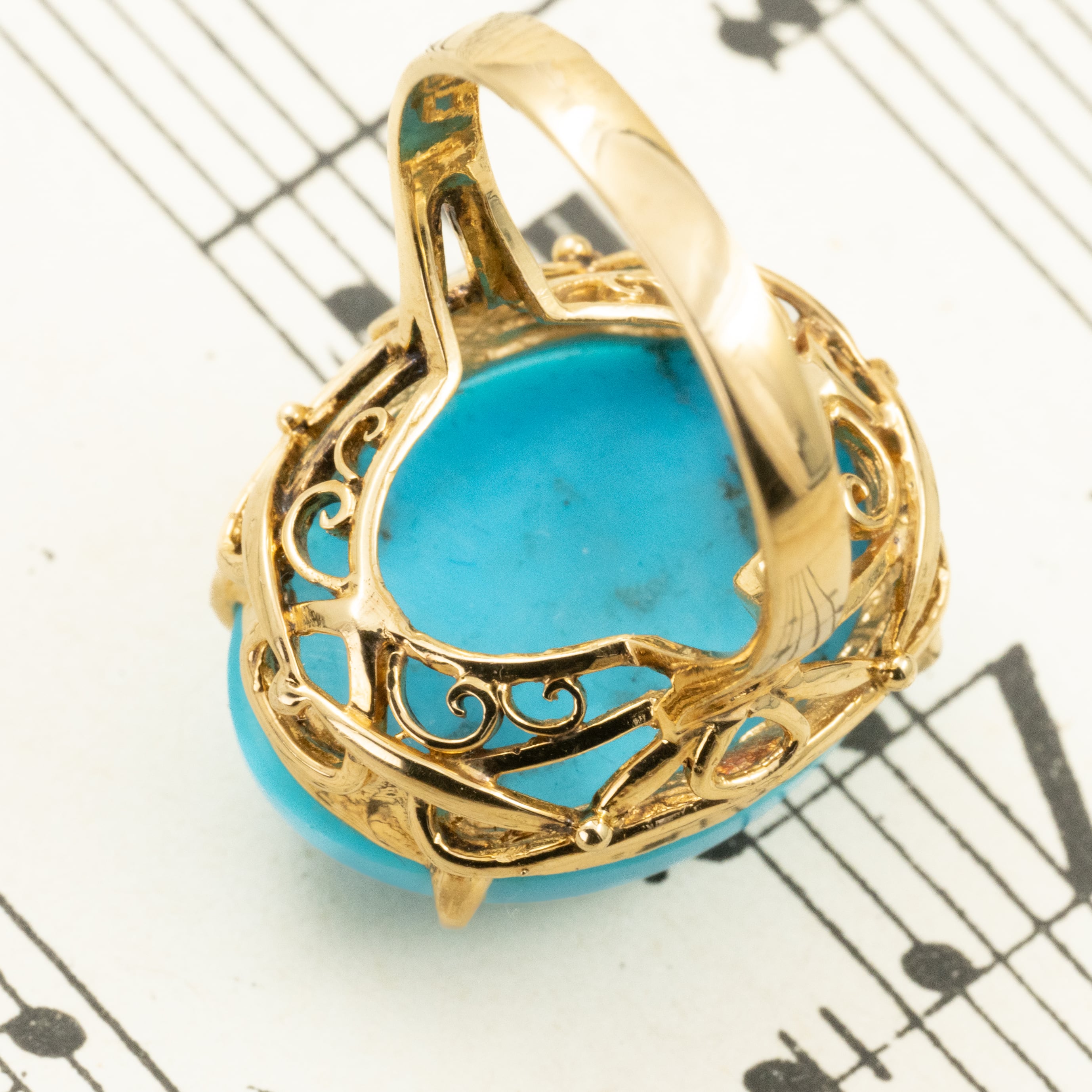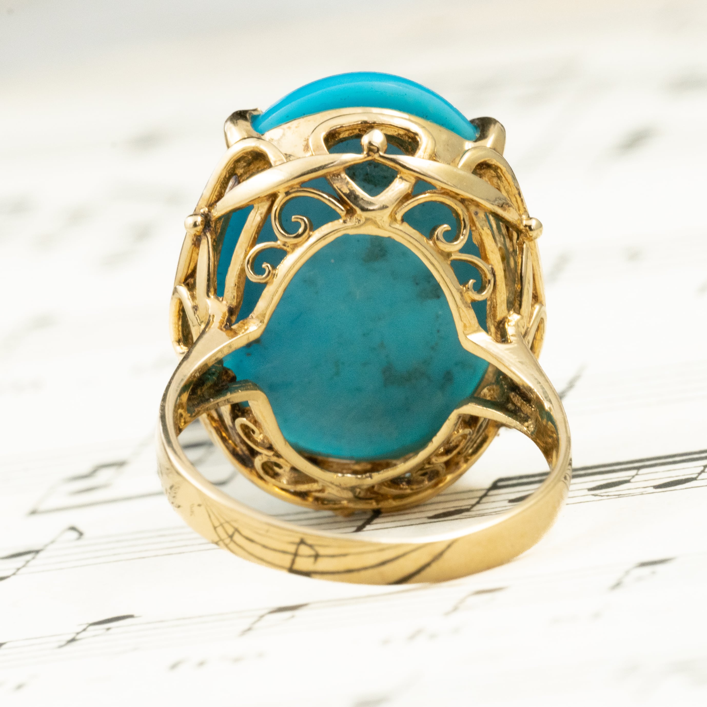 【日本の作品】K18 昭和レトロ ターコイズ リング ~青空の下、明るい時代を象徴するような華やかさ~MR00759