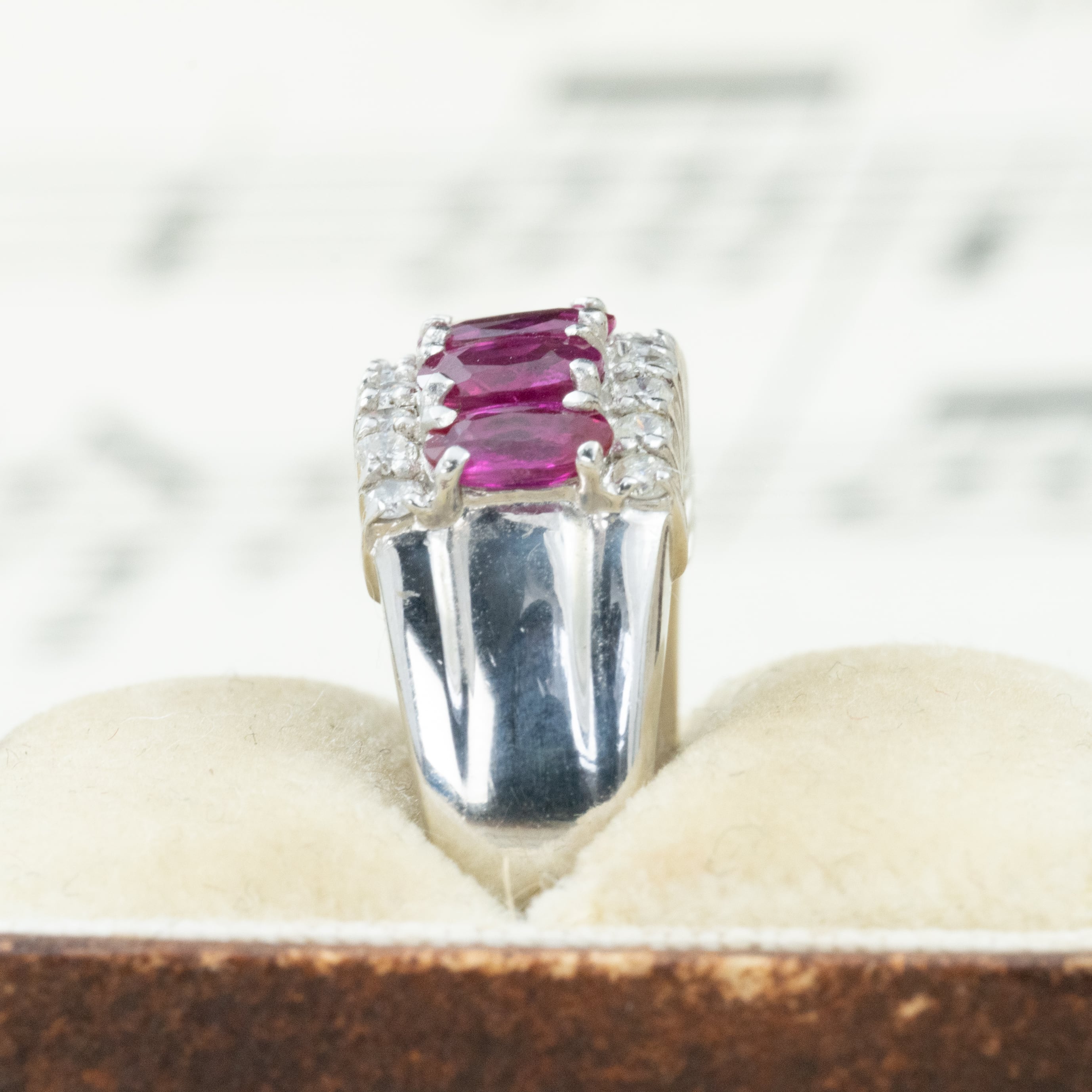 【日本の作品】昭和レトロ ヴィンテージ ざますデザイン リング K14WG ルビー ダイヤモンド ~ルビーの豪華な存在感と輝きをご堪能ください~ MR00770