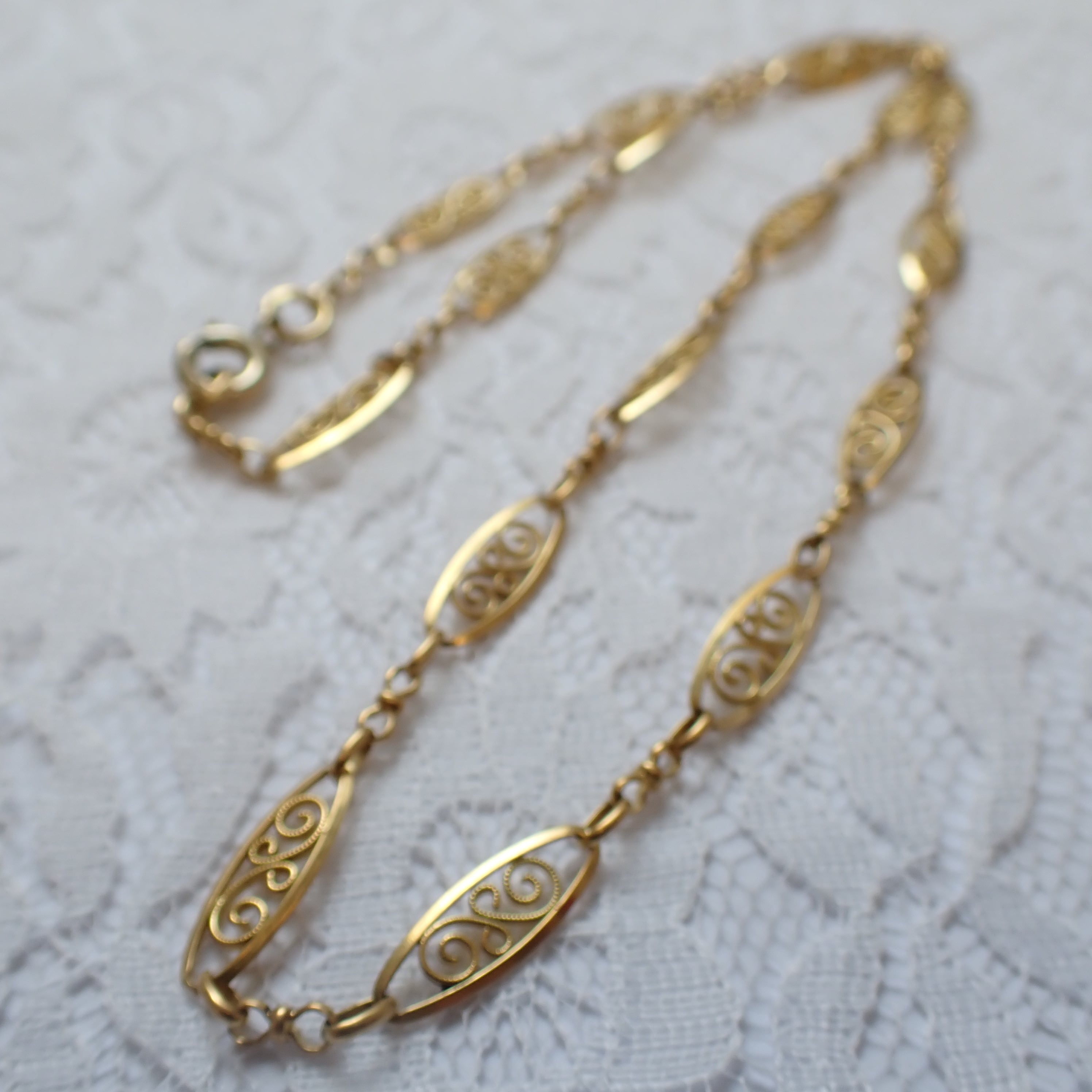 DRN00079 フランス アンティーク フィリグリー 透かし 金線細工 チェーン ネックレス K18 アルゴール 46.5cm 〜悠久の時を超えやってきた職人の手仕事光る逸品〜