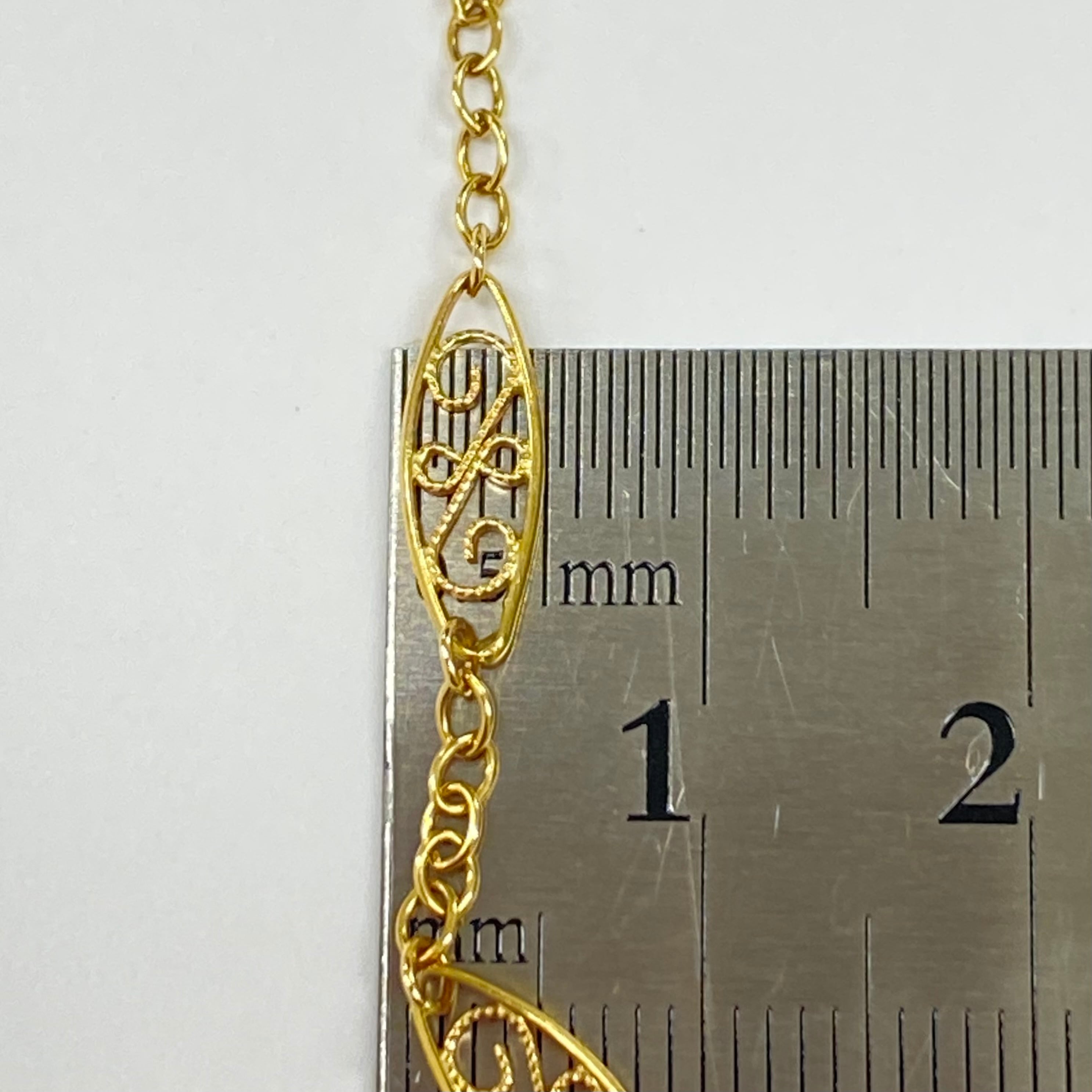 細やかな金線を編み込むように仕立てたフィリグリー(透かし細工)が、しなやかに連なるデザインで、ひとつひとつのマーユには優雅なねじり模様が施され、光を受けるたびに柔らかな陰影をつくり出します。