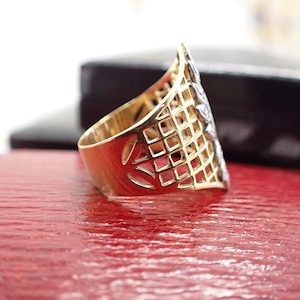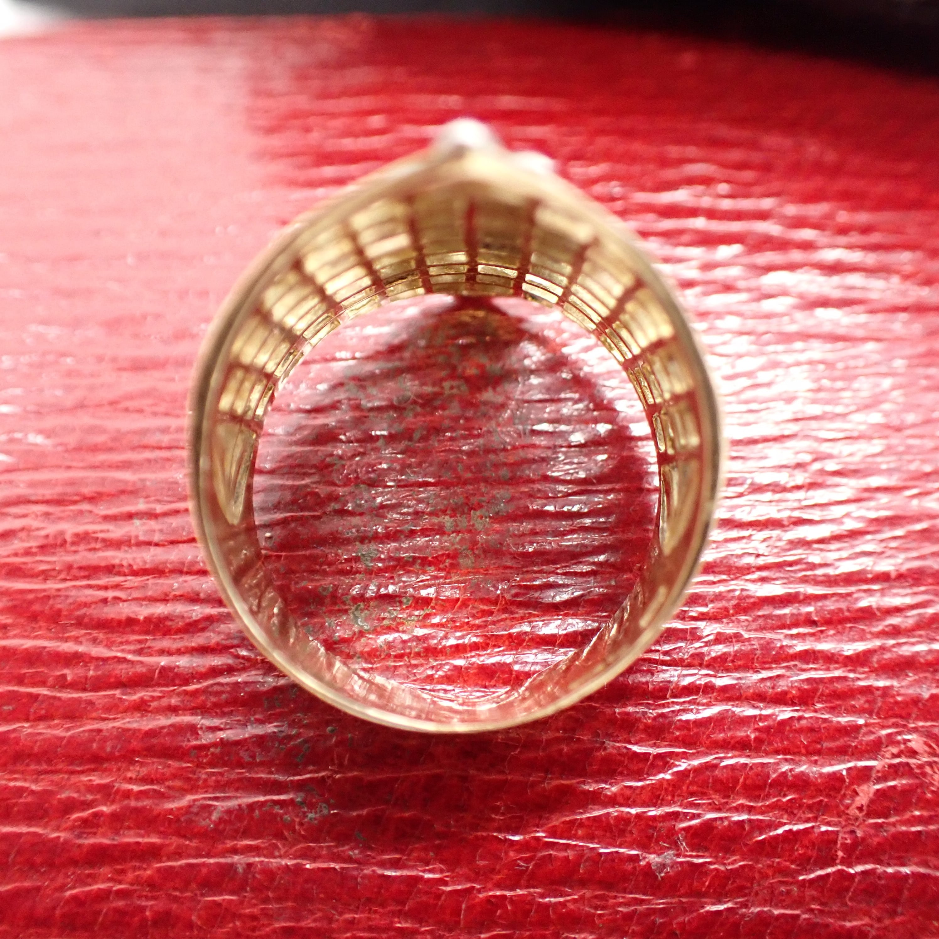 レトロながらもモダンな雰囲気さえも感じるこちらのリング、