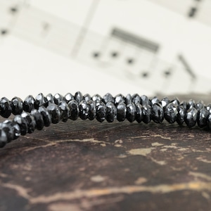 細やかなカットが施されたブラックダイヤのビーズは、光を受けるたびにメタリックな艶めきを放ち、シンプルでありながらラグジュアリーな存在感を演出。