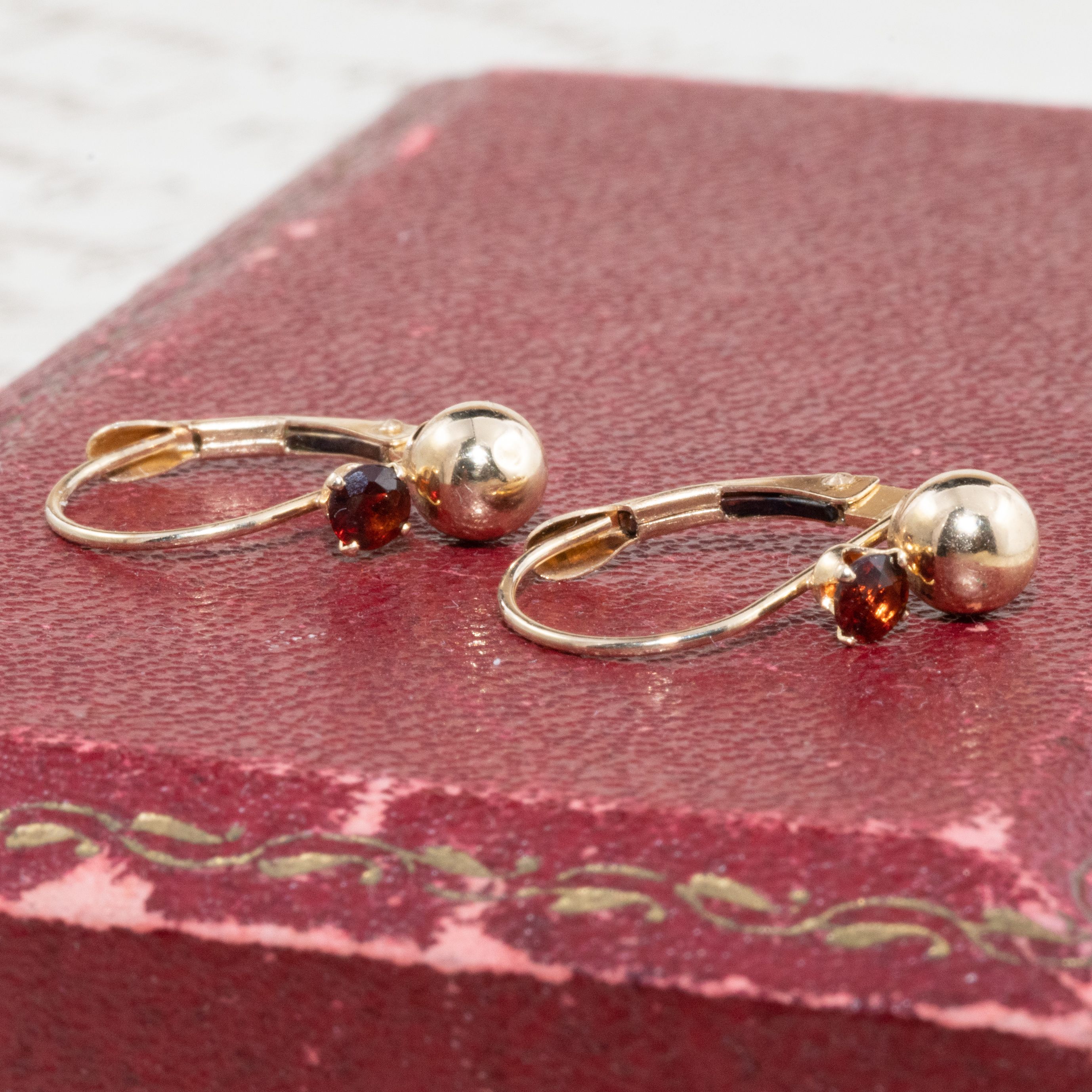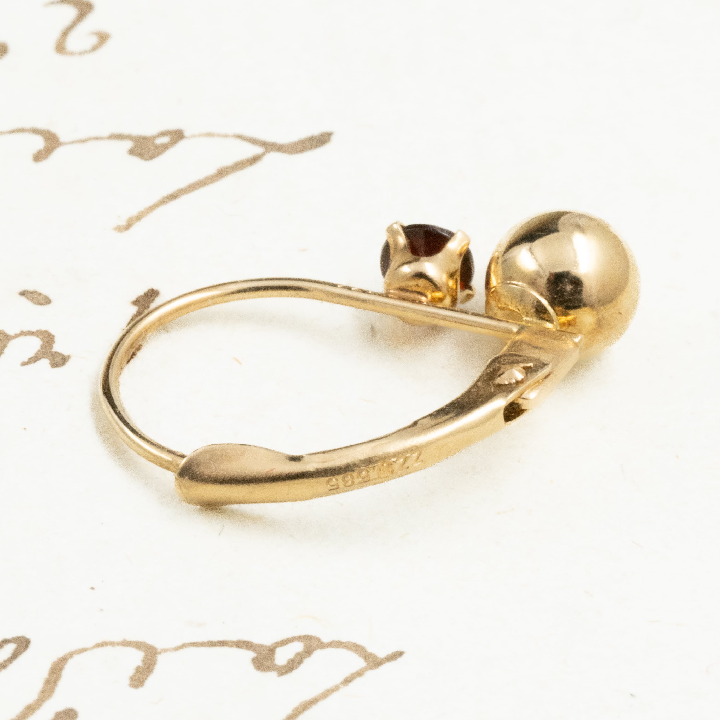 ヴィンテージ ジュエリー K14 585 ガーネット ゴールド カラー シンプルデザイン スリーパー ドルムーズ ピアス ME00083
