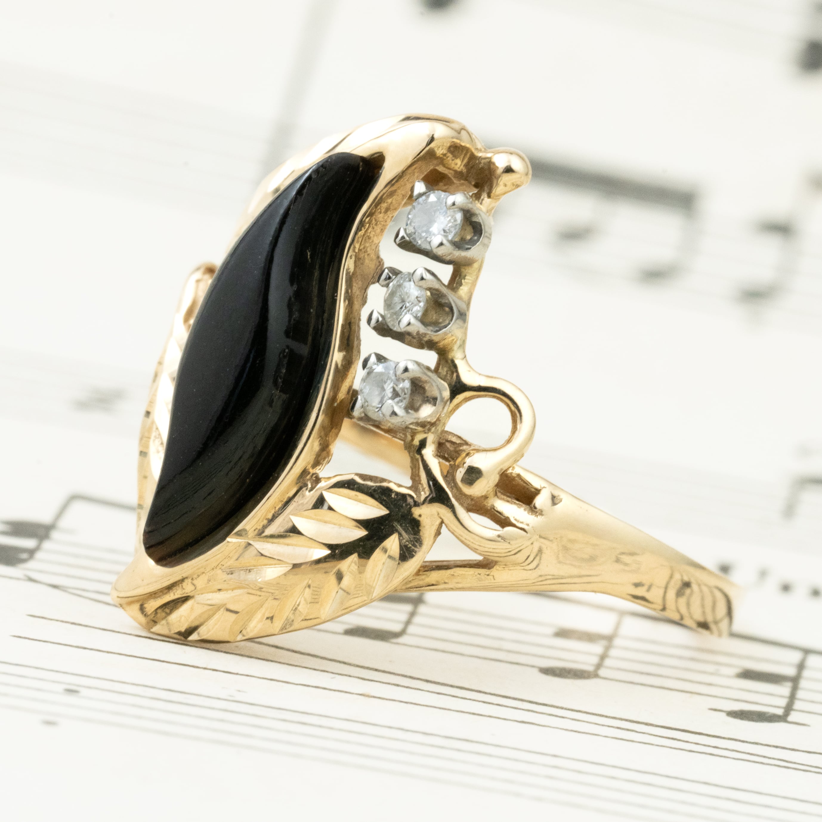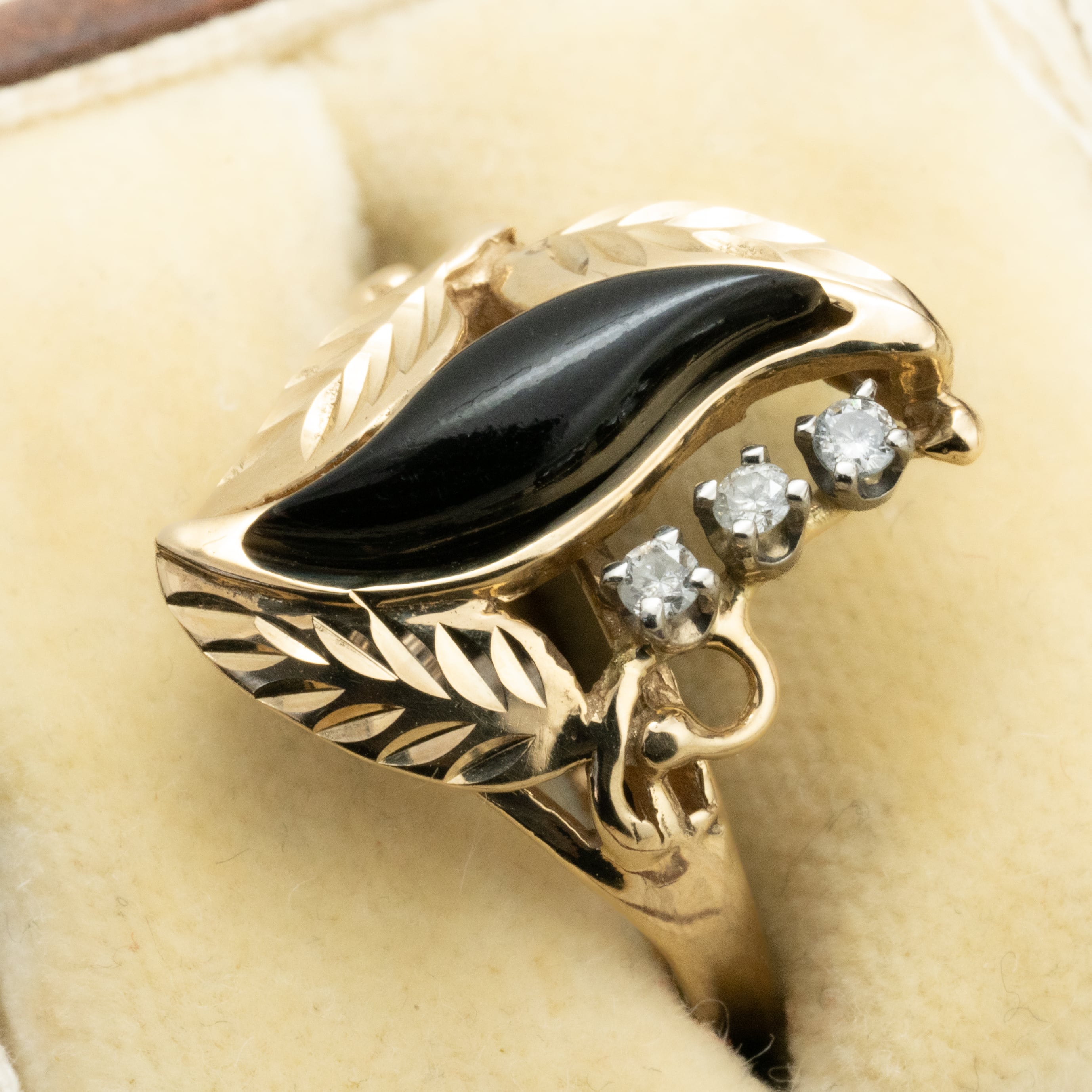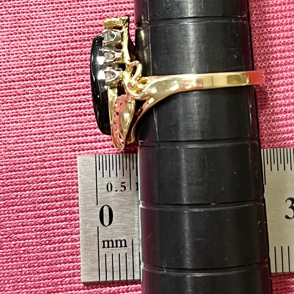 K14 黒珊瑚 さんご ブラックコーラル ダイヤモンド リーフ 葉 モチーフ デザイン リング 〜希少な漆黒の黒サンゴの自然美〜 OKR00210