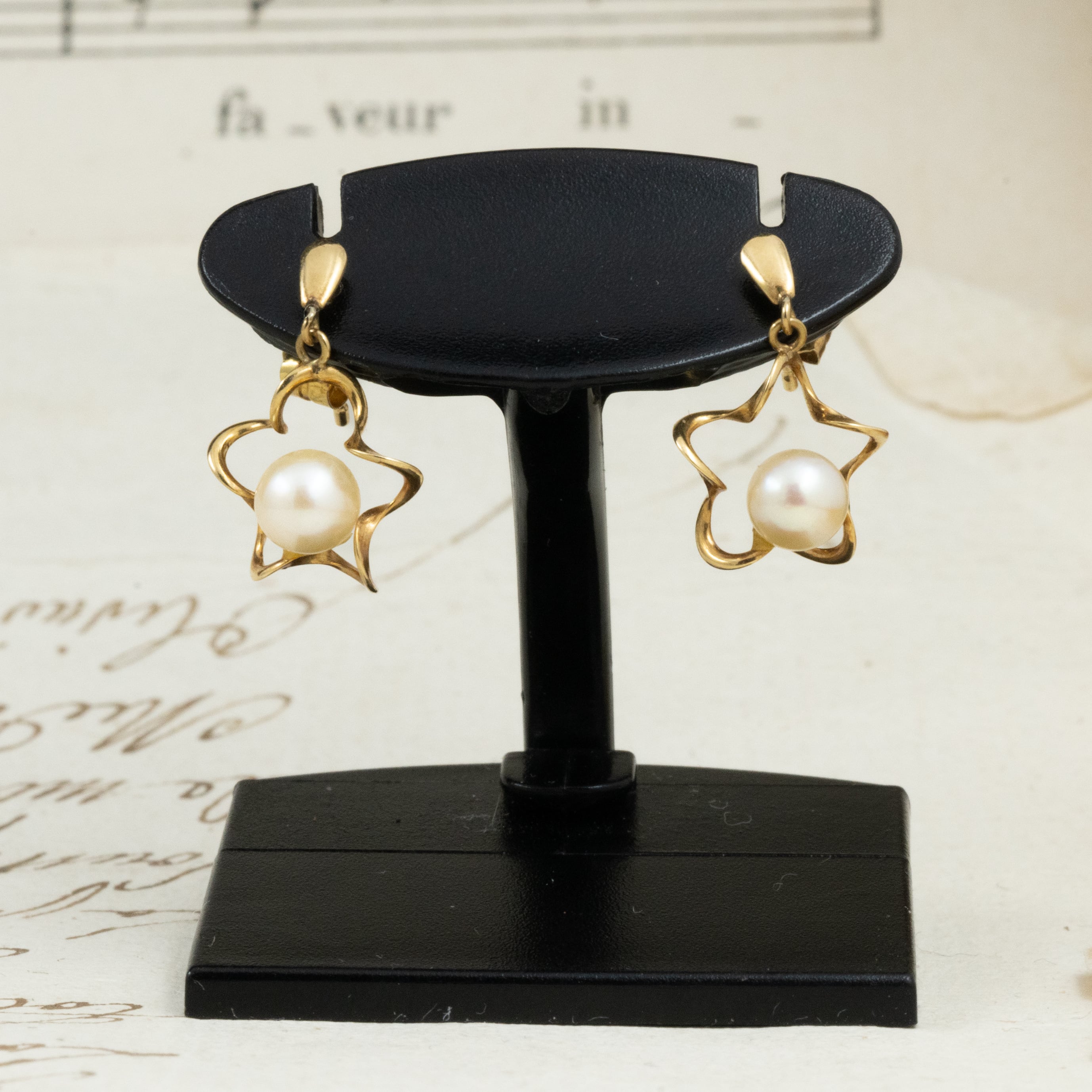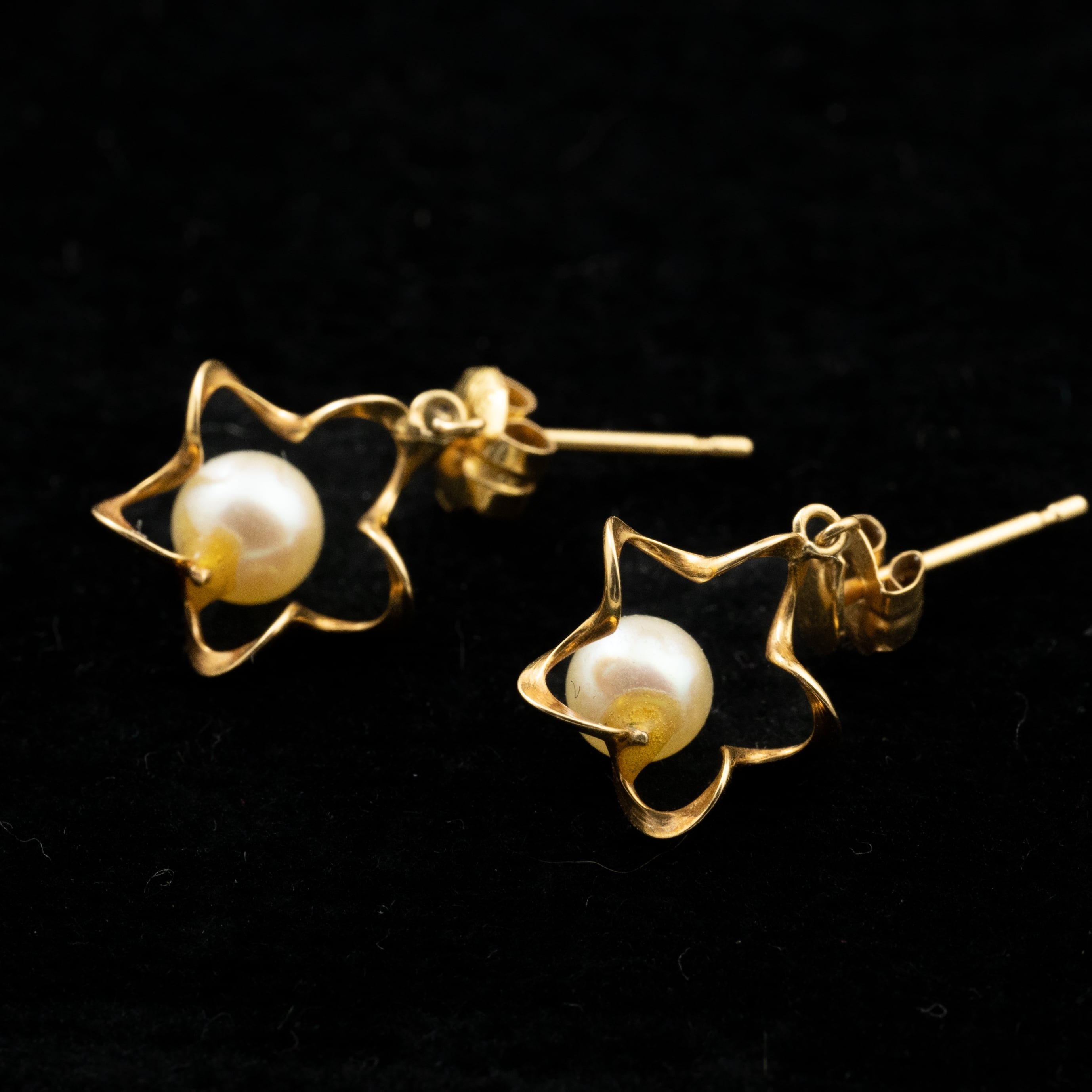 K18 パールピアス 星形でレトロなデザインが可愛いアイテム☆美しい真珠は4.3mm MOE00069