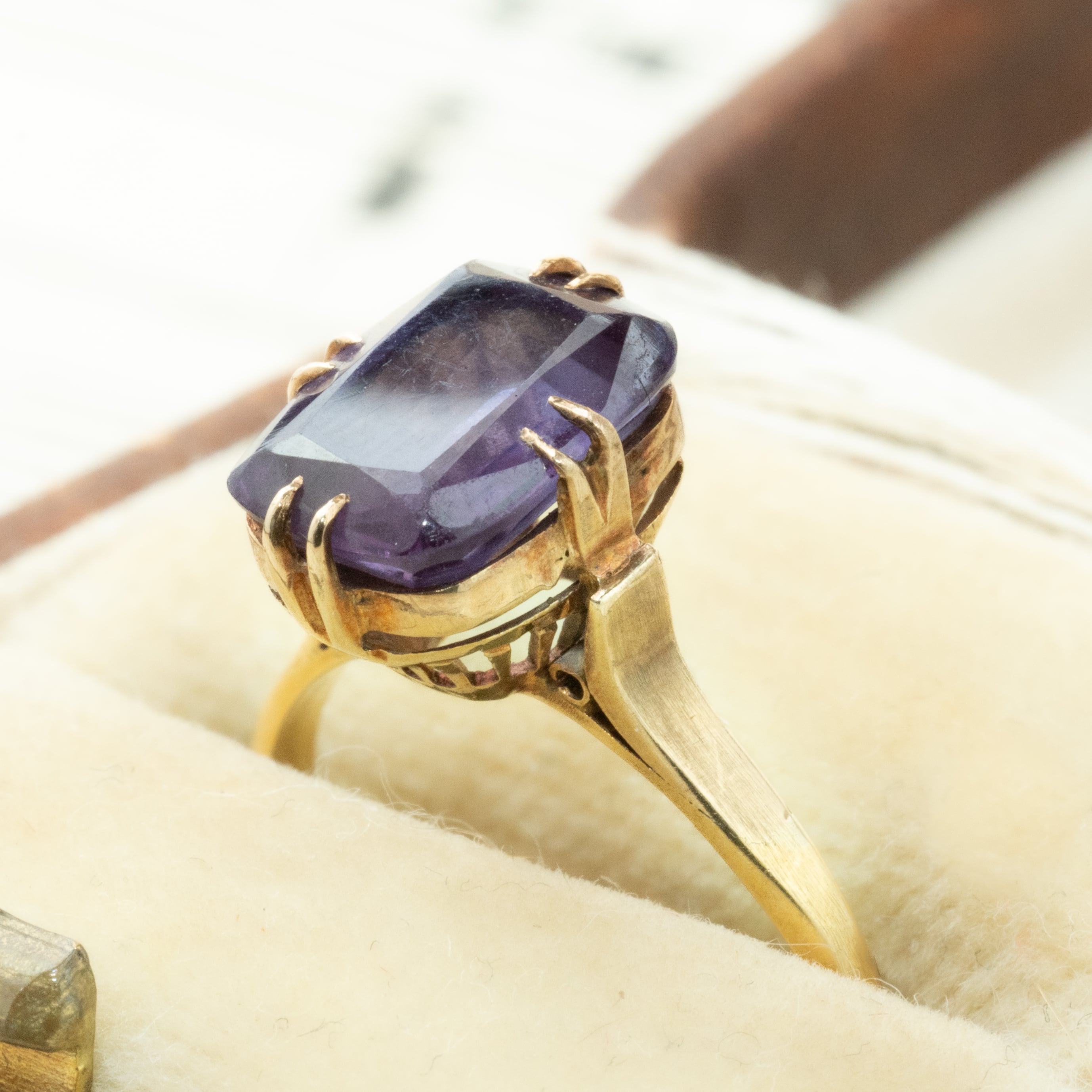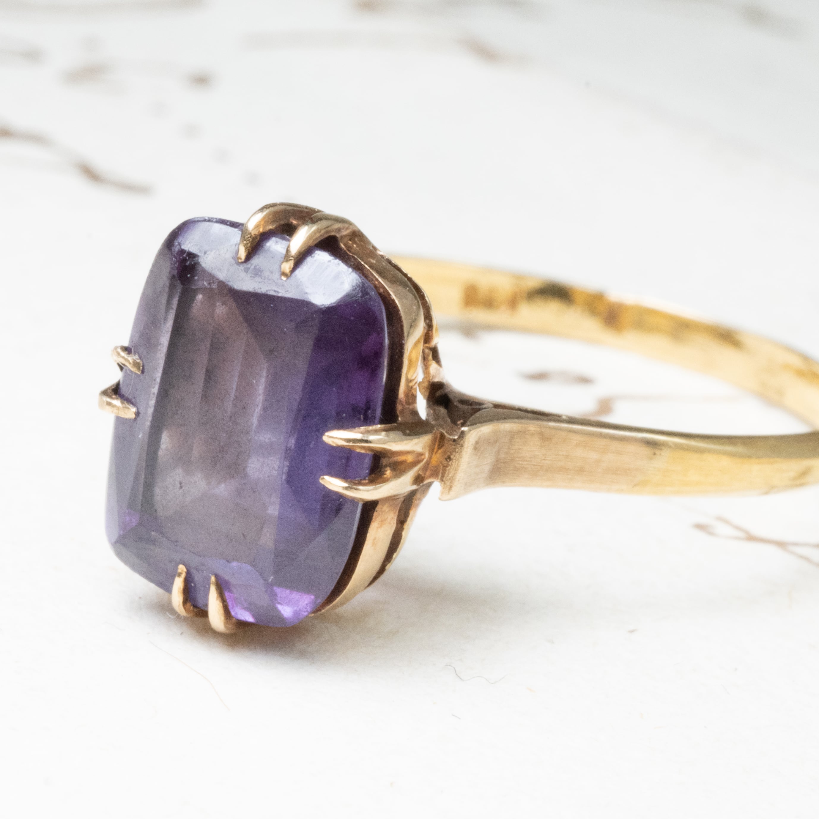 【日本の作品】 K18 昭和レトロ 紫石 リング ~咲き誇る高貴な花の美しさを指先に~ OKR00213