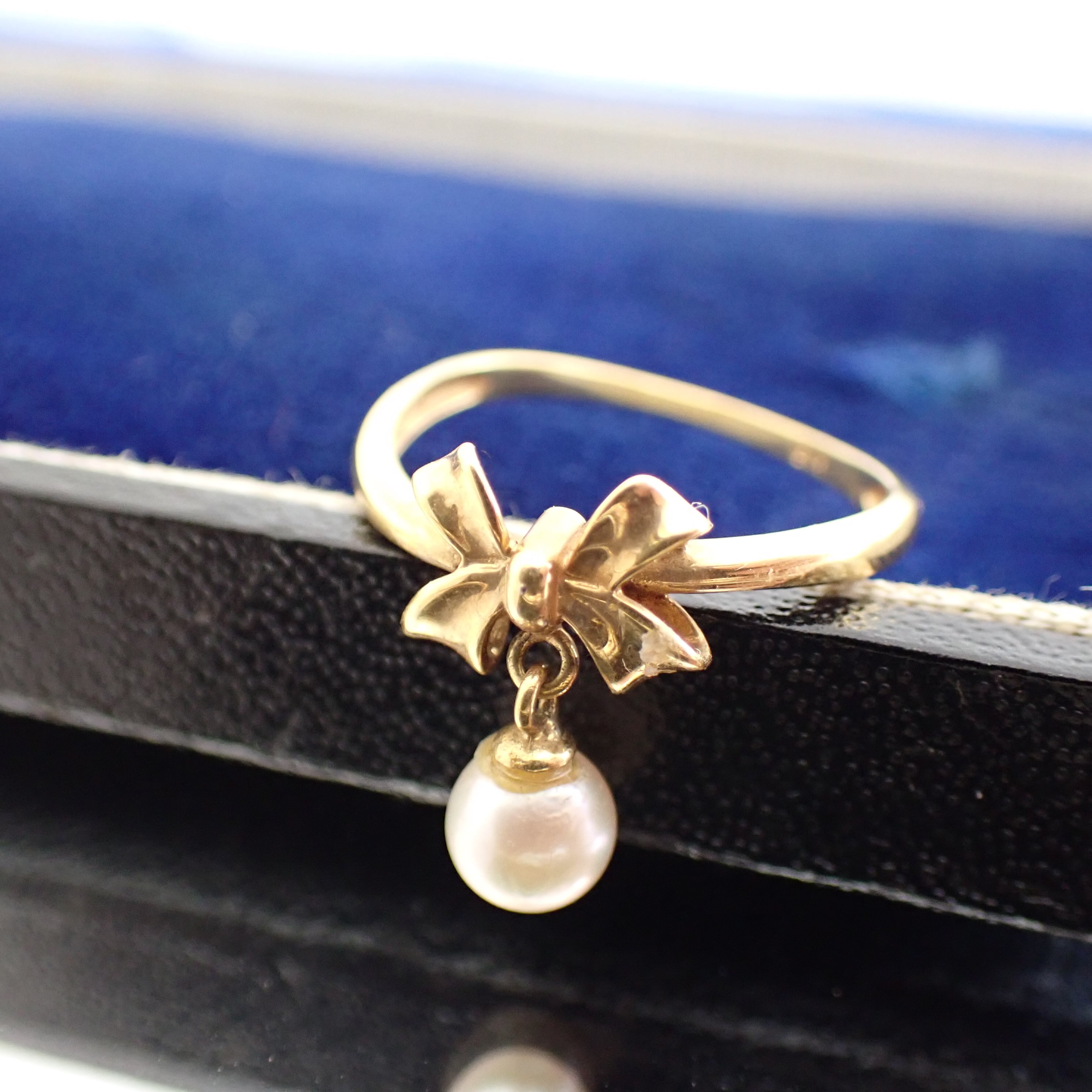 【日本の作品】アコヤパール 真珠 5.2mm K18 リボンモチーフ リング 指輪 ~ユラユラ揺れるパール~ MOR00666