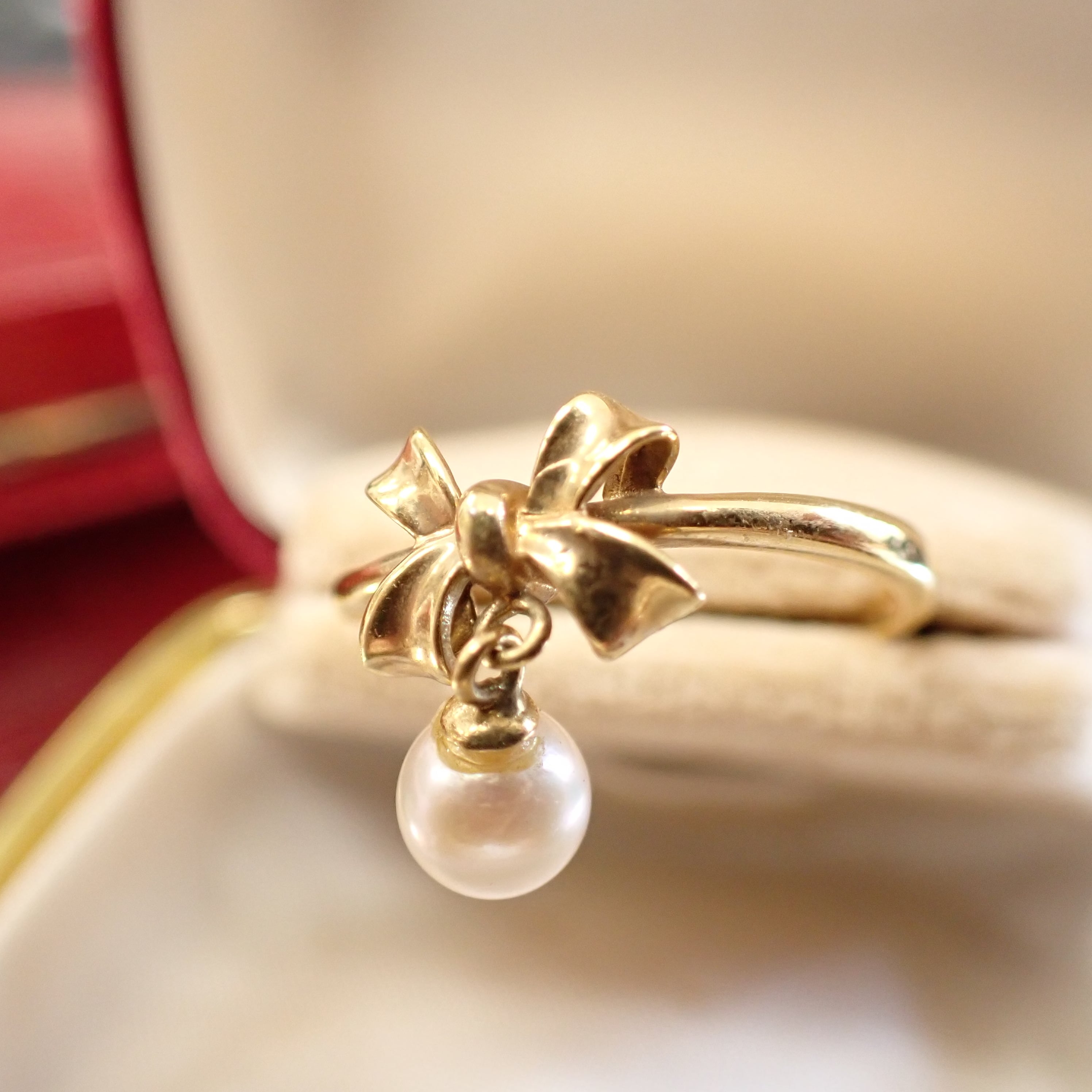 キュッと上品に結ばれたリボンにはユラユラと揺れる1珠のアコヤパールが付いていて、なんとも可愛いデザイン♪