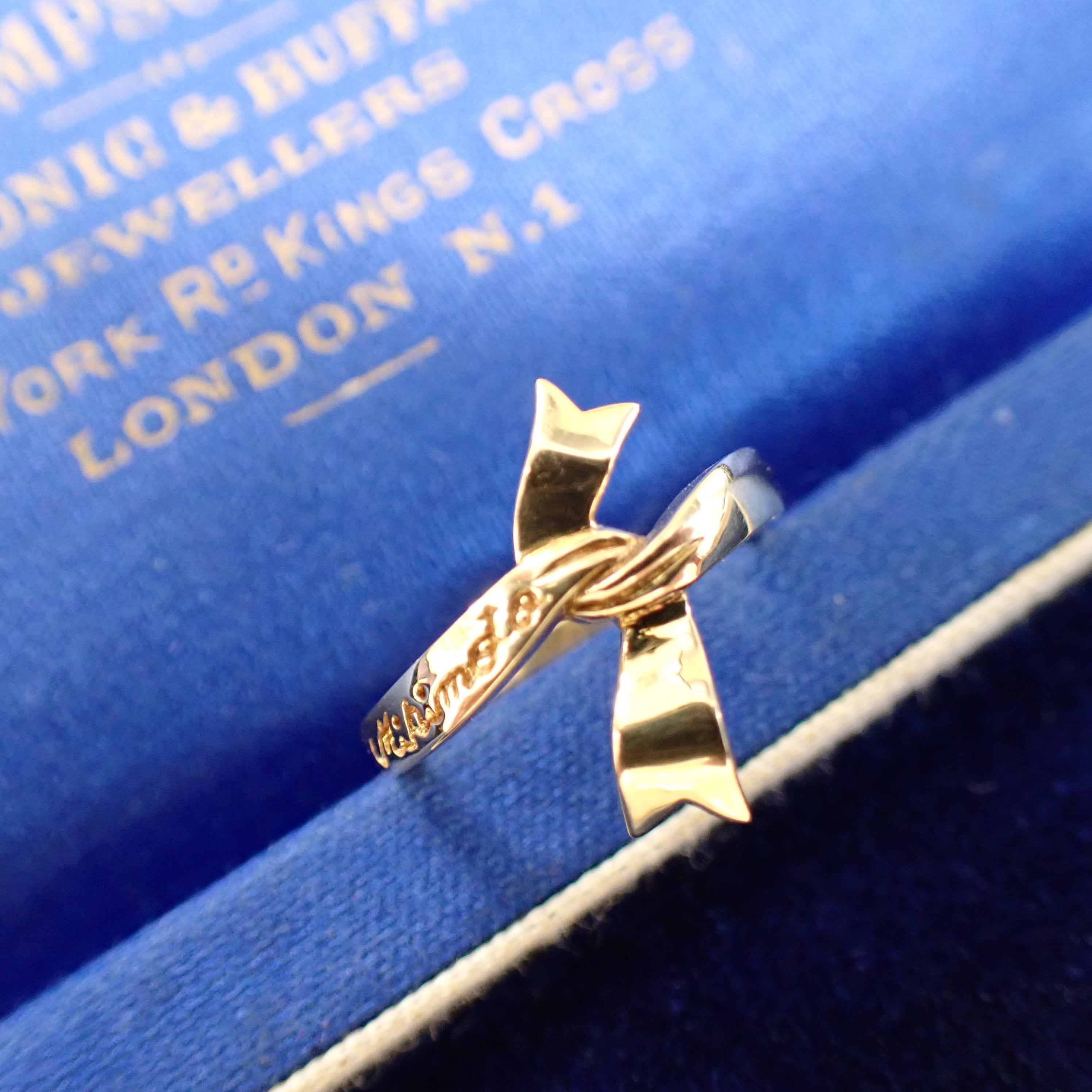 結び目のそばにはブランド名が刻印されており、ディテールにもこだわりを感じられる特別な一点。普段使いにはもちろん、大切な日のギフトにもぴったりです。