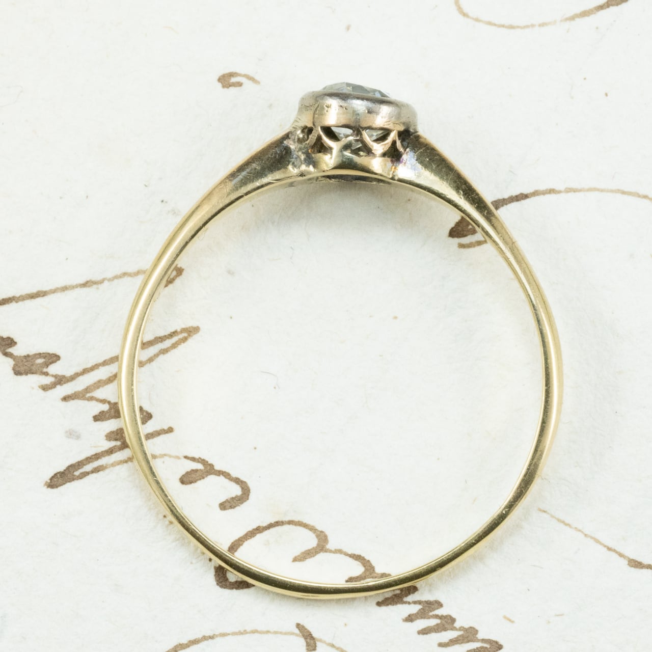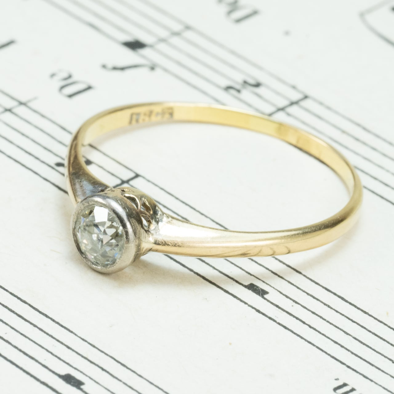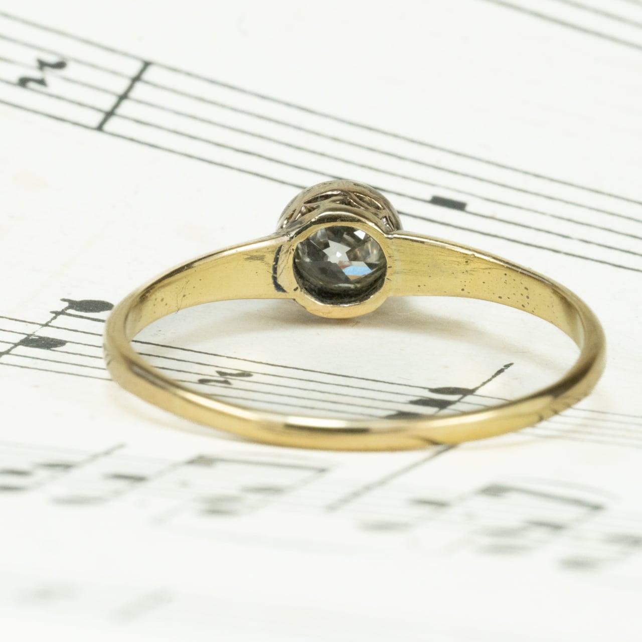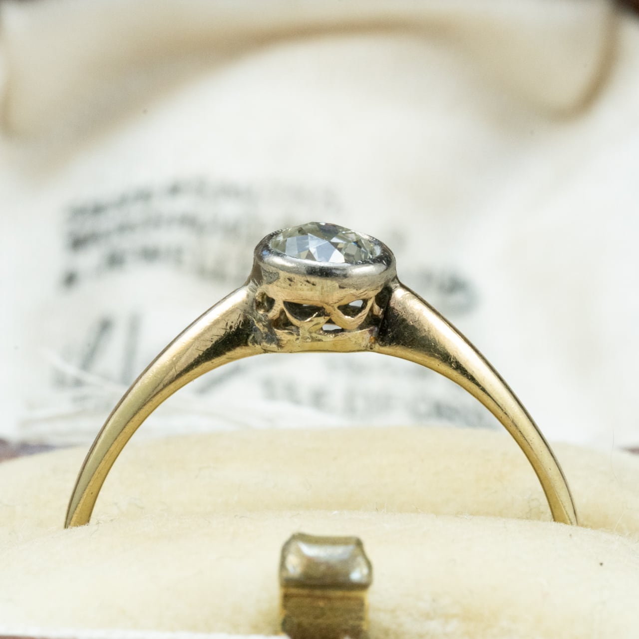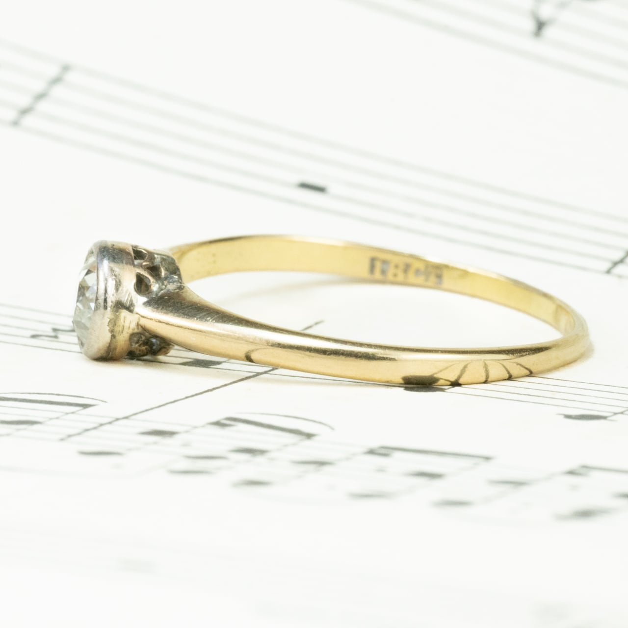 K18 イギリスアンティークリング~澄んだ透明感と虹彩が踊るオールドヨーロピアンカットダイヤモンド~ソリテールリングDR00737