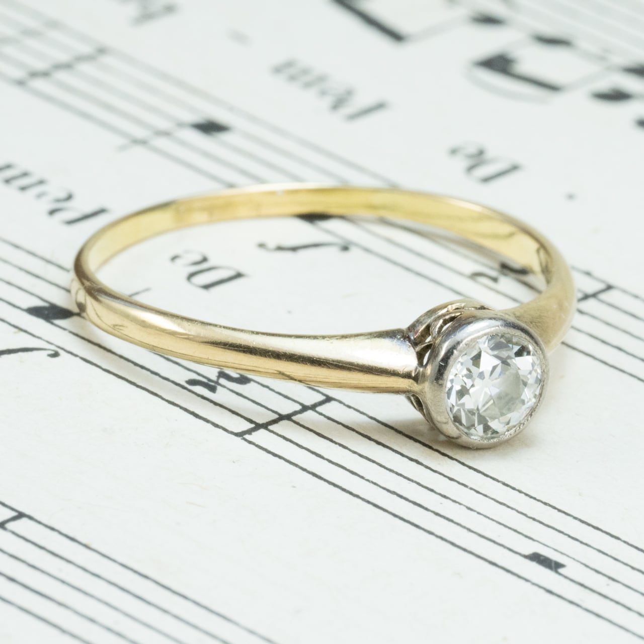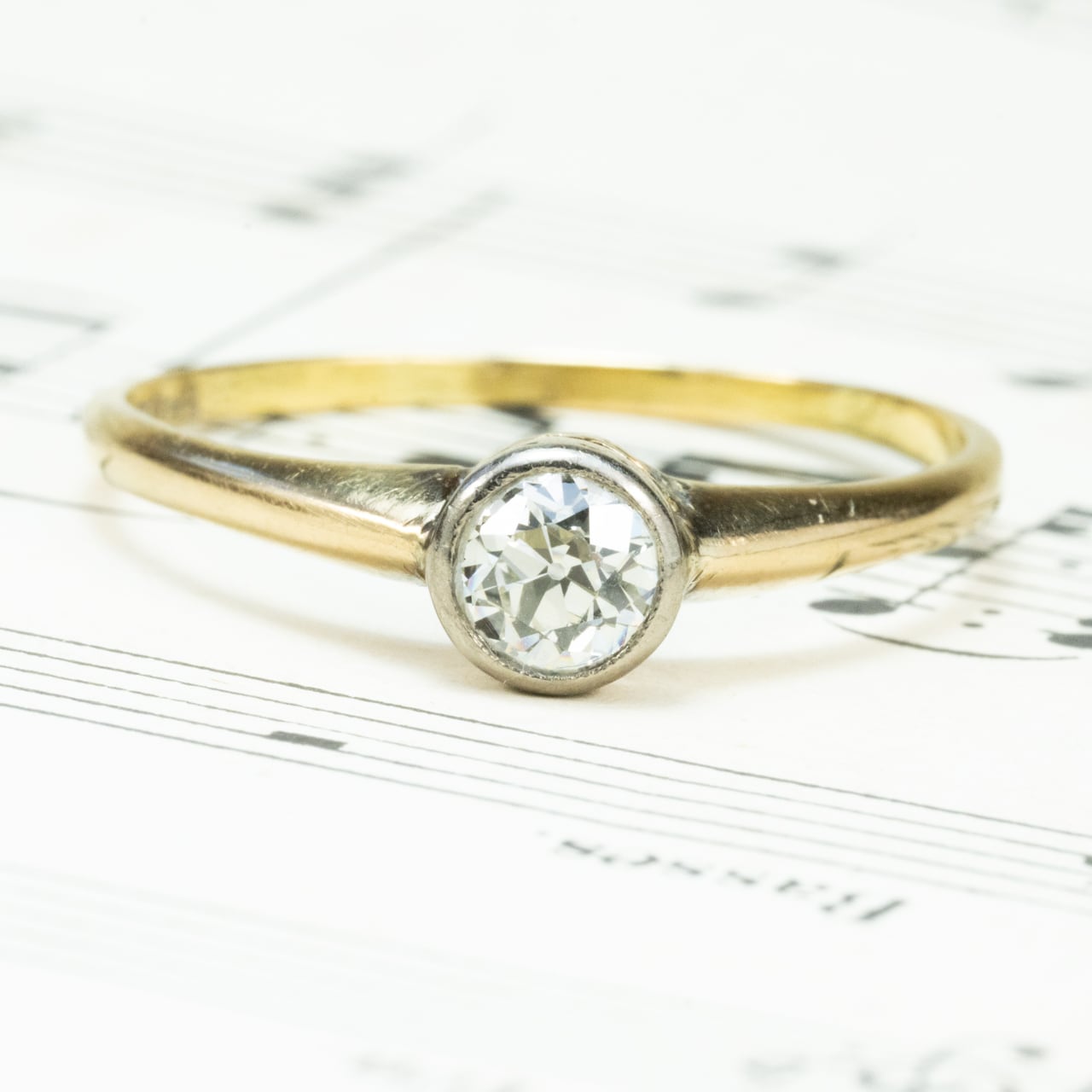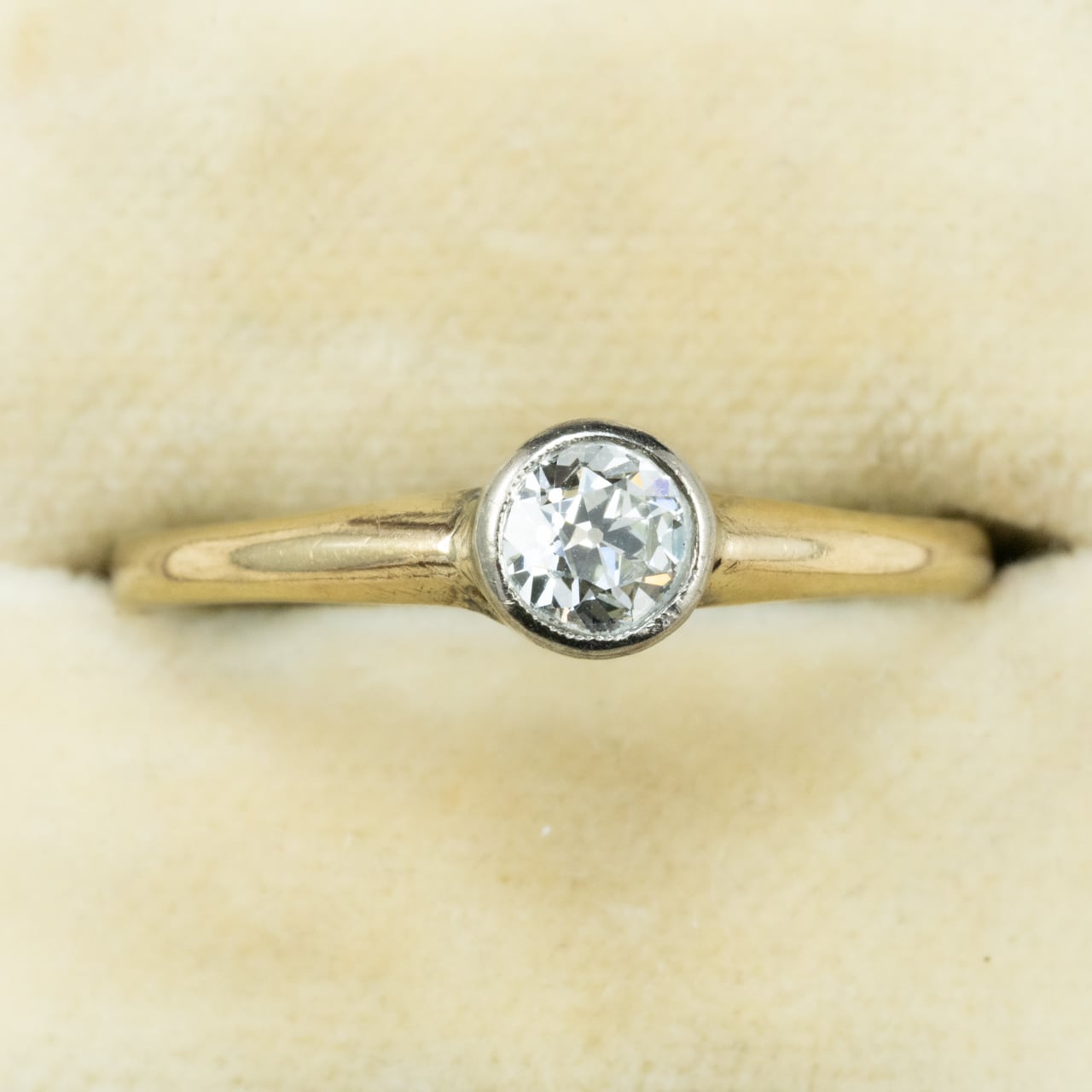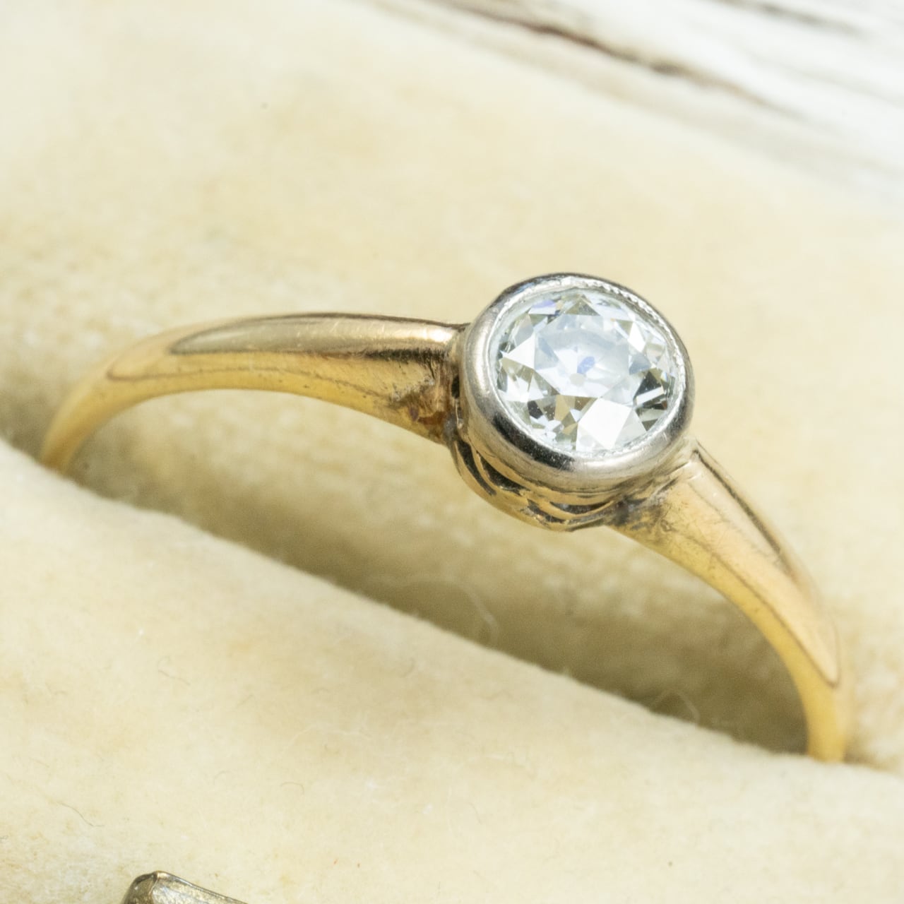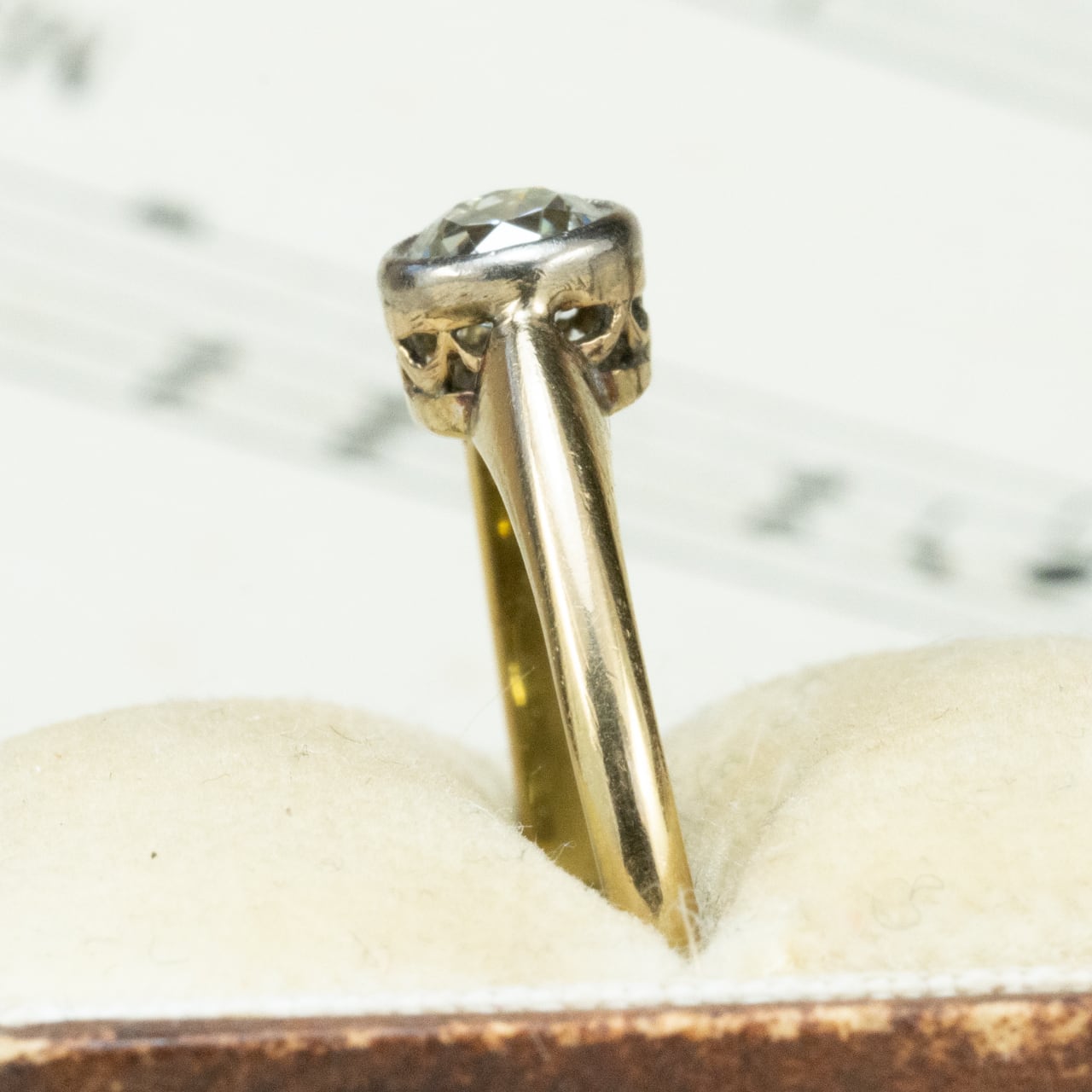 K18 イギリスアンティークリング~澄んだ透明感と虹彩が踊るオールドヨーロピアンカットダイヤモンド~ソリテールリングDR00737