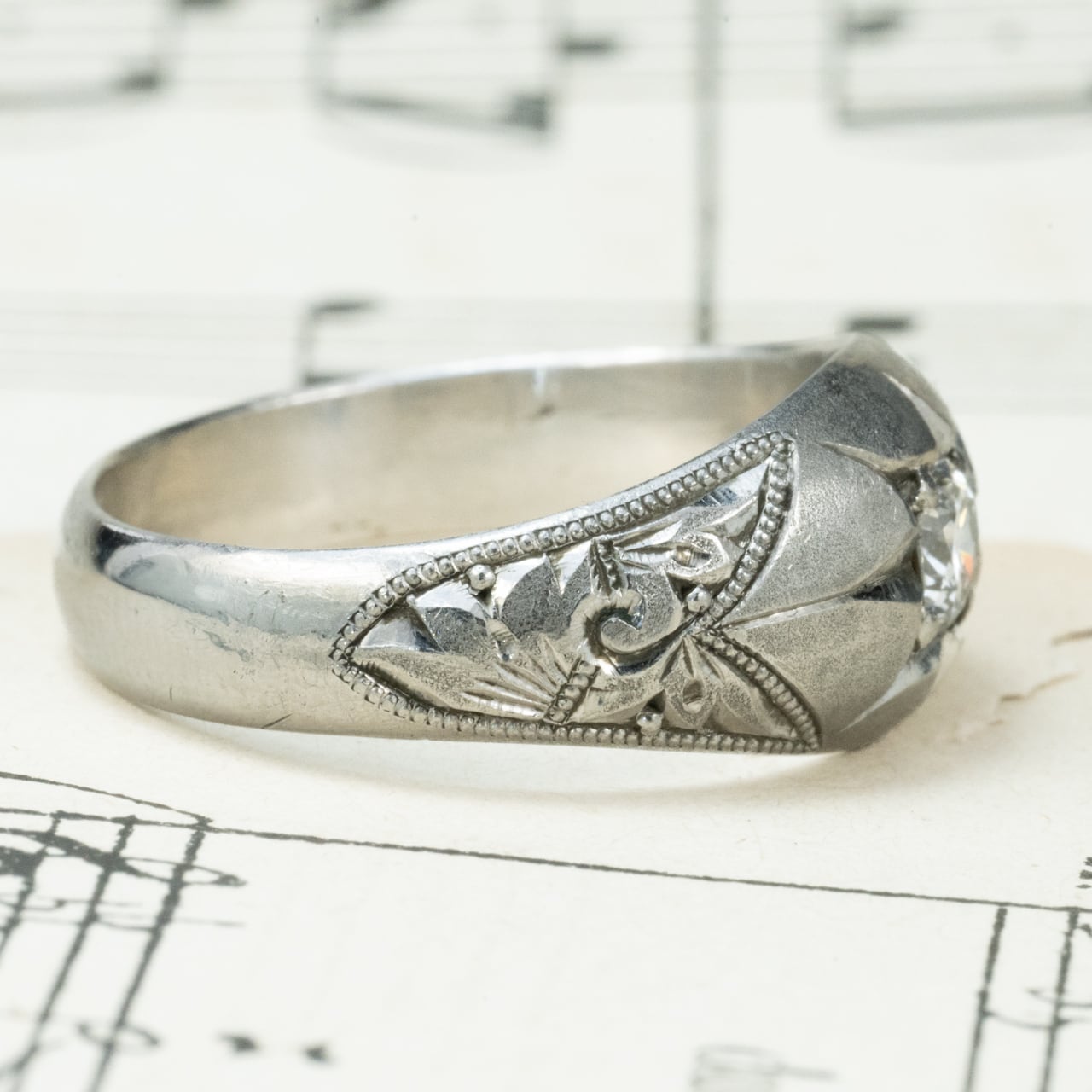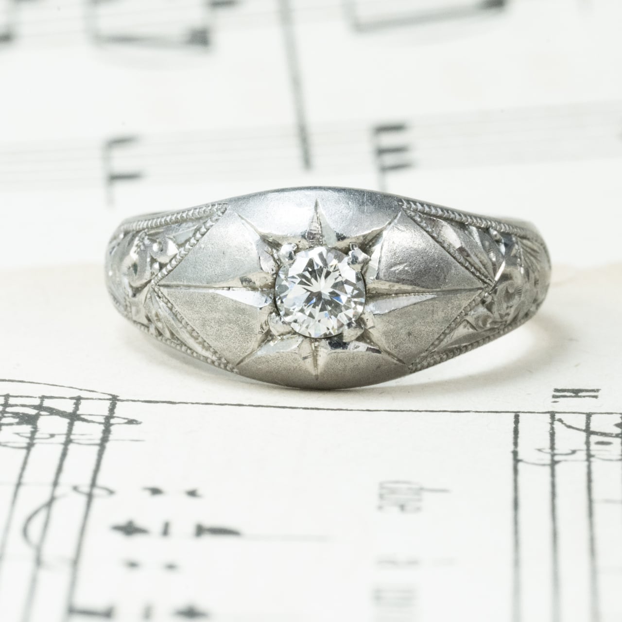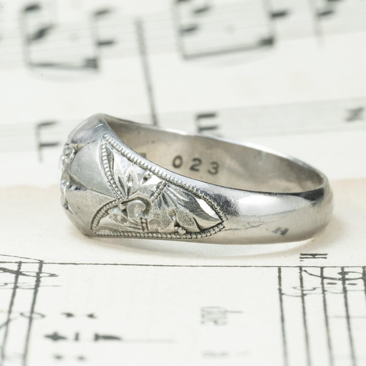 【日本の作品】昭和レトロ 後光留め 和彫り 彫刻 デザイン ヴィンテージ リング Pt900 ダイヤモンド CHR01998