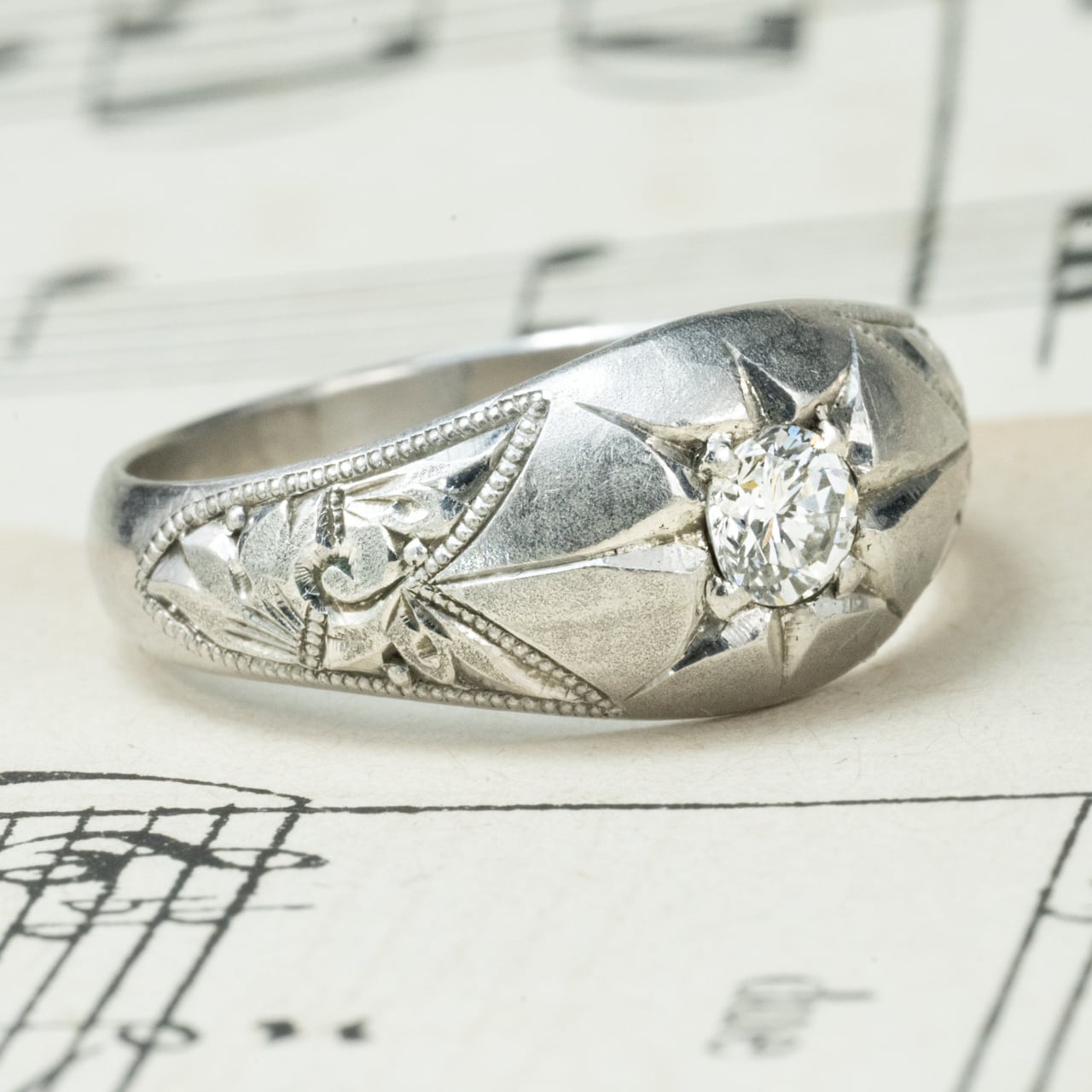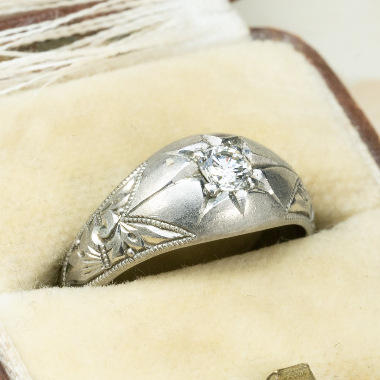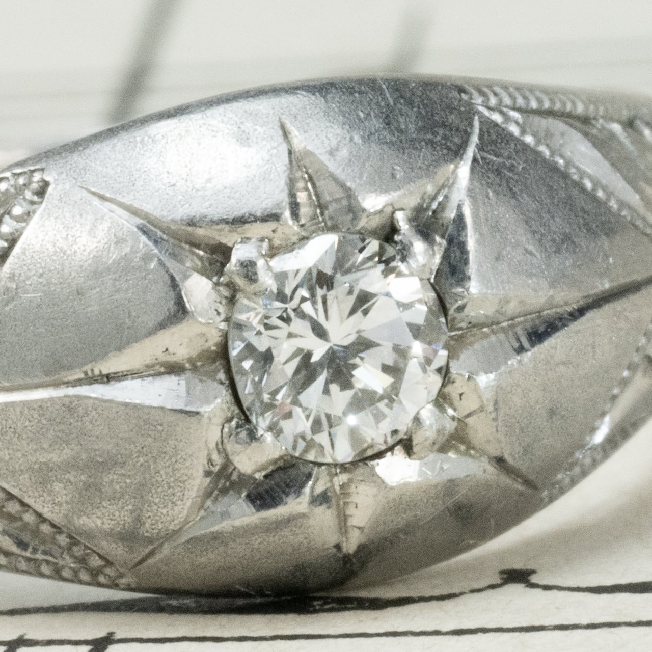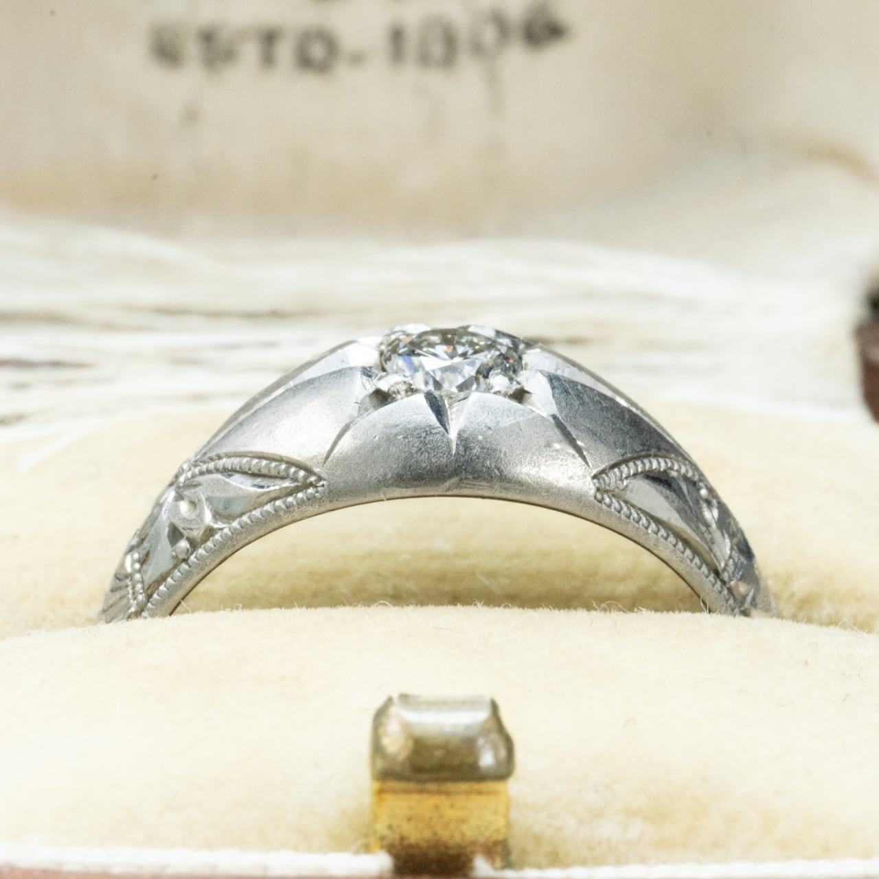 【日本の作品】昭和レトロ 後光留め 和彫り 彫刻 デザイン ヴィンテージ リング Pt900 ダイヤモンド CHR01998