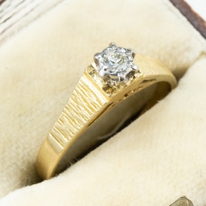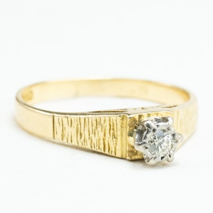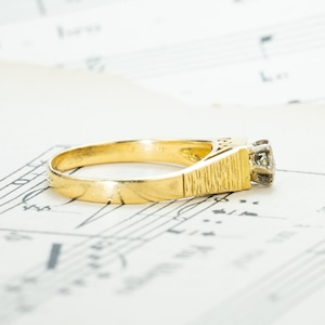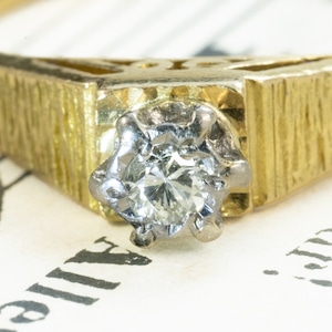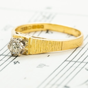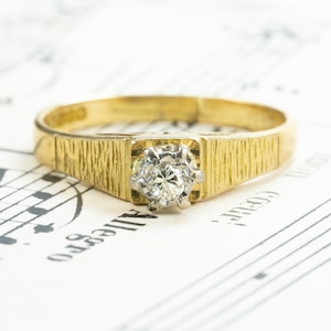 イギリス ヴィンテージジュエリー K18 ダイヤモンド 1pc テクスチャー デザイン ゴールド リング バーミンガム DR00714