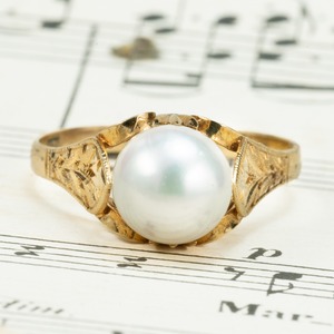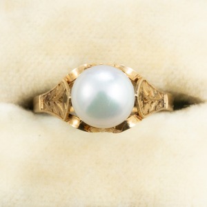 【日本の作品】昭和レトロ 彫刻 手彫り 和彫り デザイン ヴィンテージ リング K18 パール DR00717