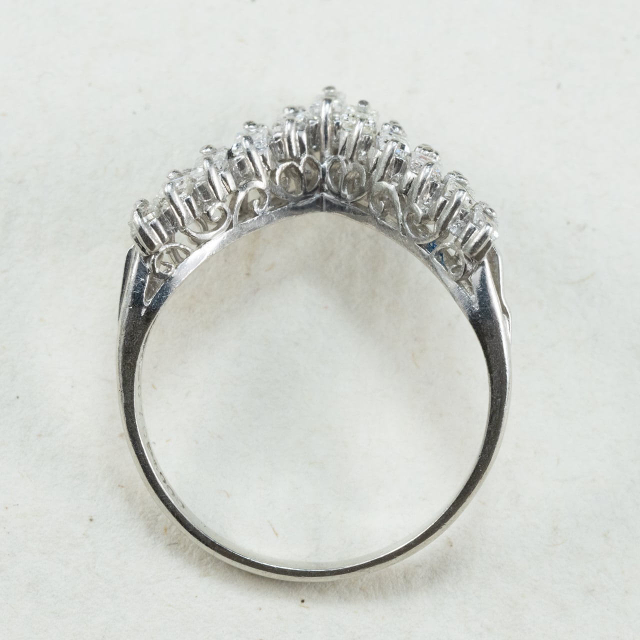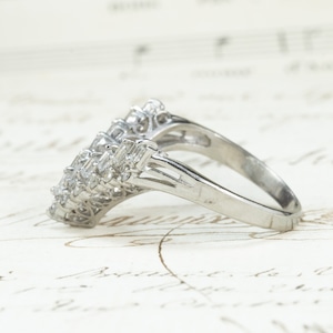 【日本の作品】ヴィンテージ 昭和ジュエリー Pt900 ダイヤモンド 0.7ct V字シェイプ 透かし レトロ デザイン シルバーカラー リング OKR00205