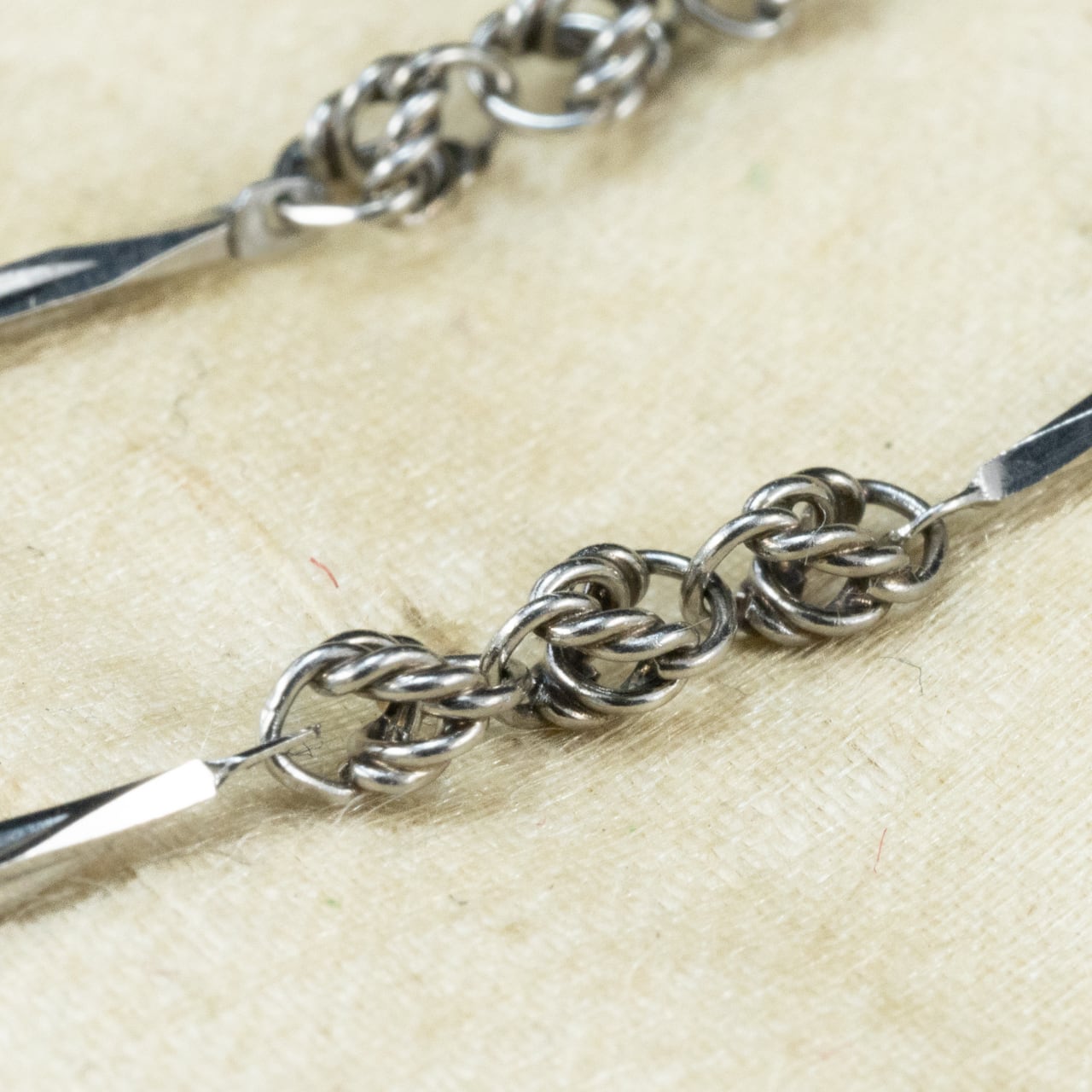 【日本の作品】昭和レトロ 切子 さざなみ デザイン ヴィンテージ ロング チェーン ネックレス Pt850 40.5cm MON00291