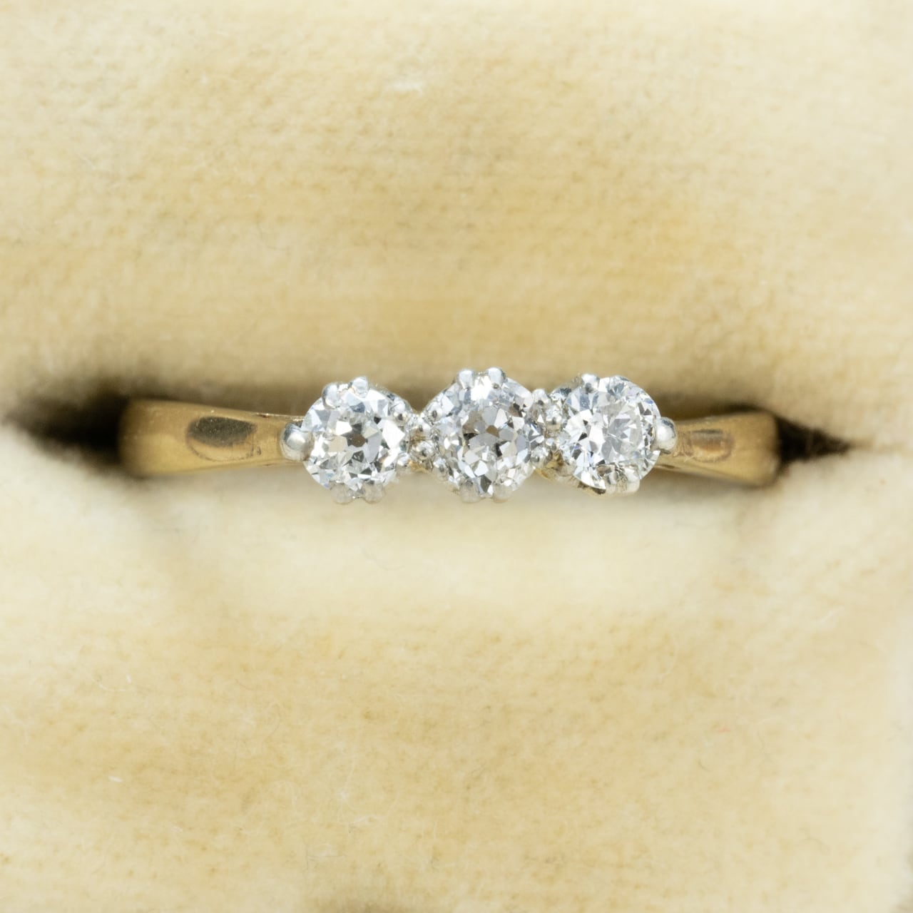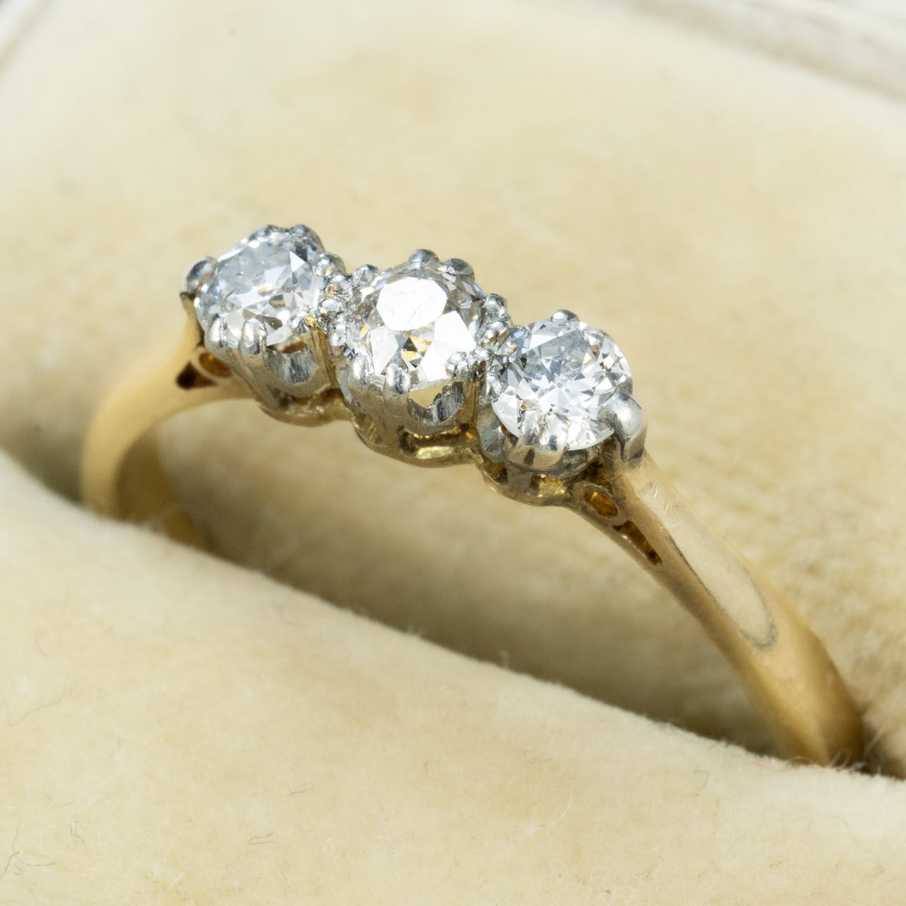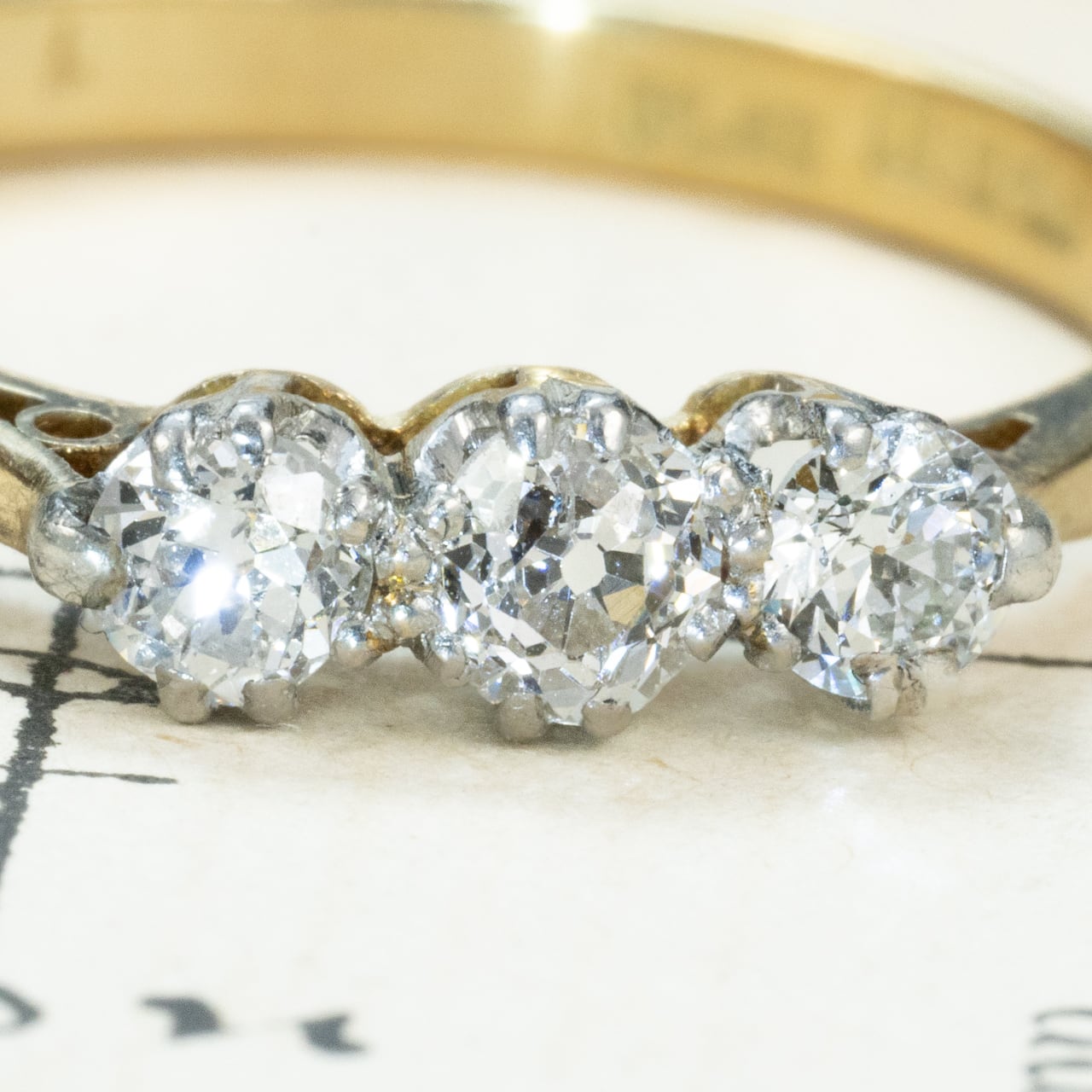 3石のオールドカットダイヤがセットされたリング。