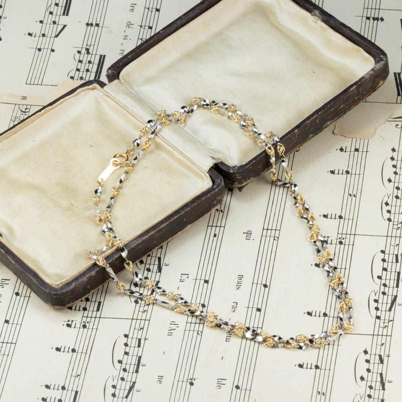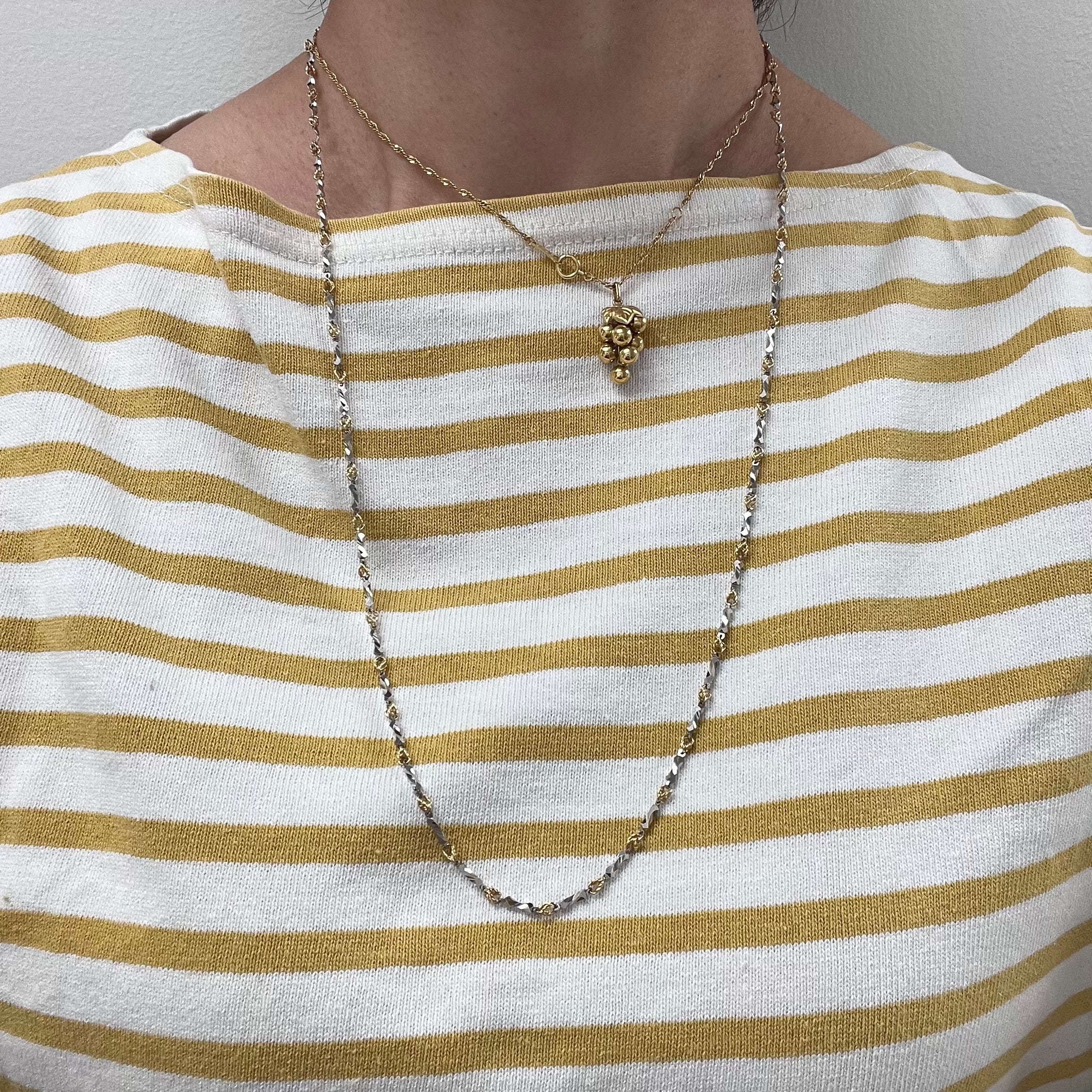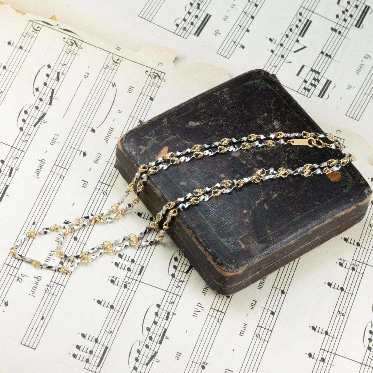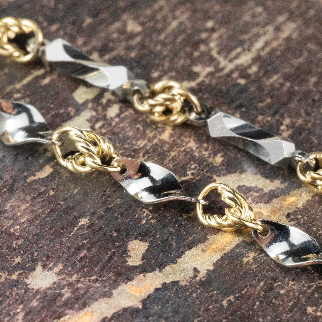 【日本の作品】昭和レトロ デザイン K18 Pt850 コンビカラー デザイン カット ロング ネックレス 68cm ~しっかりとしたお仕立てとシルバー×ゴールドカラーの華やかな輝き~ MON00324