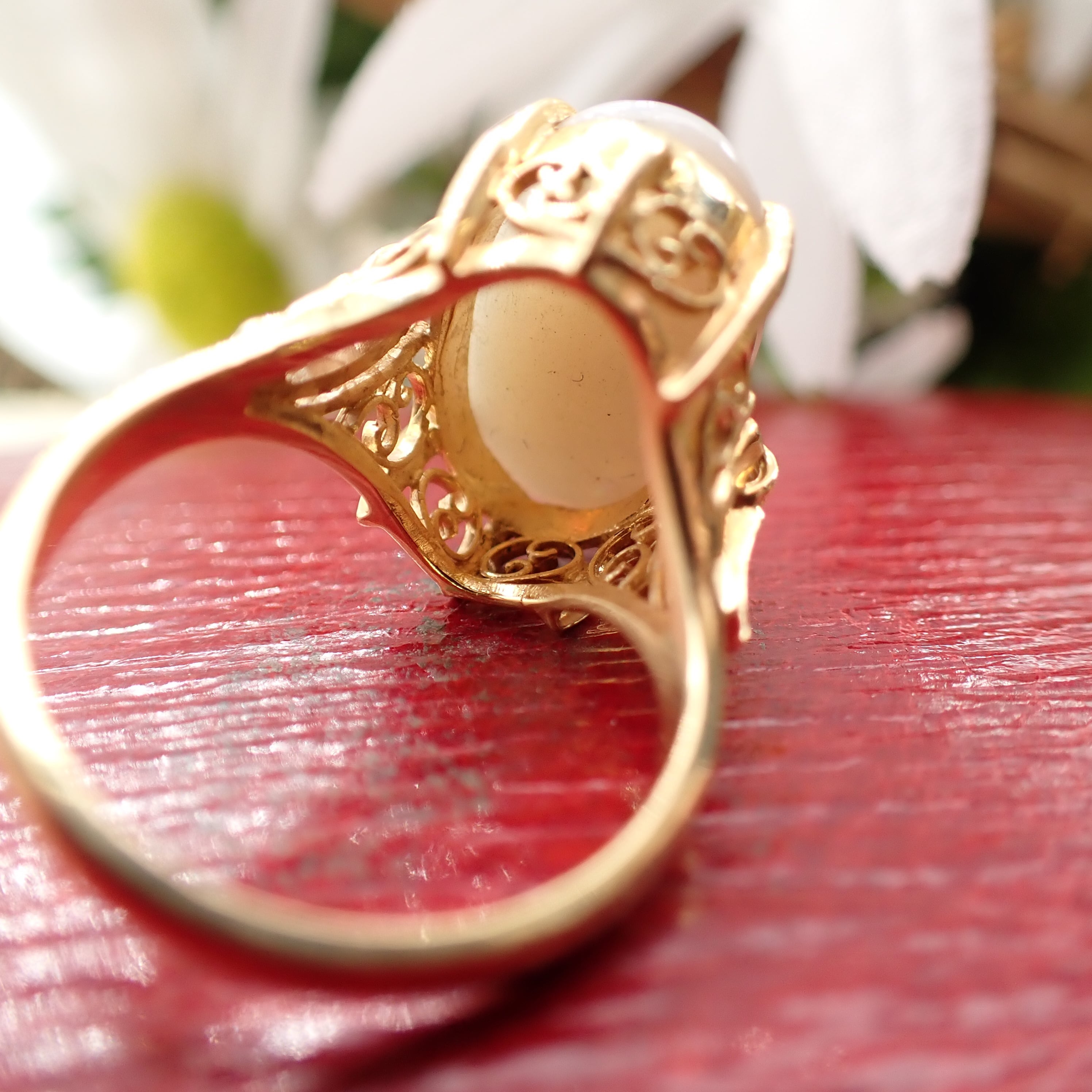 【日本の作品】昭和レトロ 透かし デザイン リング K18 オパール ~遊色のかけらを集めて~ OKR00087