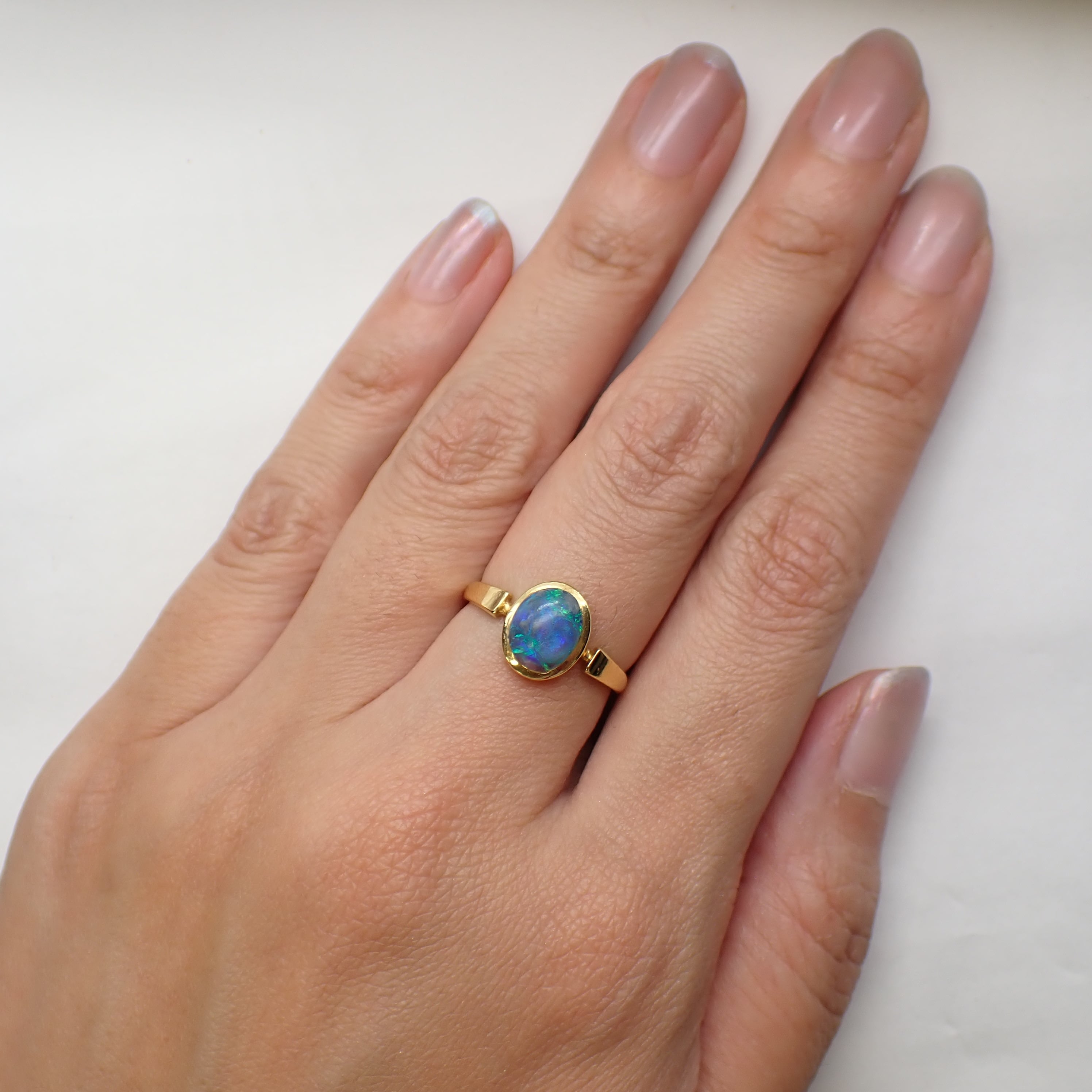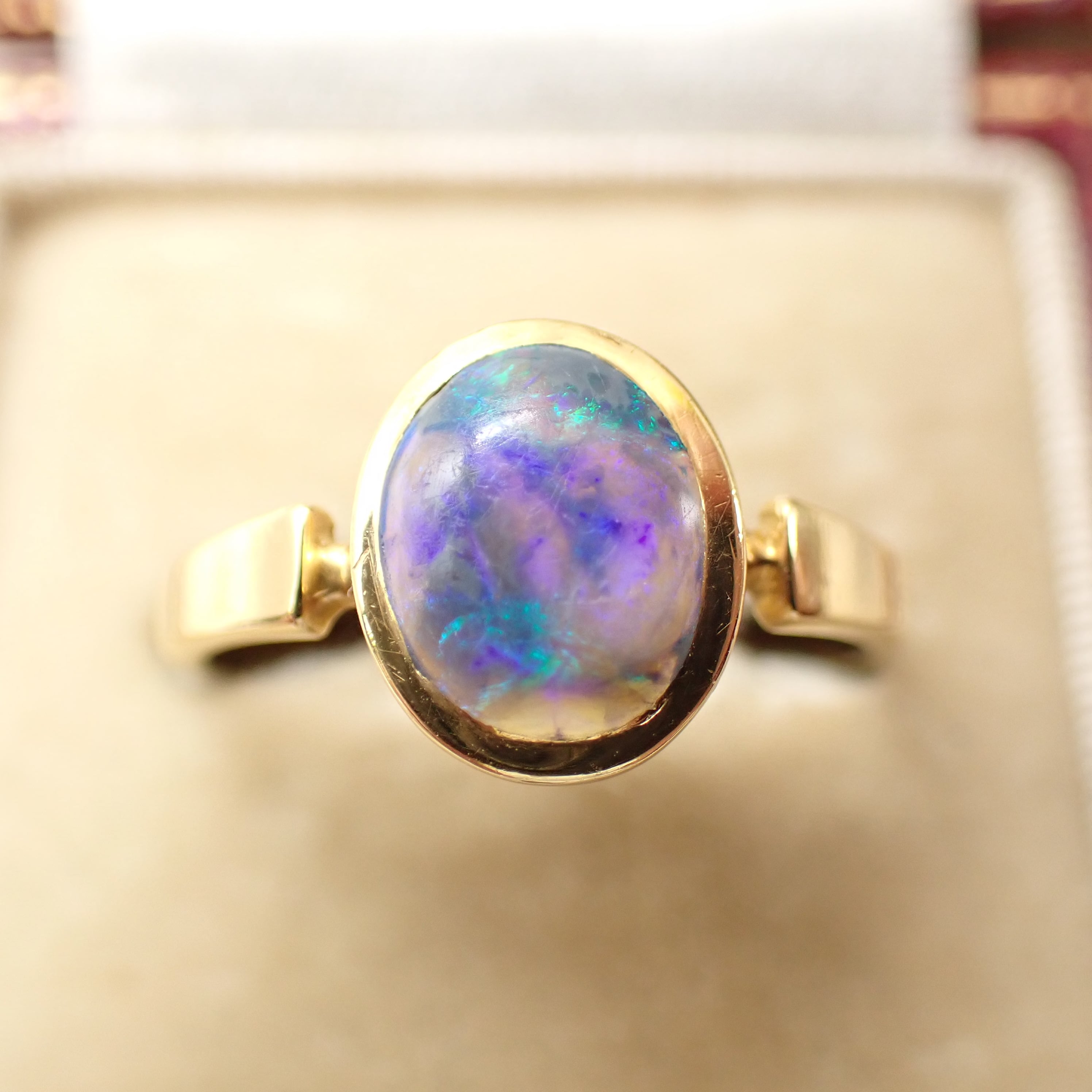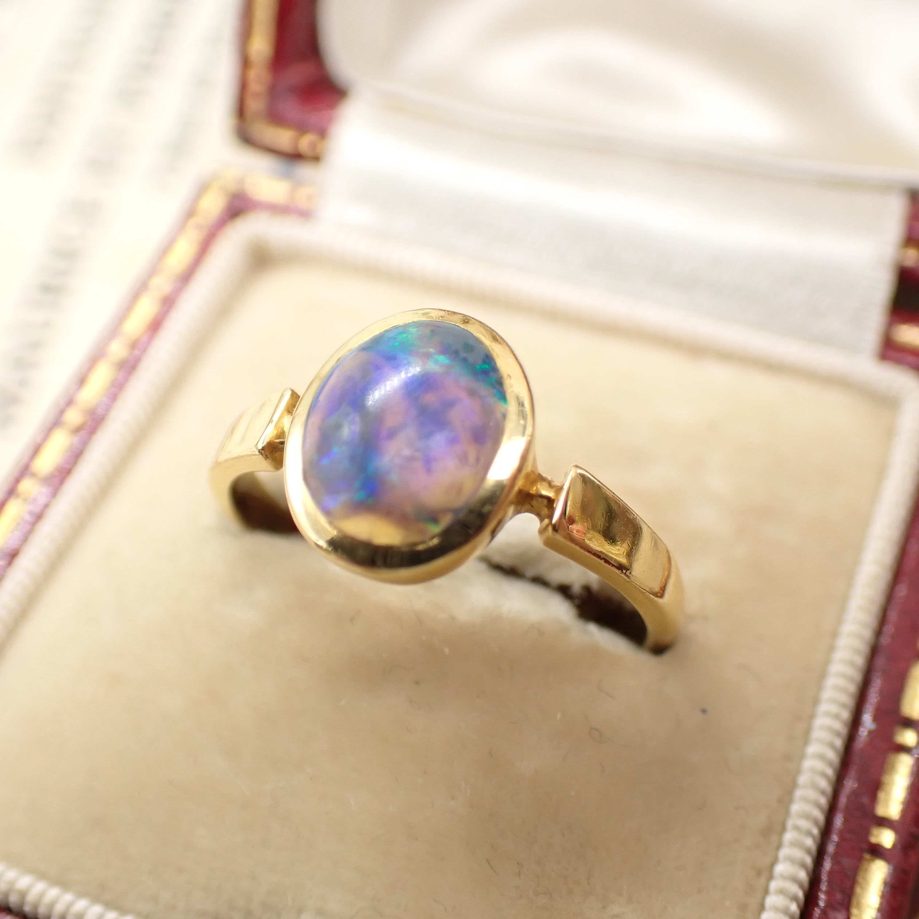 外国の作品 K18 ブラックオパール ヴィンテージ リング 指輪 ~晴れた日の夕暮れ時の夜空~ MOR00678