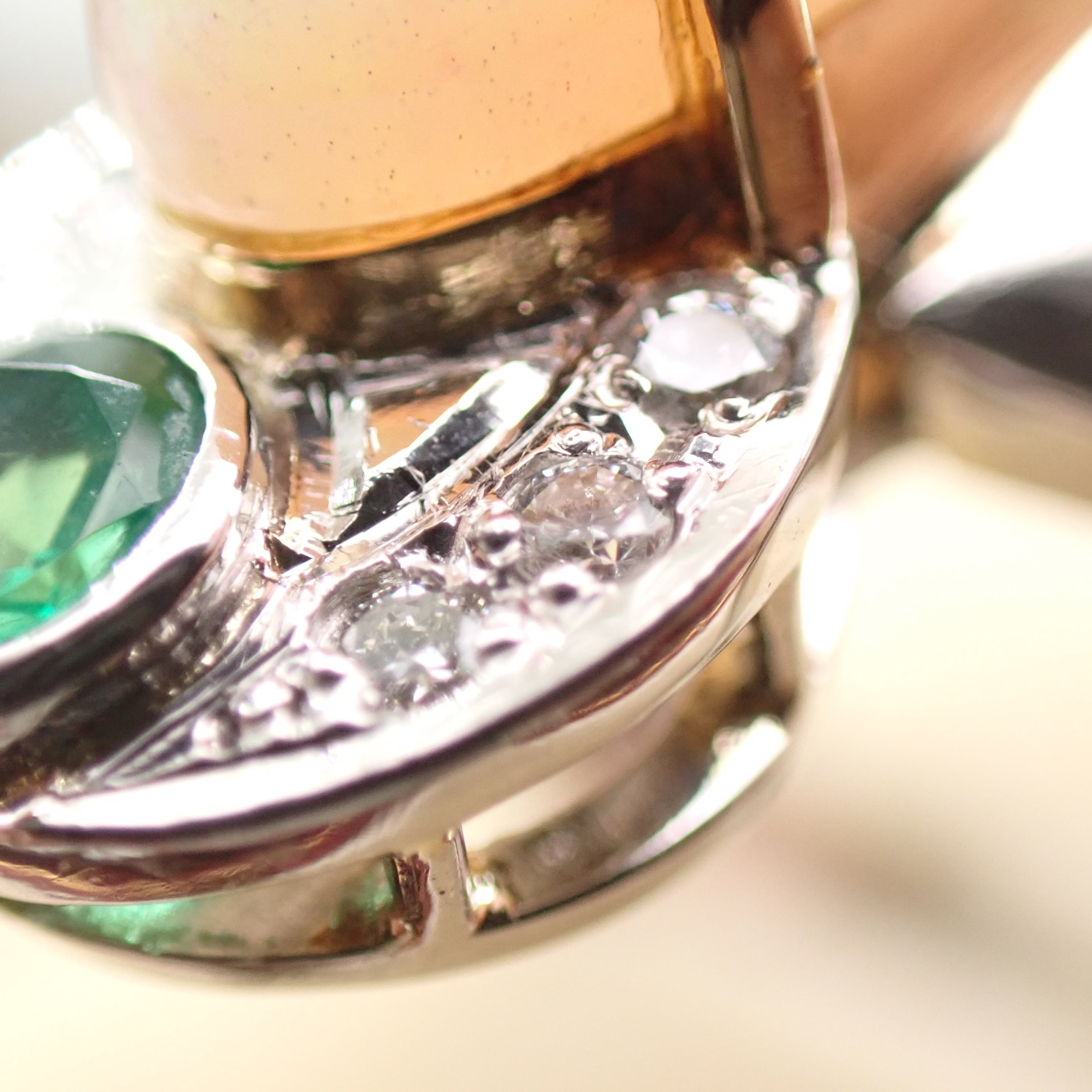 ※アンティークジュエリーやヴィンテージ・エステート作品には、貴金属部分と宝石部分にも、細かな擦れ、細かな傷、細かな汚れ、変色などがございますので、予めご了承ください。