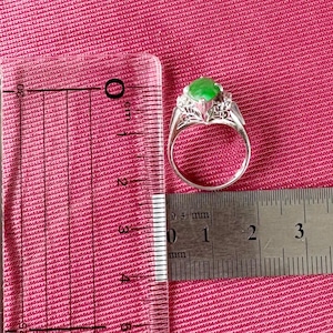【日本の作品】昭和レトロ デザイン ヴィンテージ リング Pm850 翡翠 ダイヤ MR00771