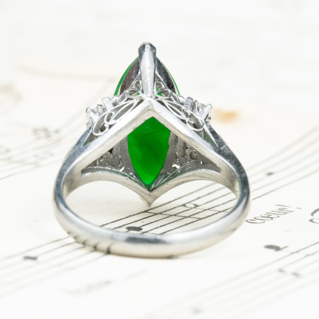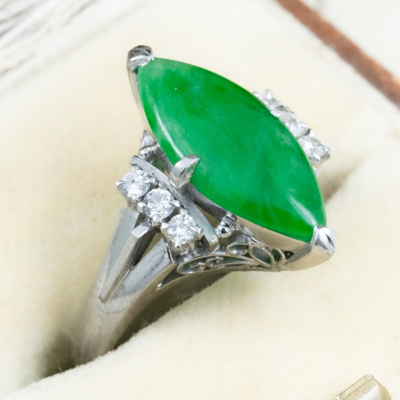 センターにはマーキス型の翡翠を配し、