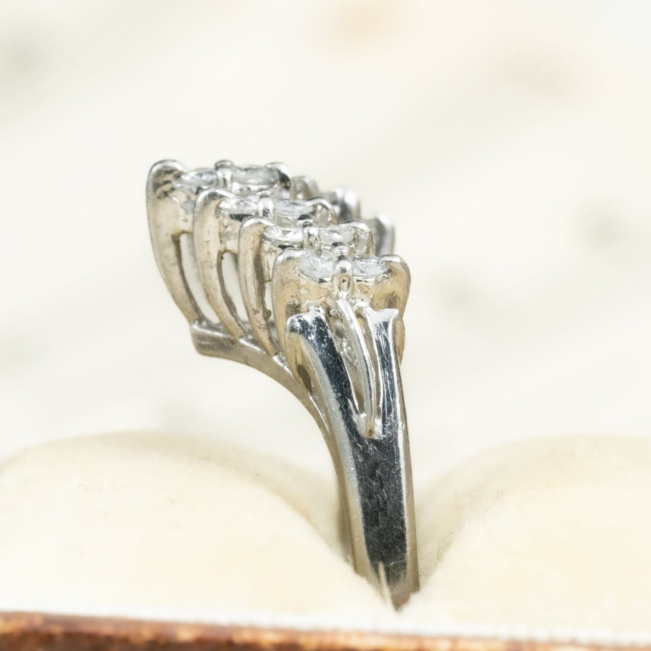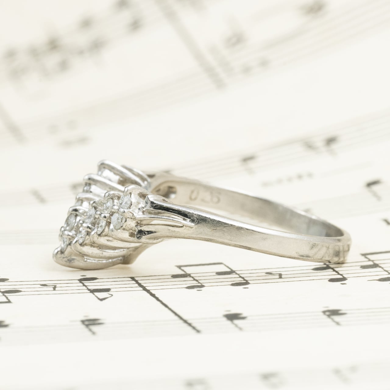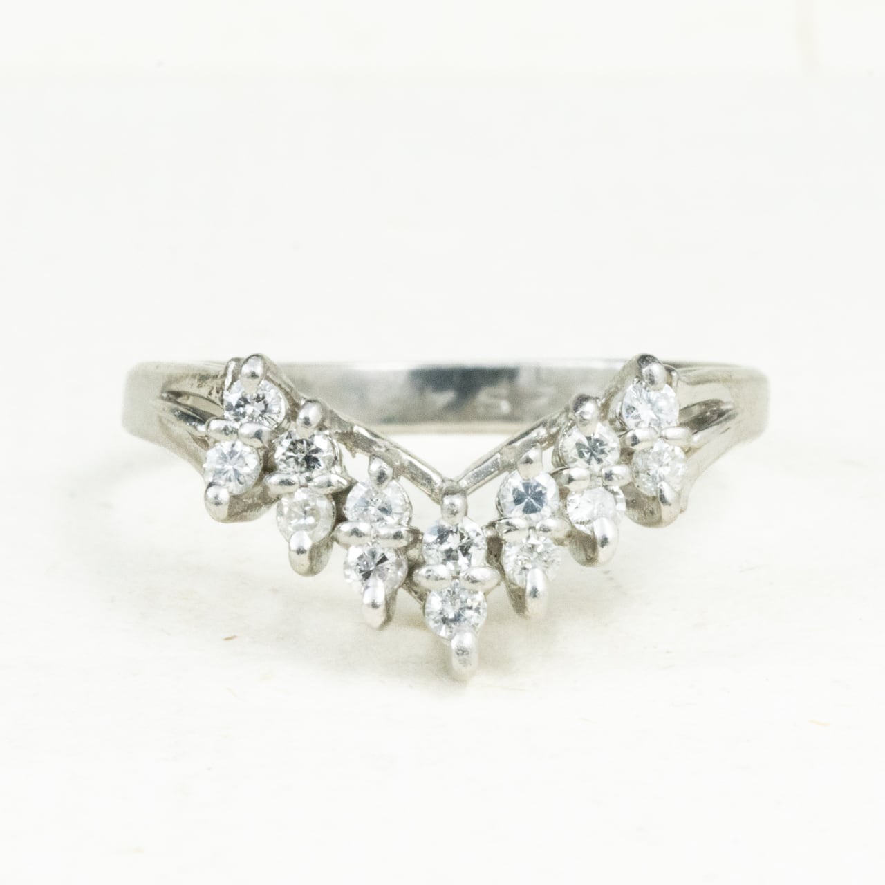 【日本の作品】昭和レトロ ヴィンテージジュエリー V字 デザイン リング 指輪 Pt900 ダイヤモンド 0.26ct OKR00206