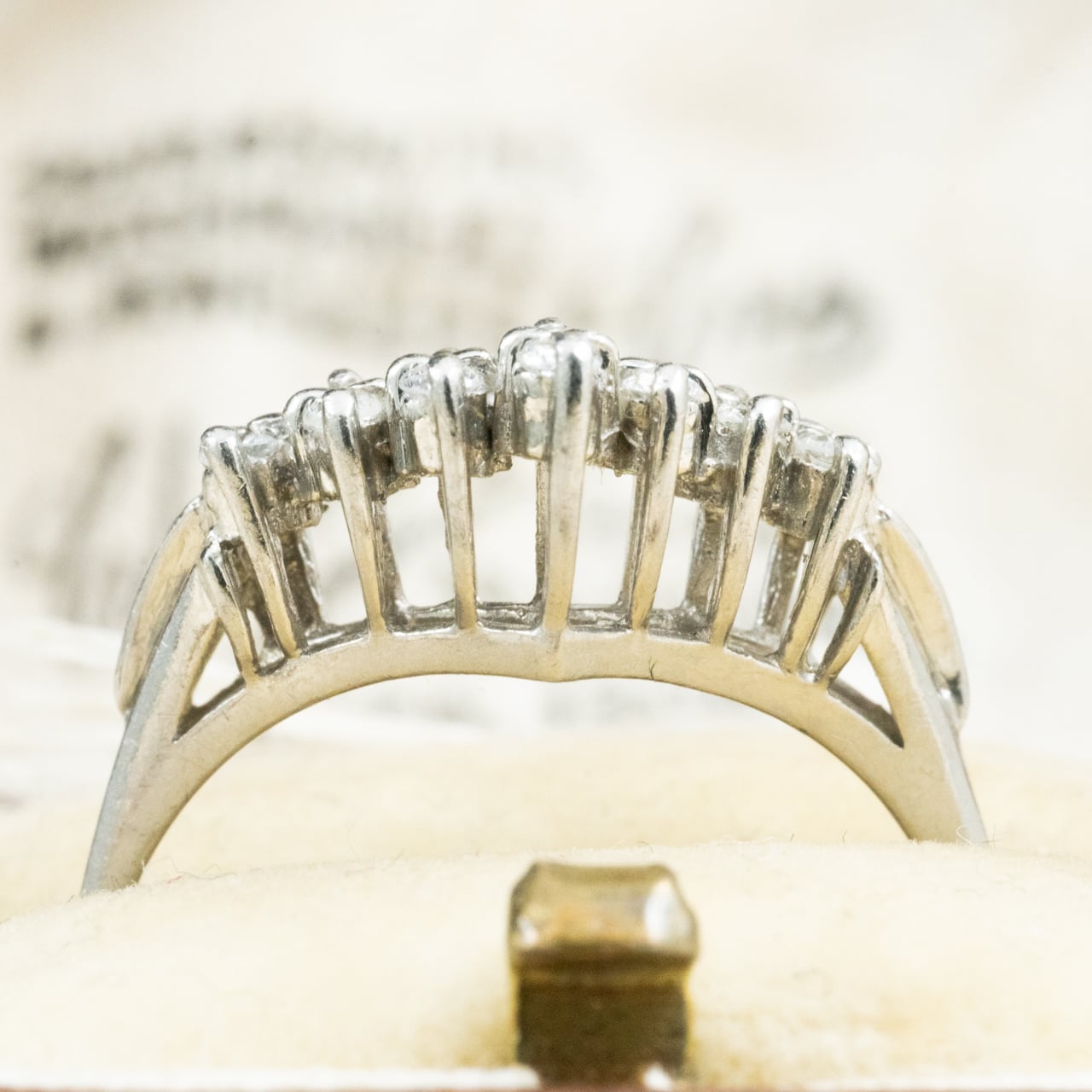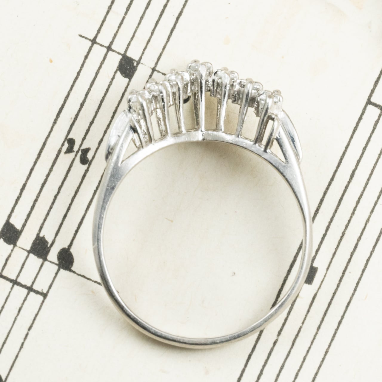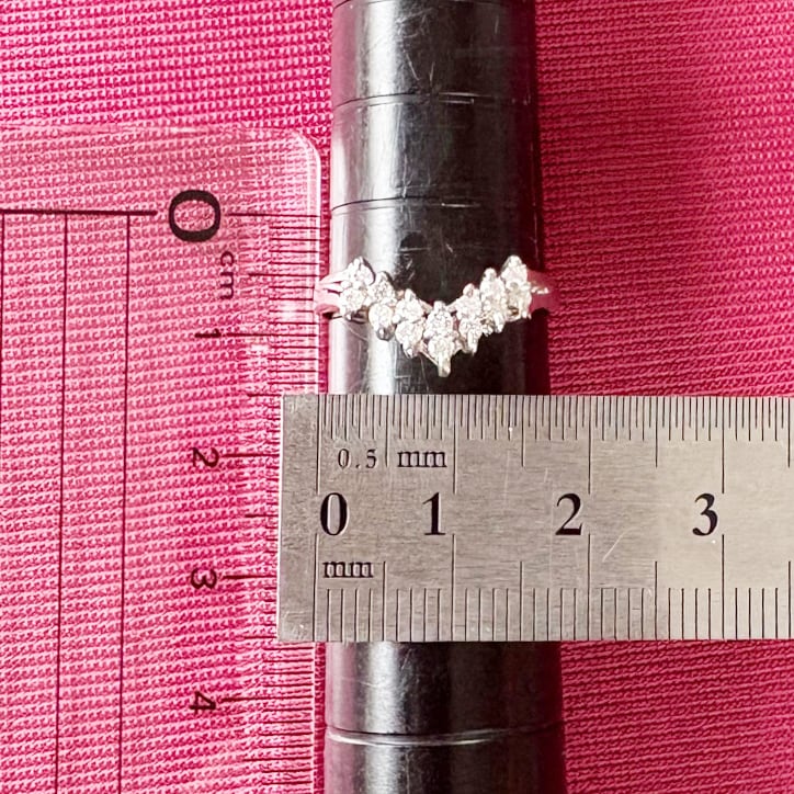 しっかりとしたフォルムながら、実際に指に通すと華やかさが際立ち、まるでティアラを纏っているかのようなゴージャスな存在感。