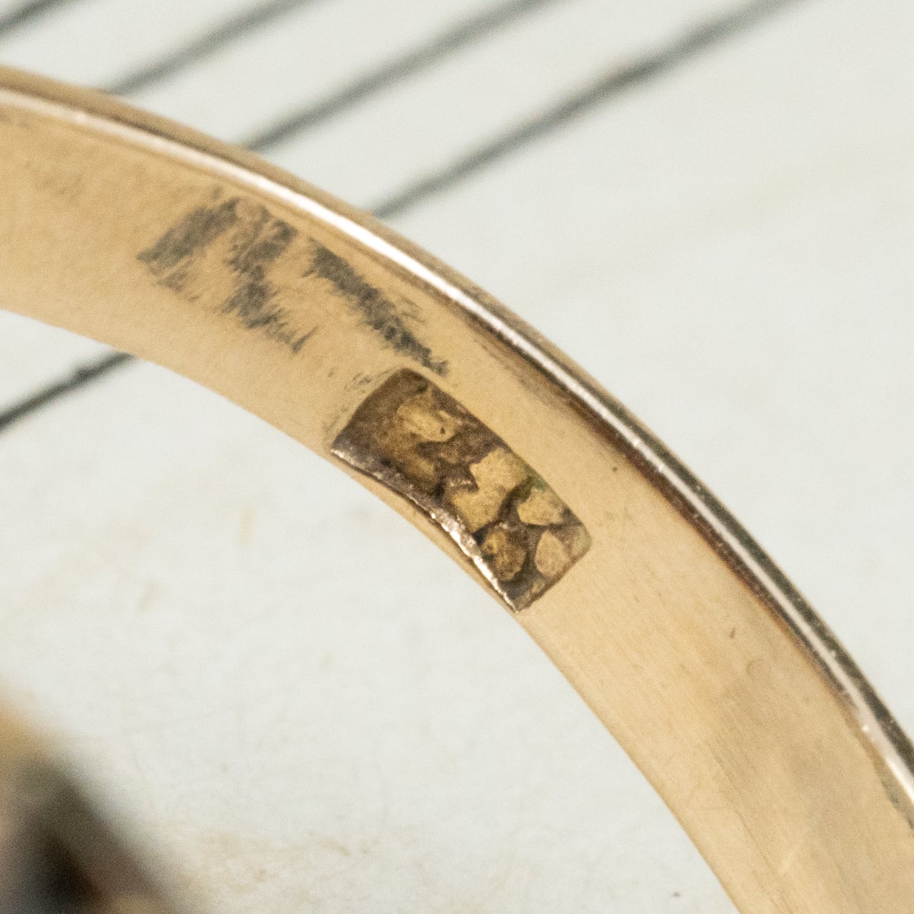 ふっくらとしたカボションを包み込む9金の枠は、ほっとするような優しいアンティークゴールド。