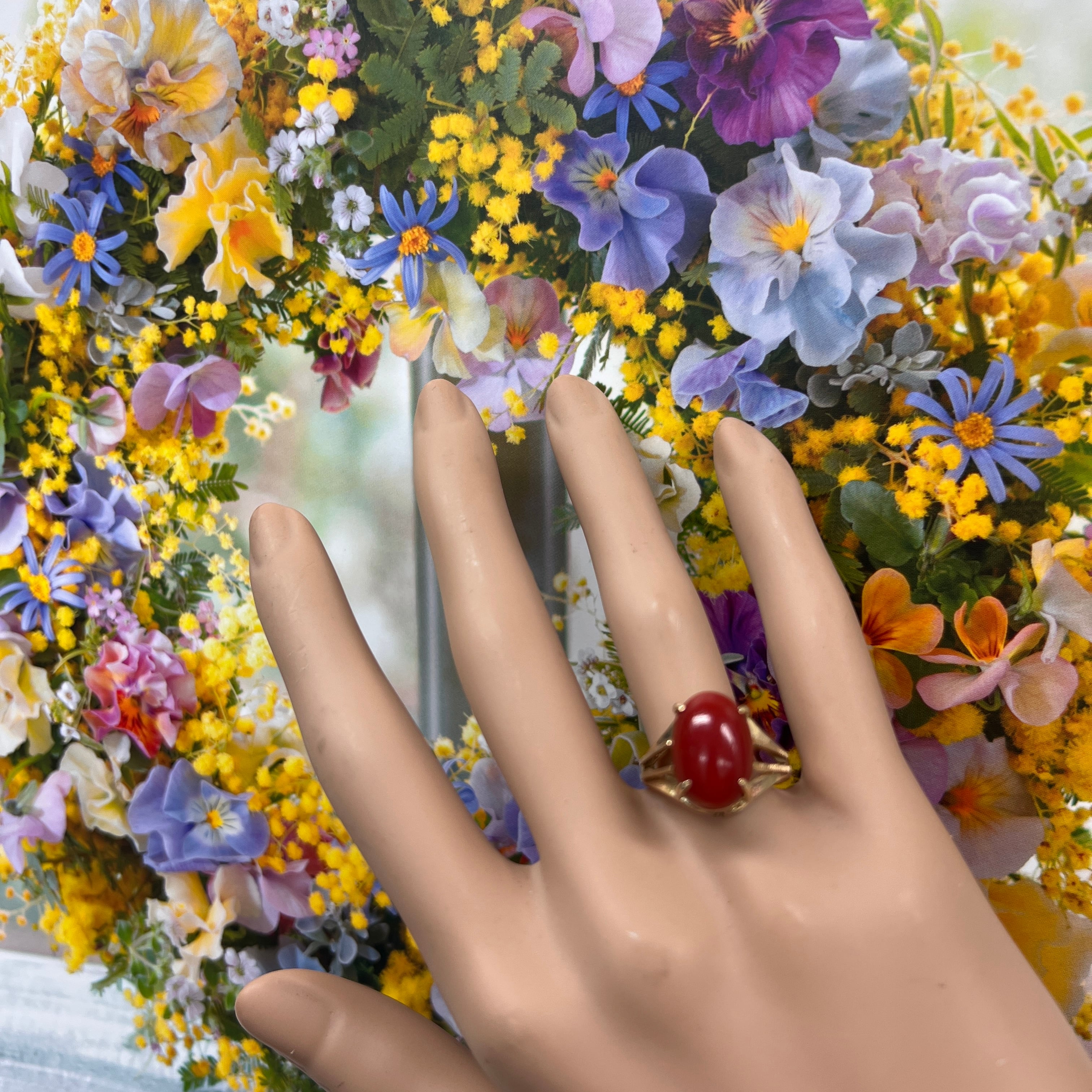こちらは血赤珊瑚のような、落ち着きと存在感ある赤珊瑚リング。