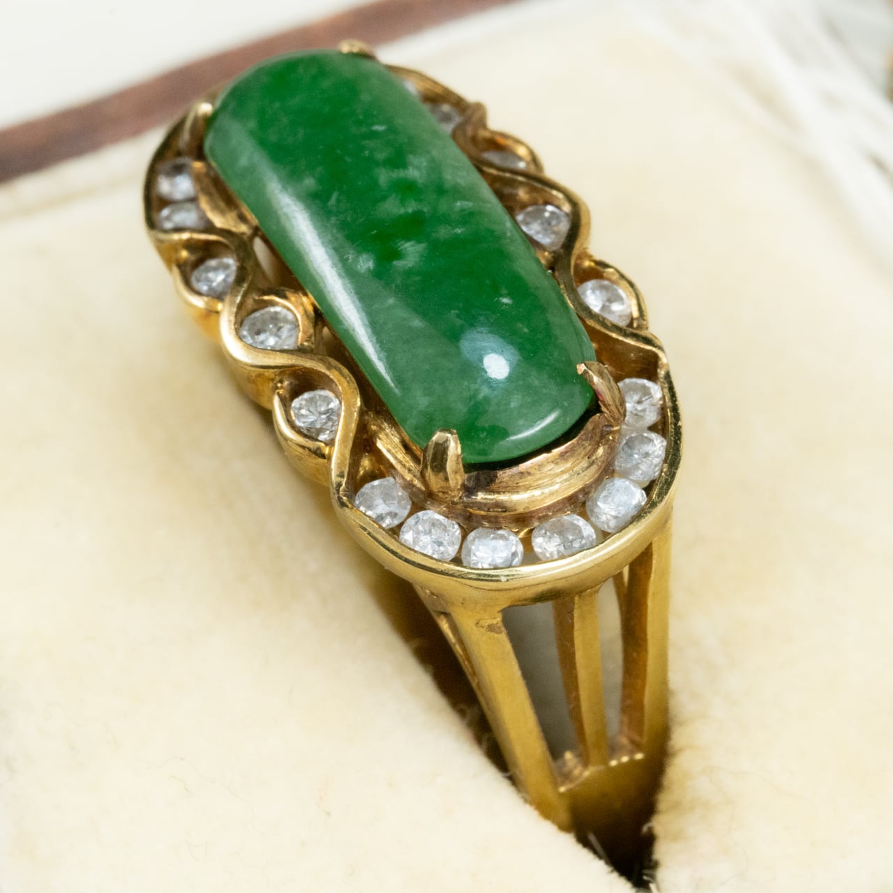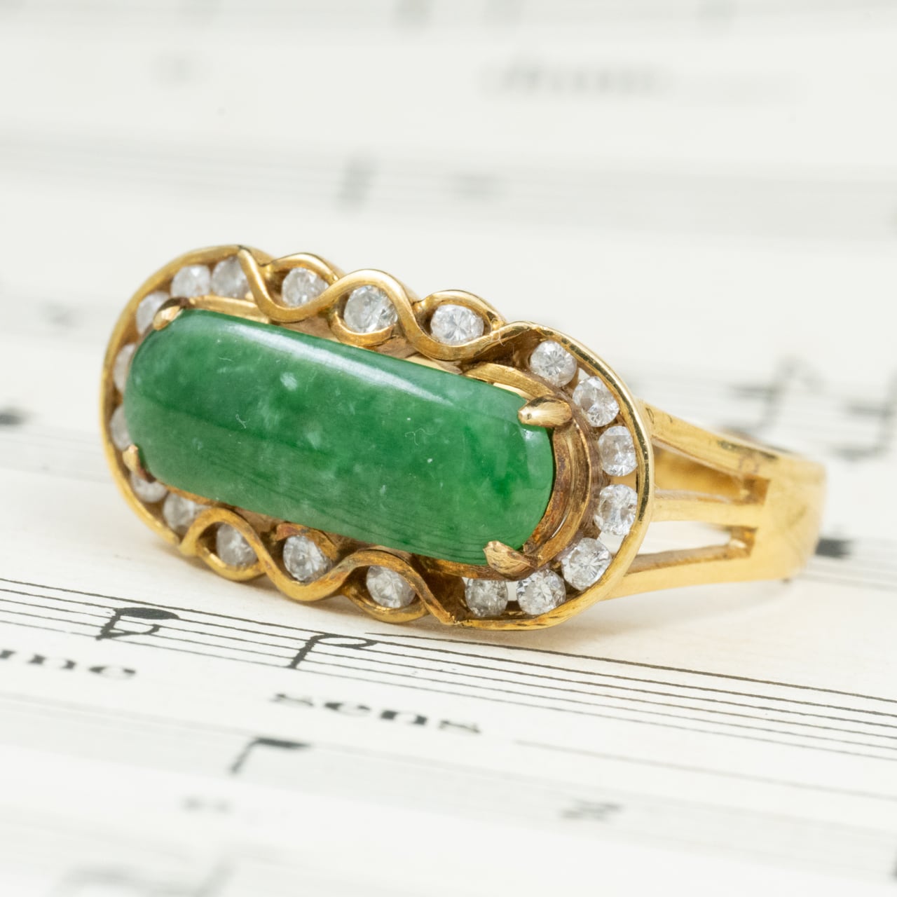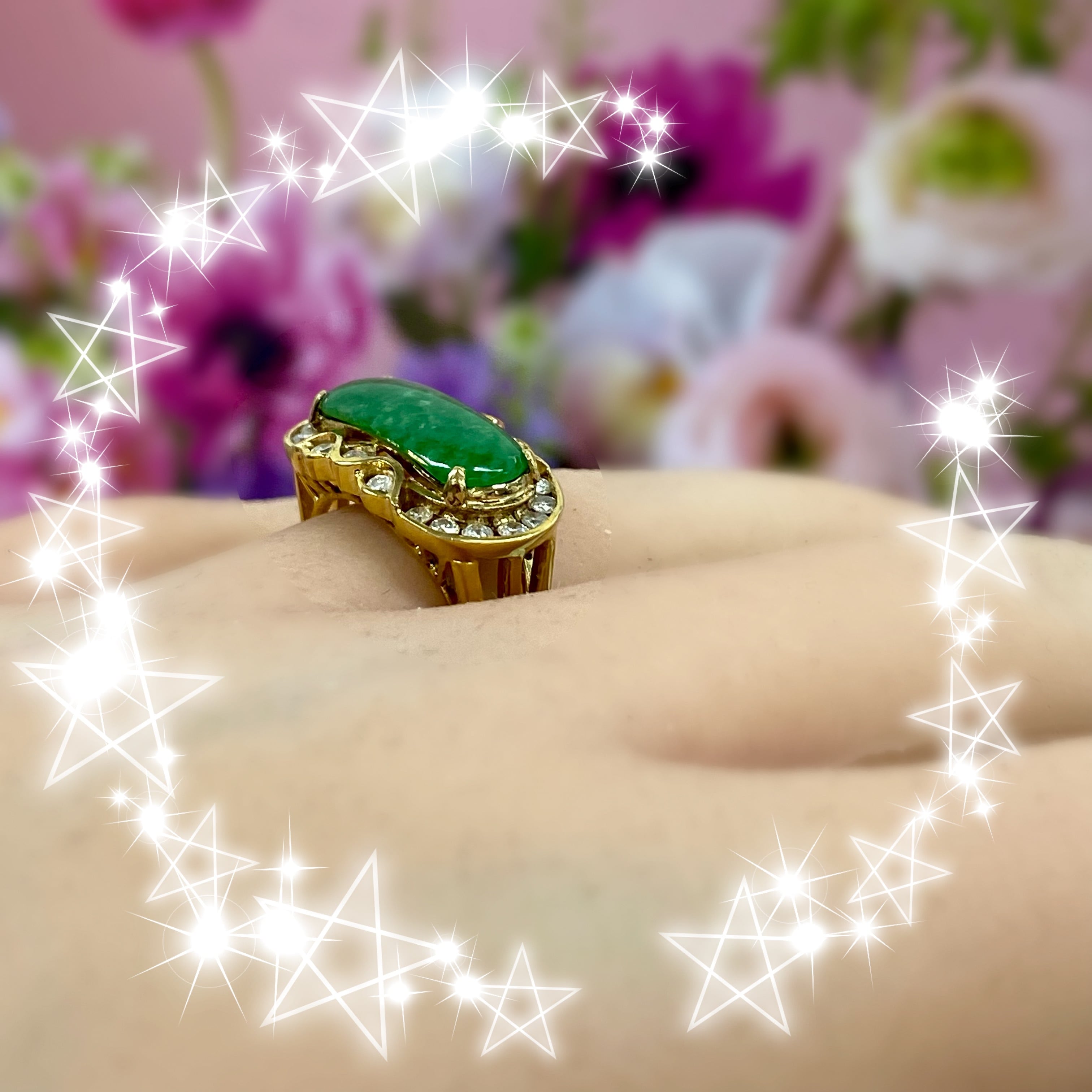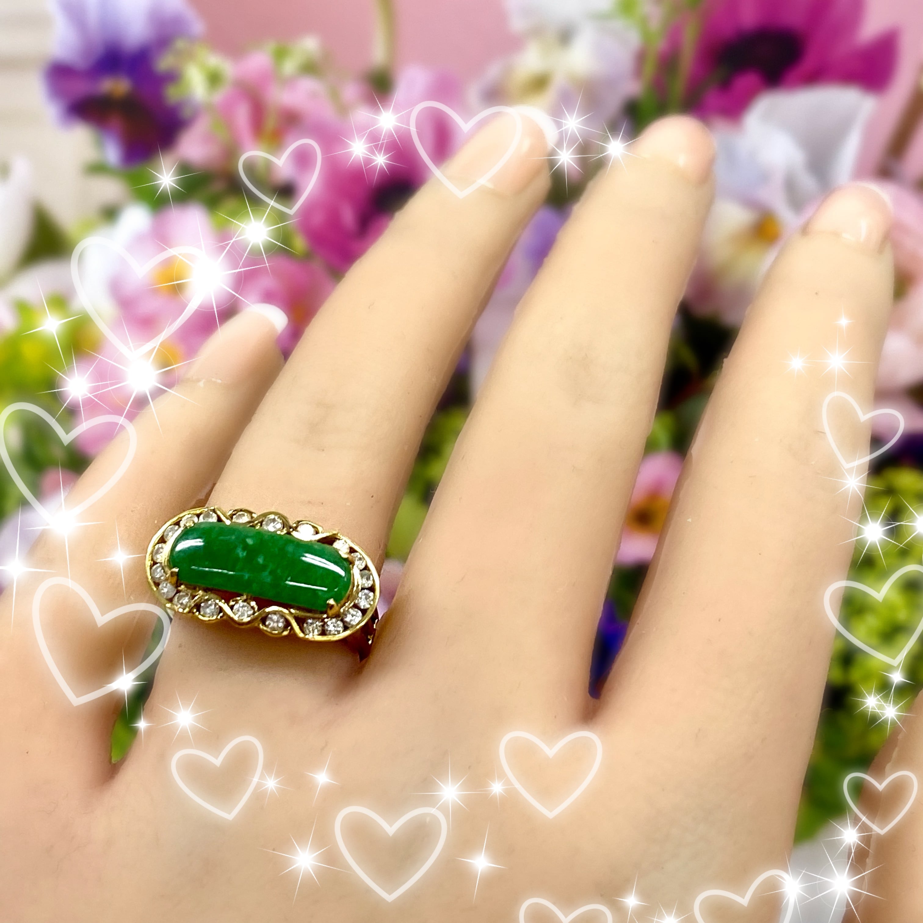【日本の作品】 K18 昭和レトロ 翡翠ジェダイド ダイヤモンドリング~しっとりとした日本の伝統美~ OKR00221