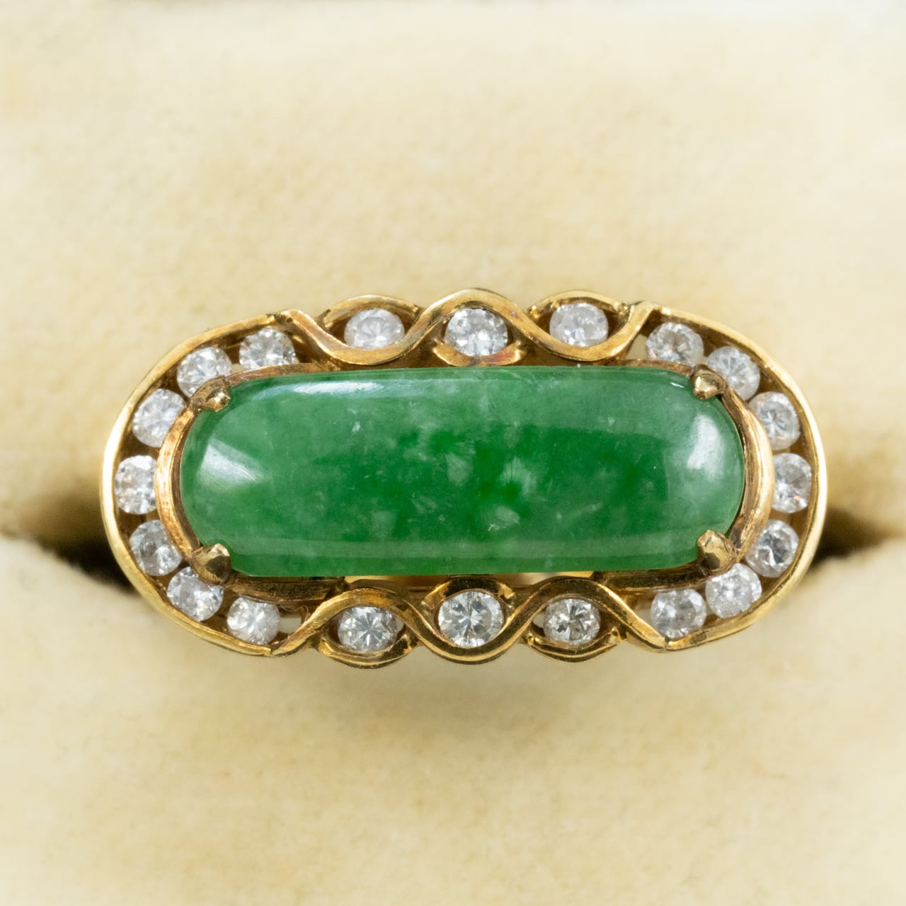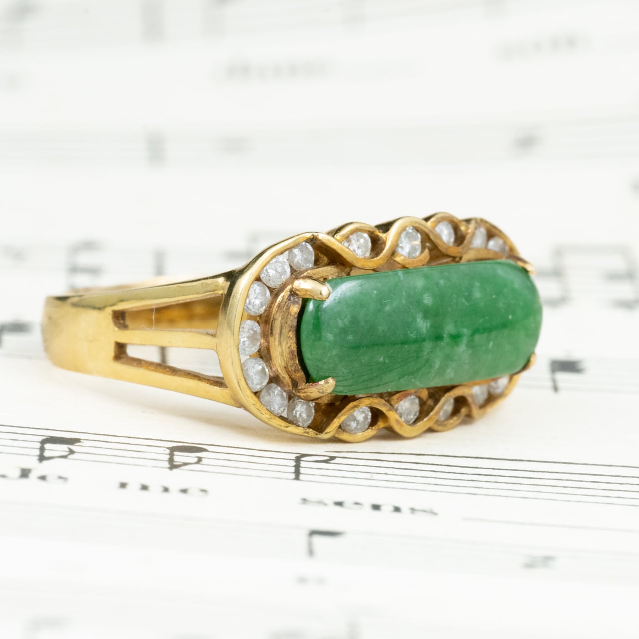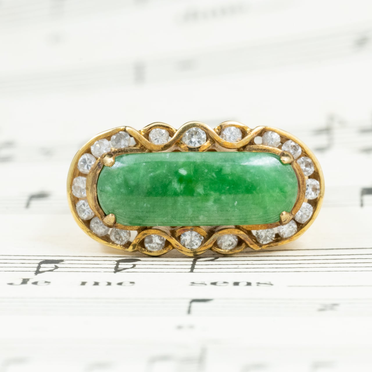 【日本の作品】 K18 昭和レトロ 翡翠ジェダイド ダイヤモンドリング~しっとりとした日本の伝統美~ OKR00221