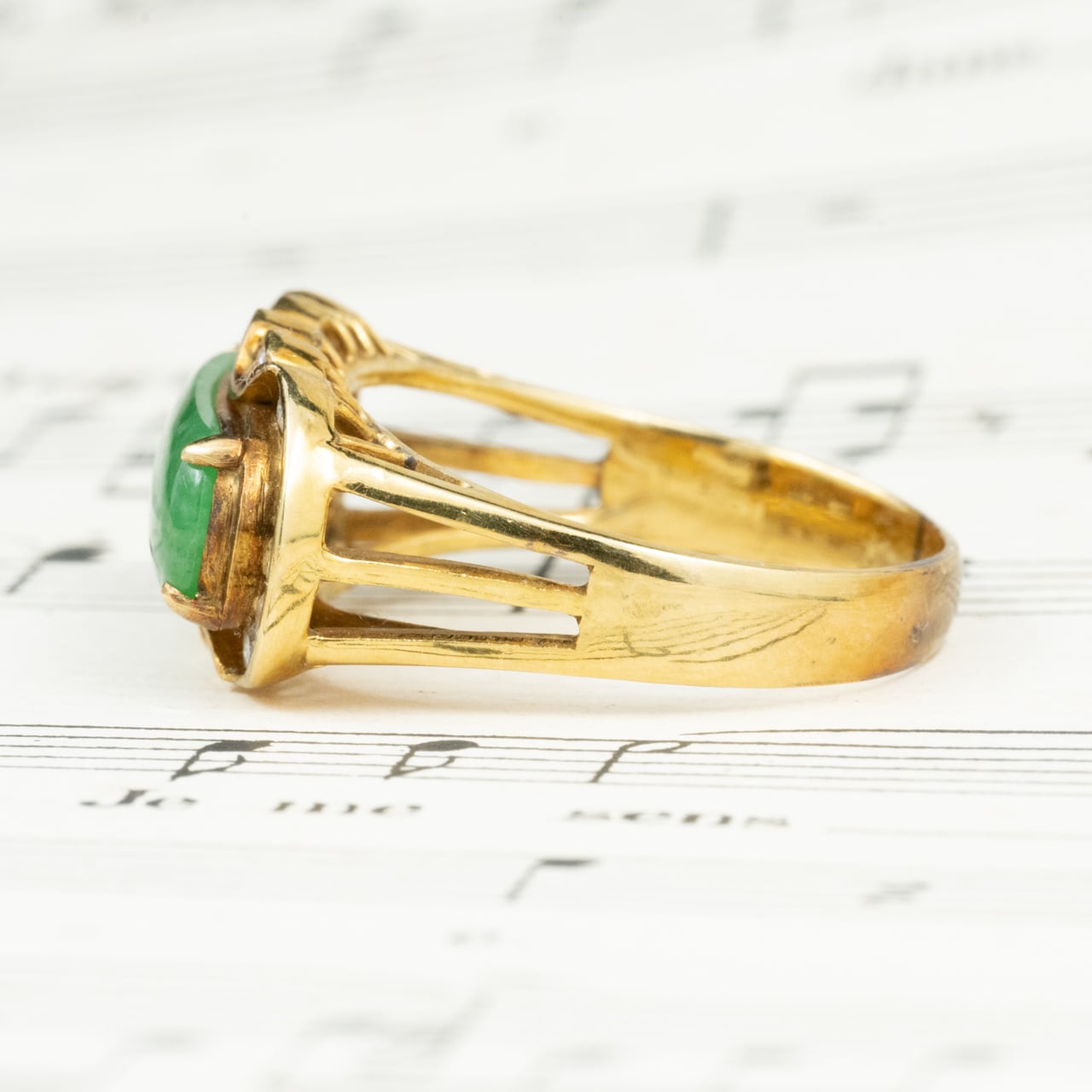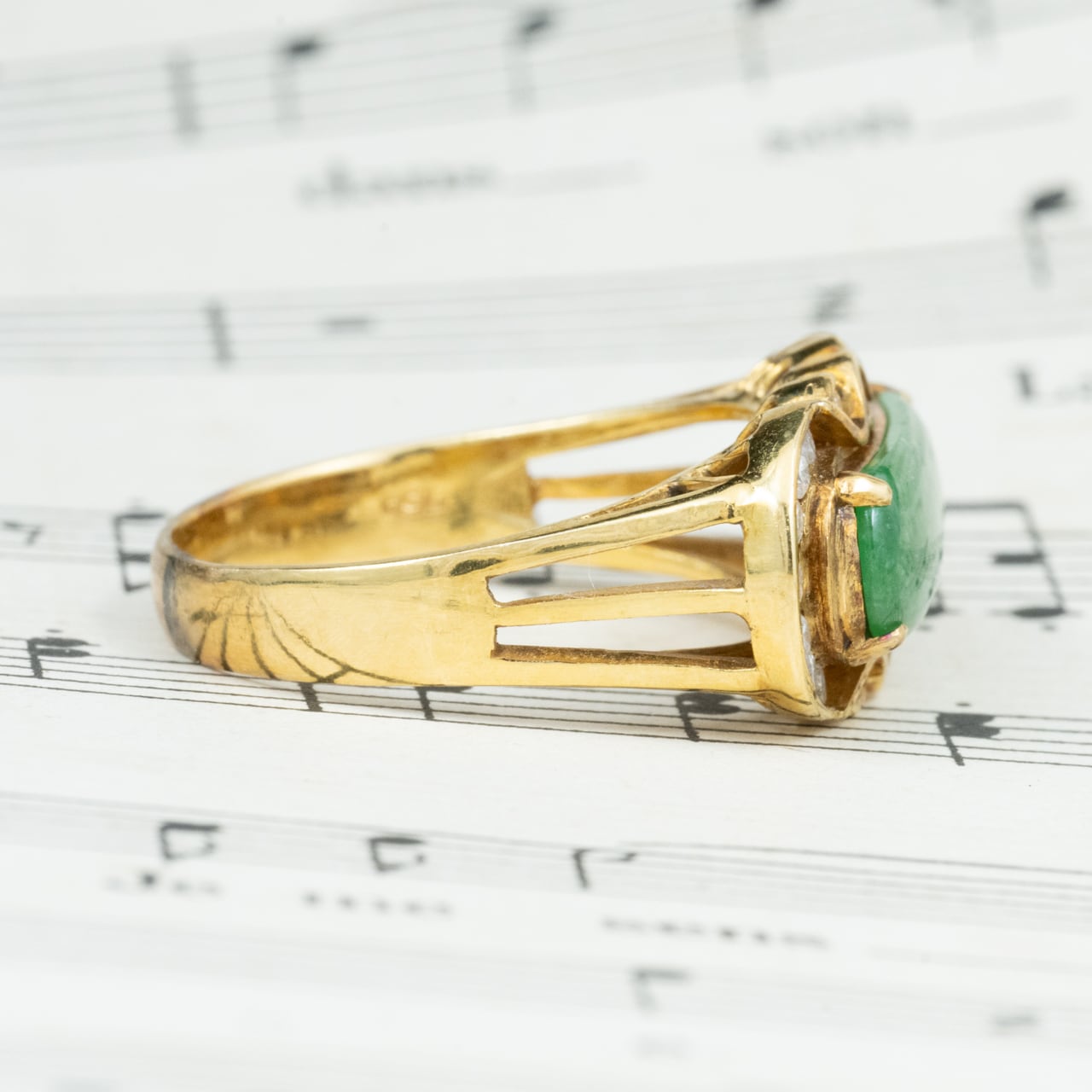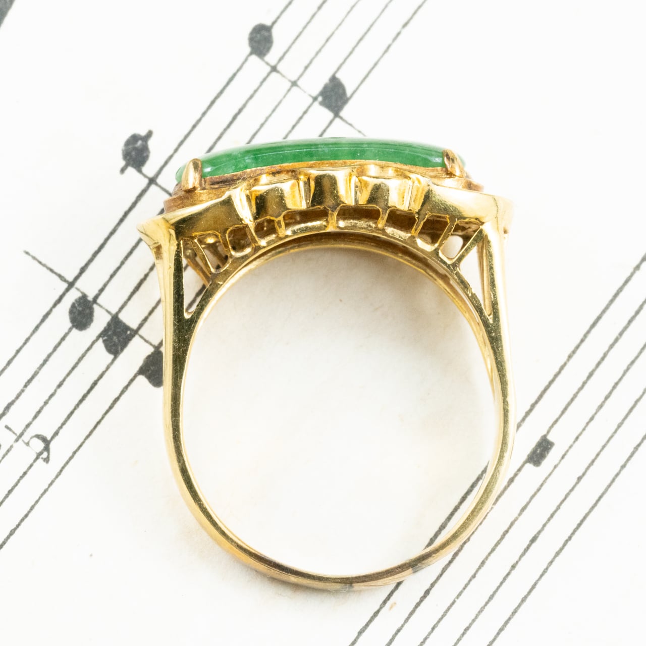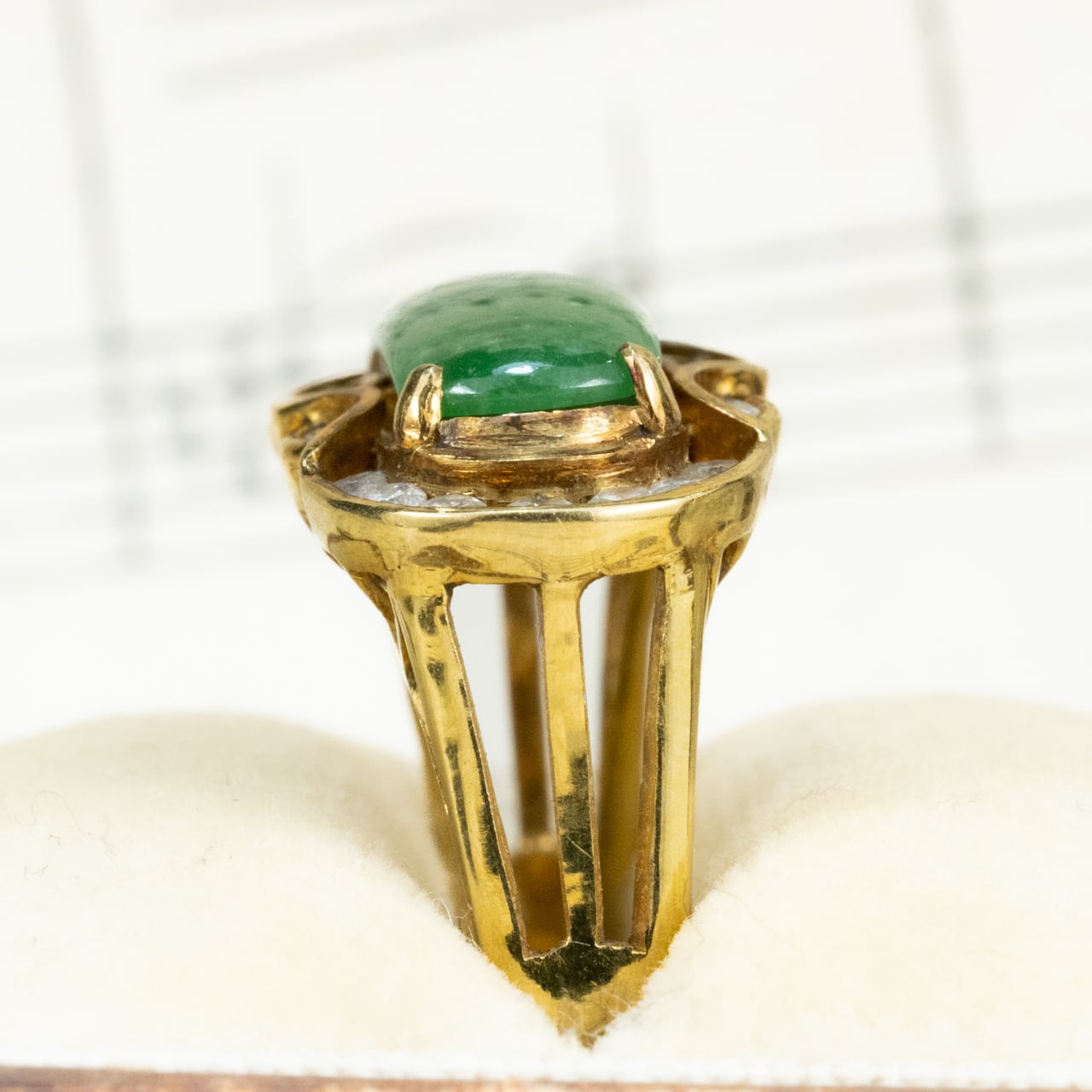 【日本の作品】 K18 昭和レトロ 翡翠ジェダイド ダイヤモンドリング~しっとりとした日本の伝統美~ OKR00221
