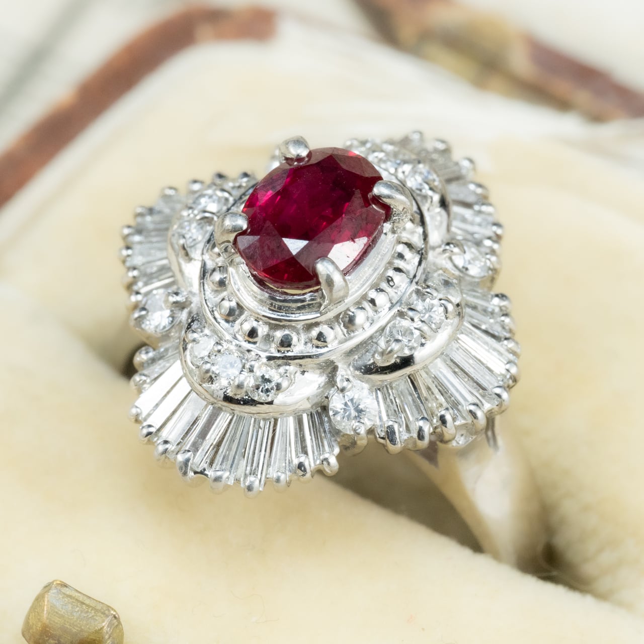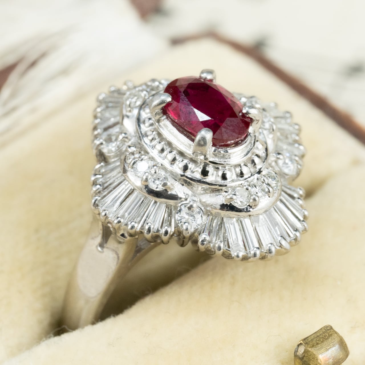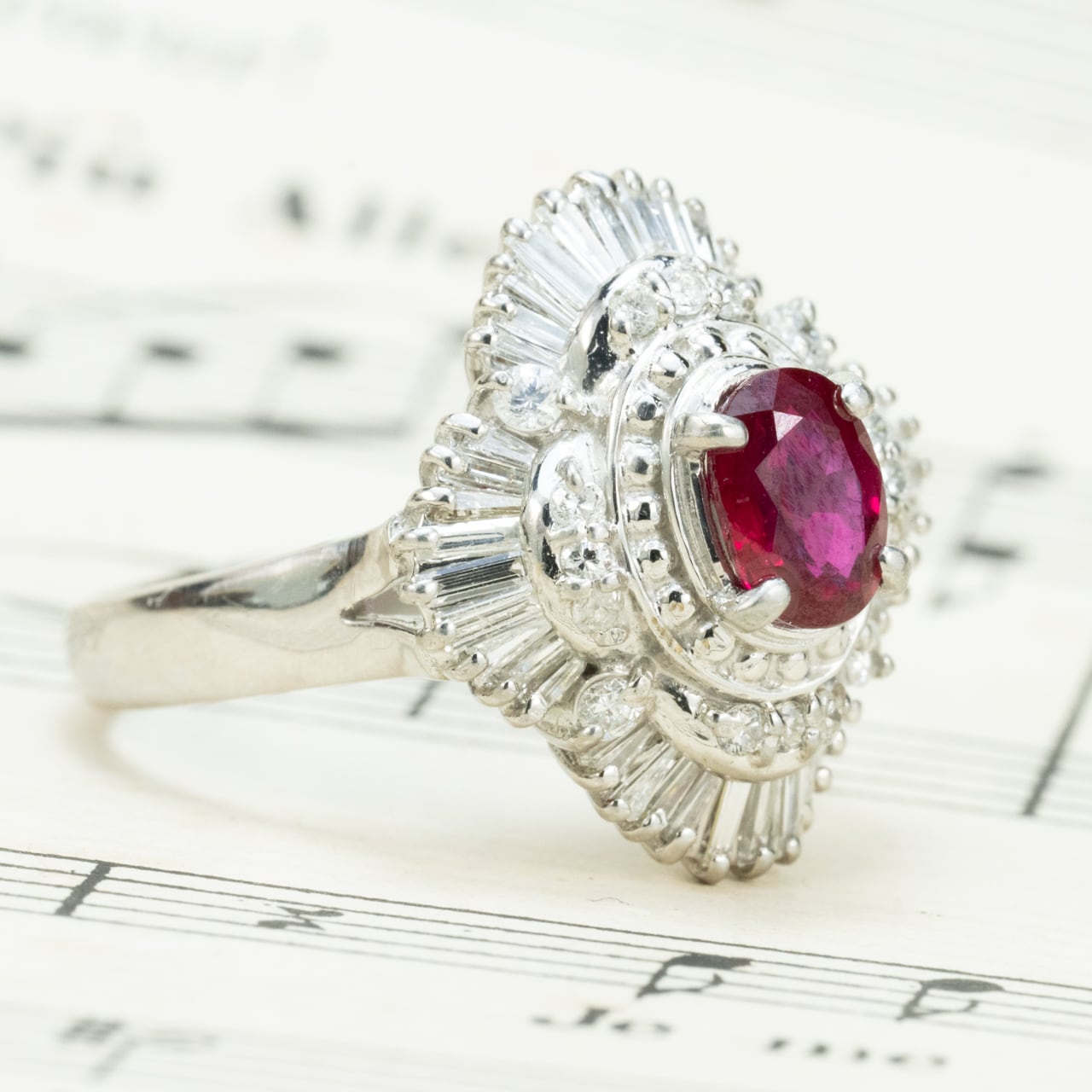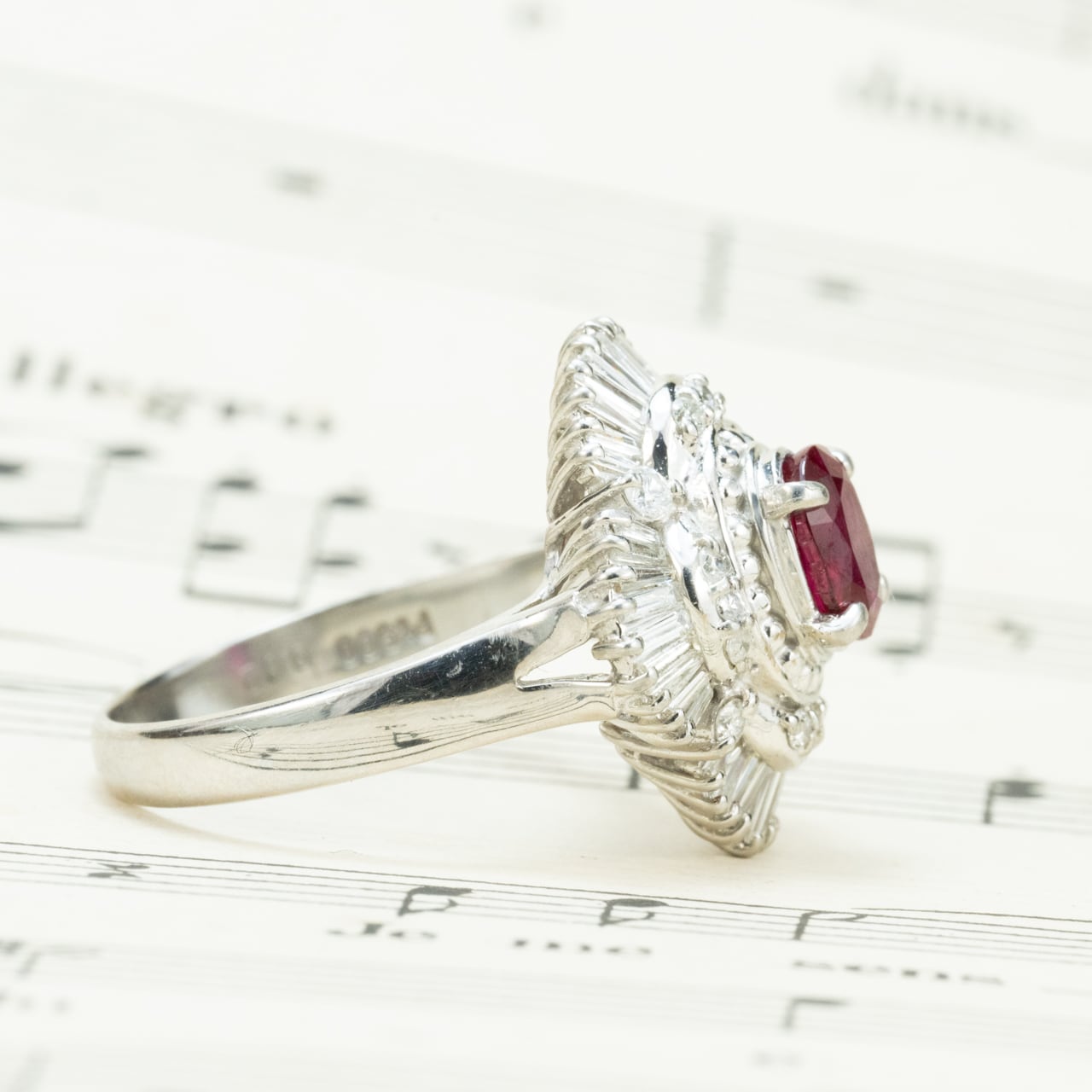 【日本のザマスリング】昭和レトロでデラックスな指輪☆彡 Pt900 ルビー0.92 D0.76 NOR00697