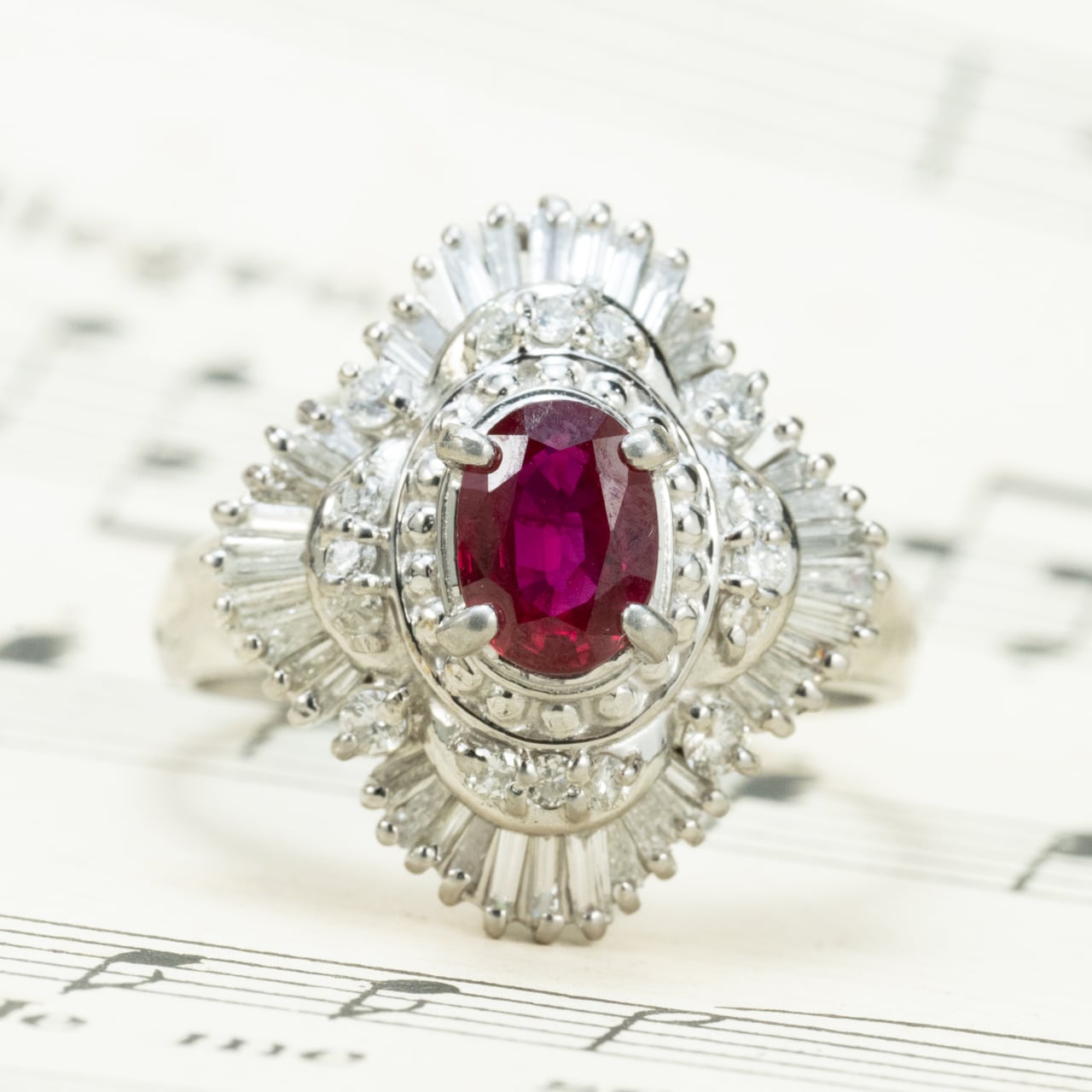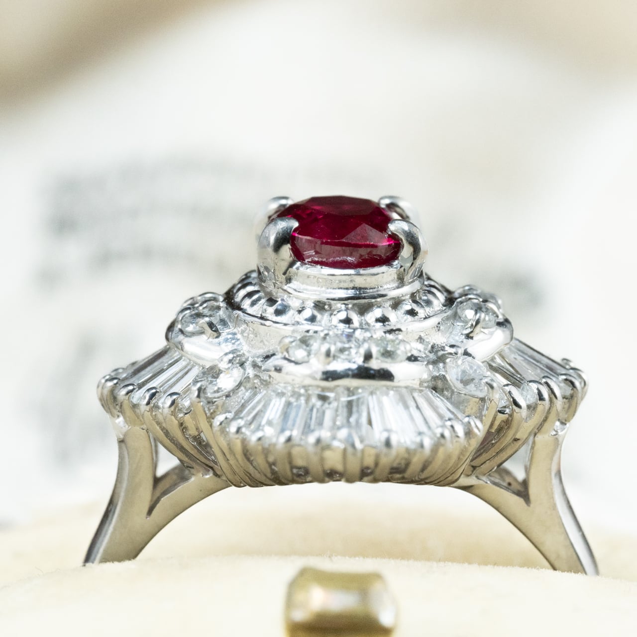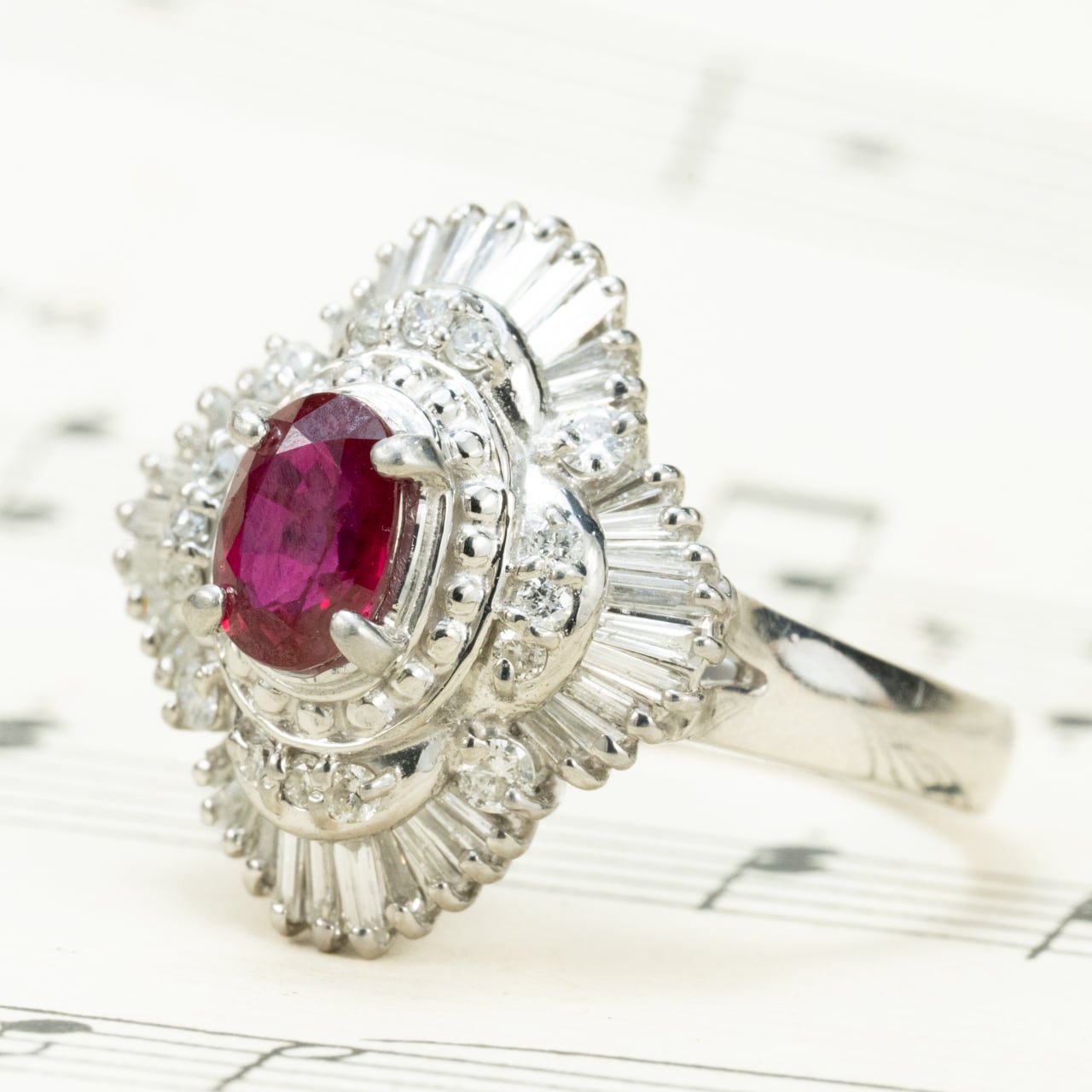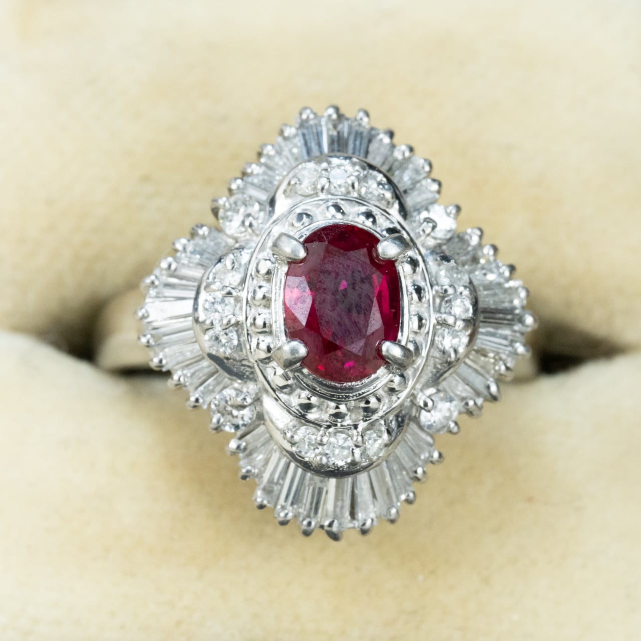 【日本のザマスリング】昭和レトロでデラックスな指輪☆彡 Pt900 ルビー0.92 D0.76 NOR00697