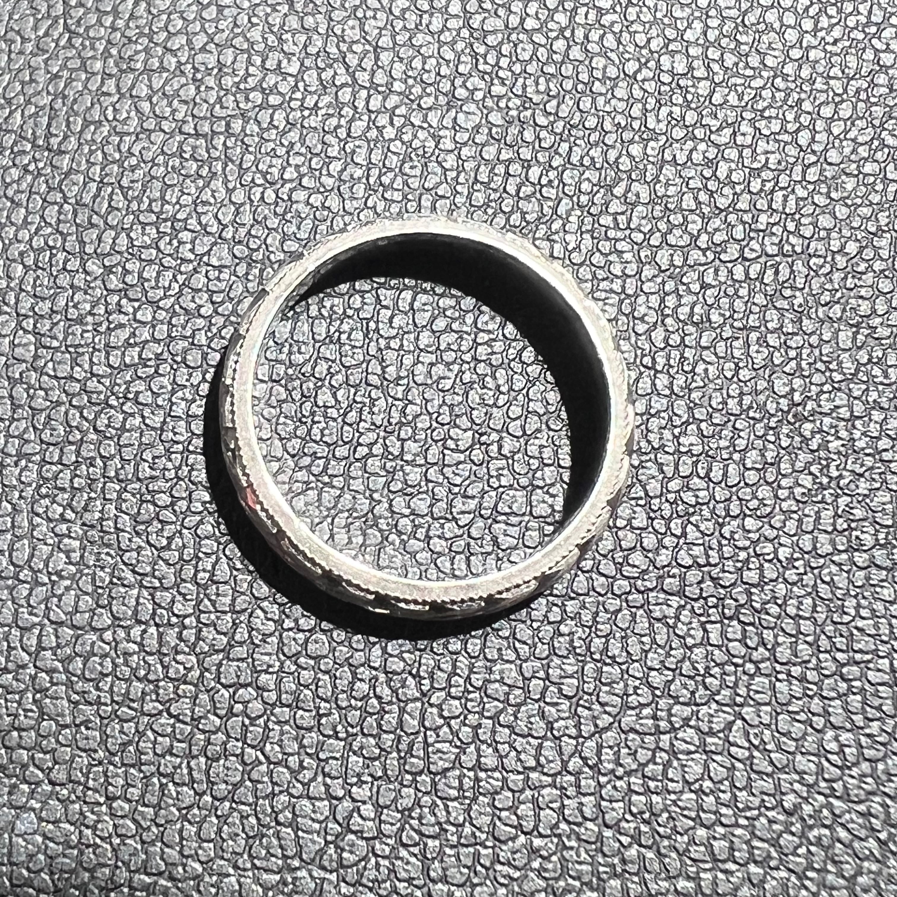 昭和レトロヴィンテージの香り漂う、和彫りならではの深みと味わい。少しだけ丸みを帯びた枠のシルエットが指先にしっとりと馴染む、人生に寄り添うパートナーのようなリングです。(個人の感想です(^^♪))