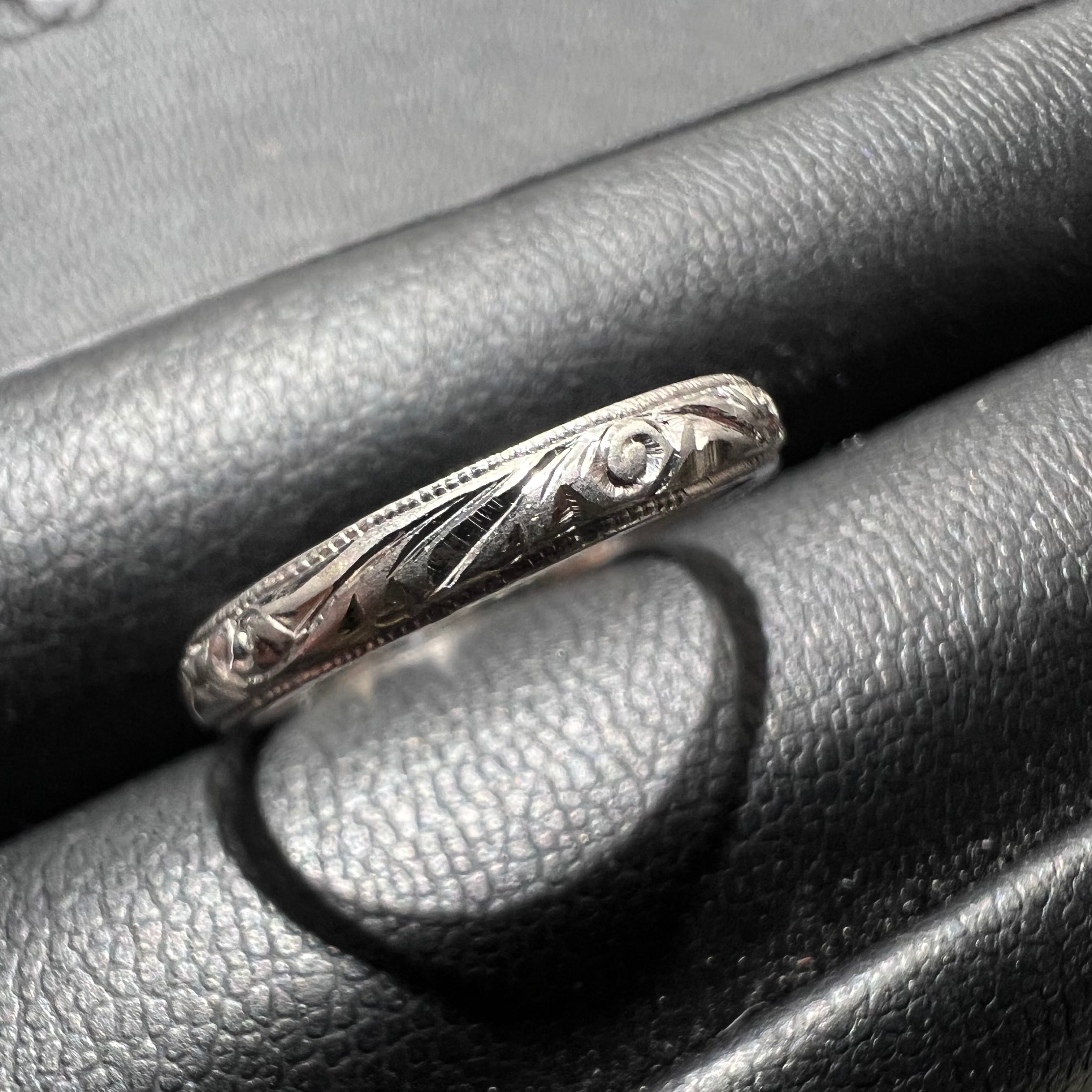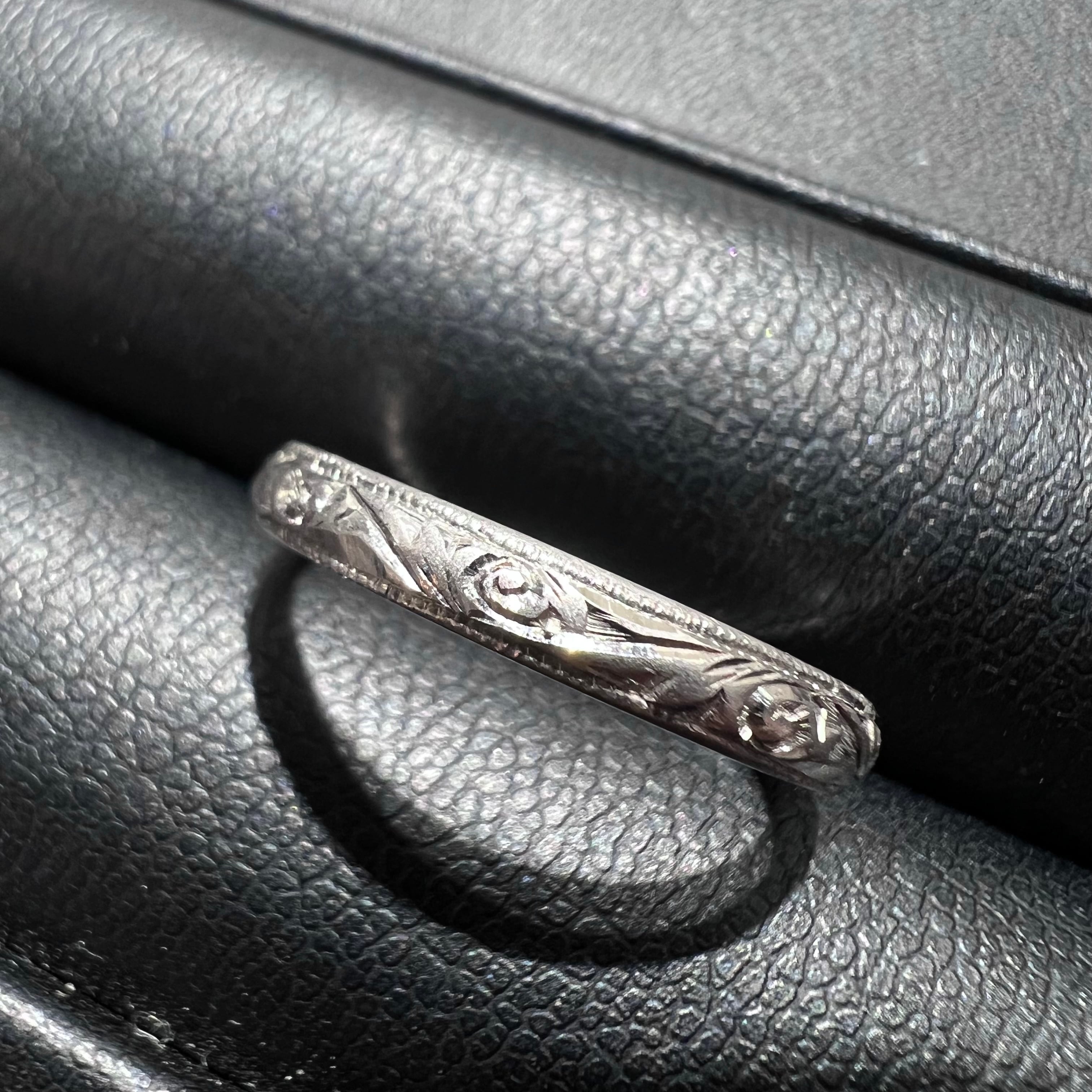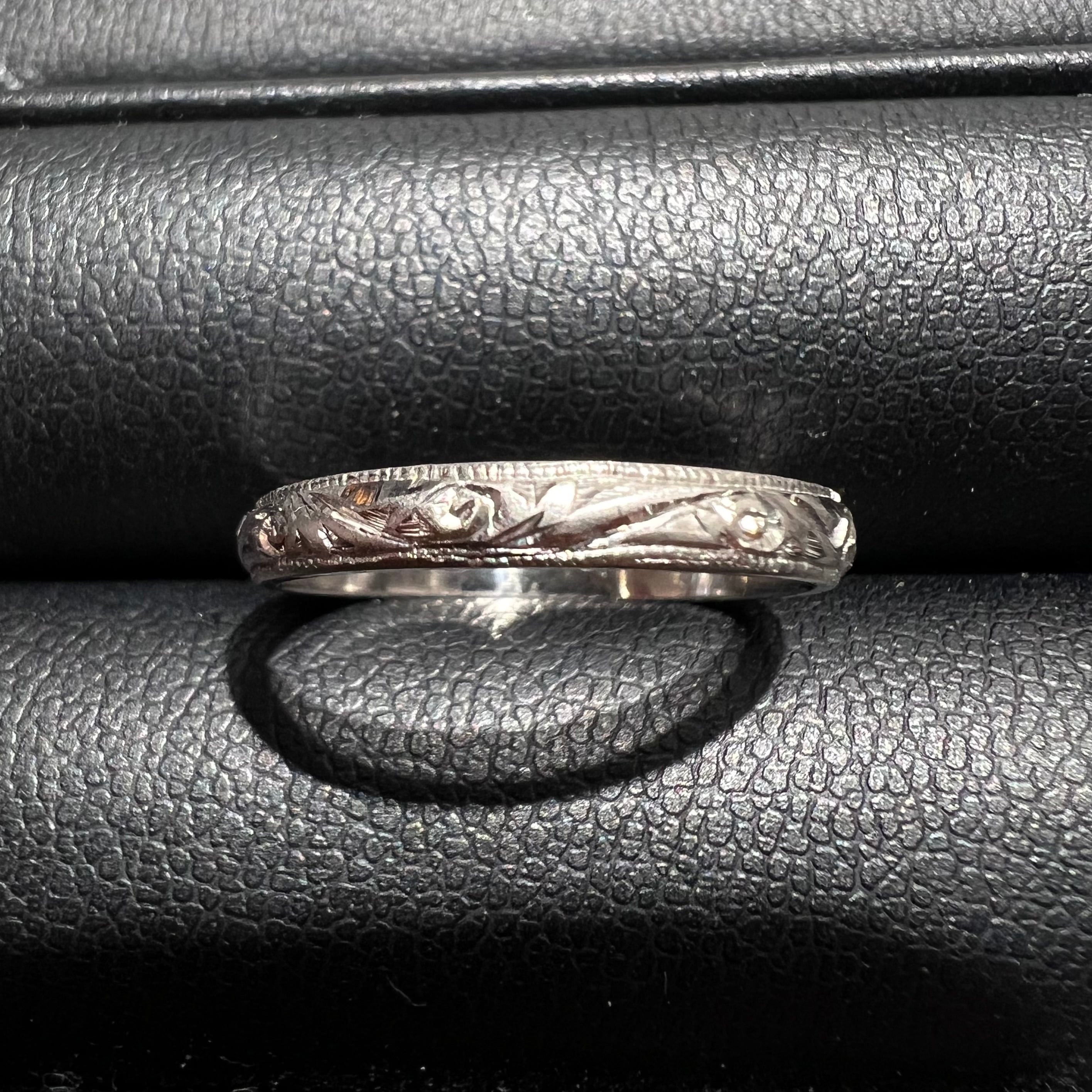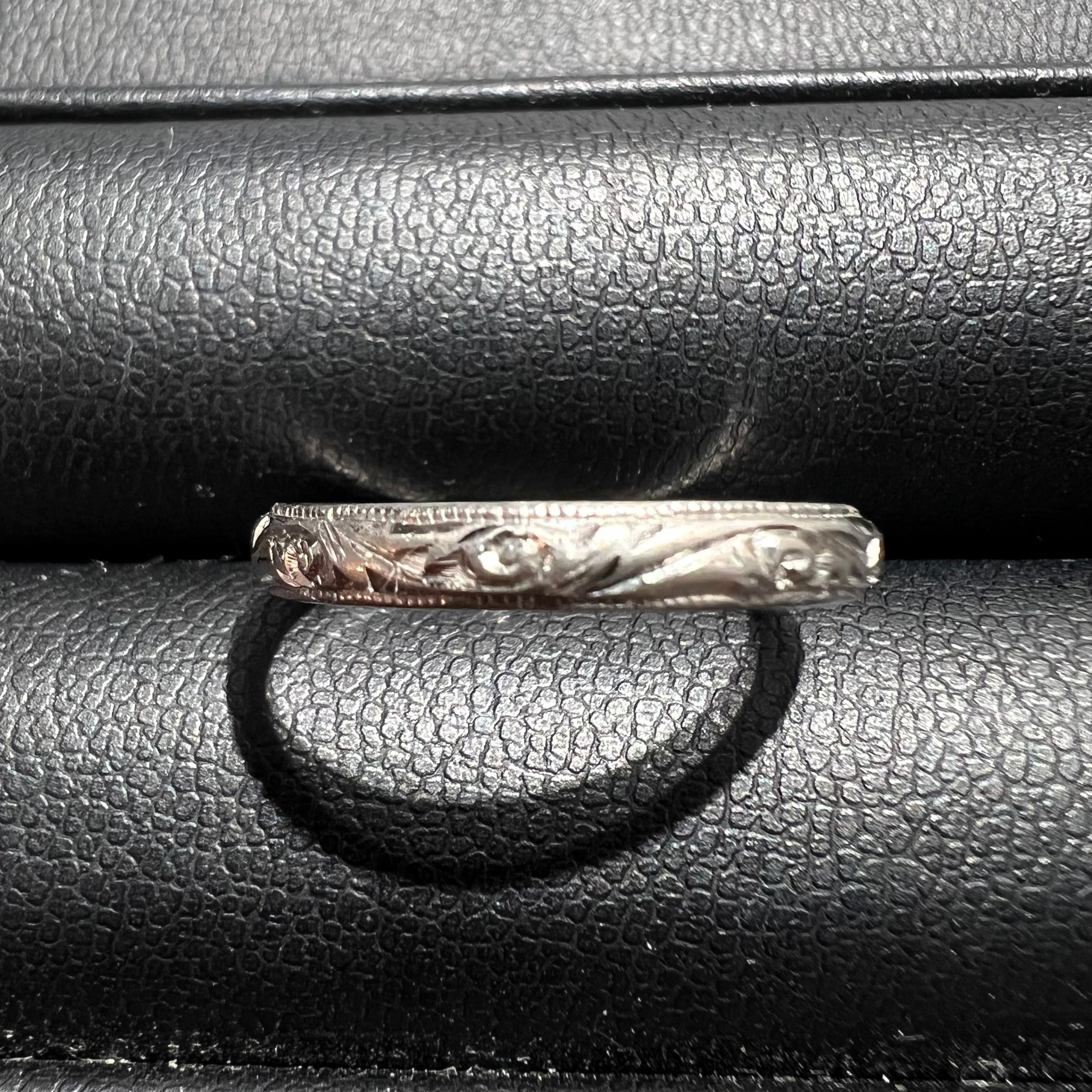【日本の作品】昭和レトロ 和柄 花 フラワー 和紋様 彫刻 手彫り 和彫り デザイン ヴィンテージ リング Pm900 OKR00237